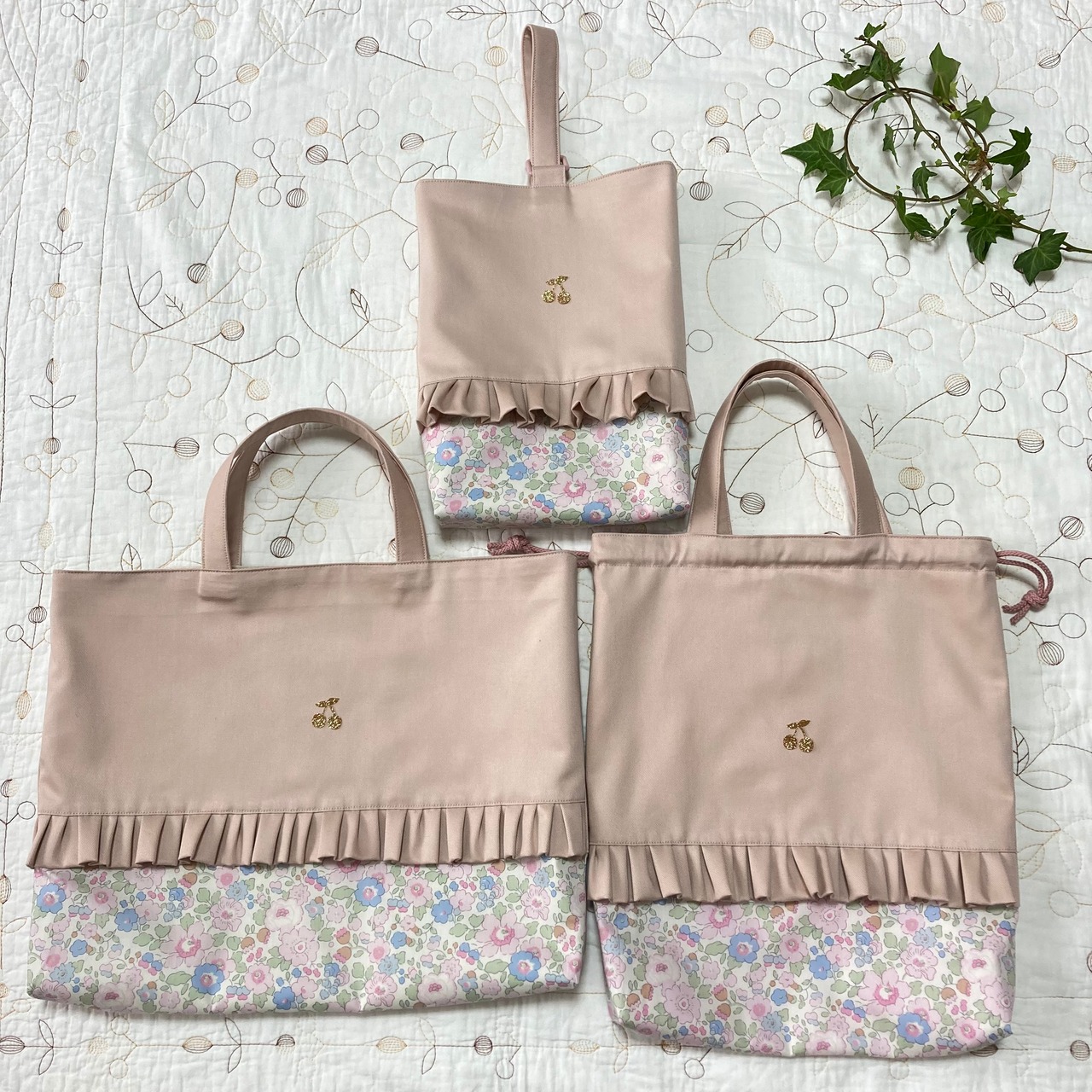 リバティ レッスンバッグ 上履き袋 お着替え袋 3点セット ハンドメイド ベッツィ ライトピンク 入園