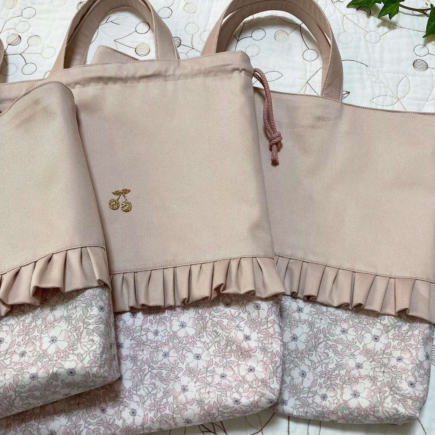 リバティ レッスンバッグ お着替え袋 上靴袋 3点セット メイモリス ピンク ハンドメイド 入園入学グッズ