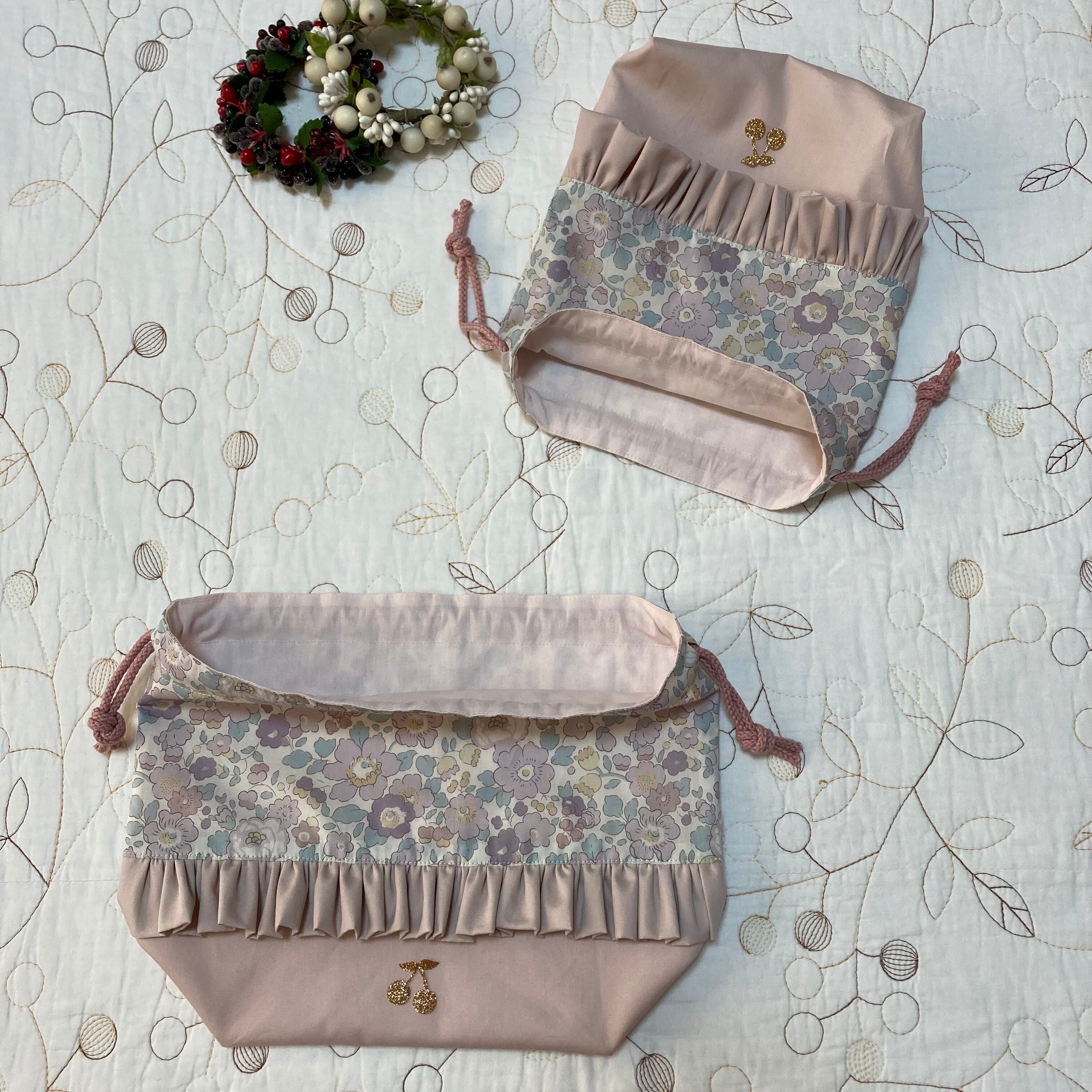 リバティ お弁当袋 コップ袋 2点セット ハンドメイド ベッツィ オールドラベンダー 入園入学グッズ