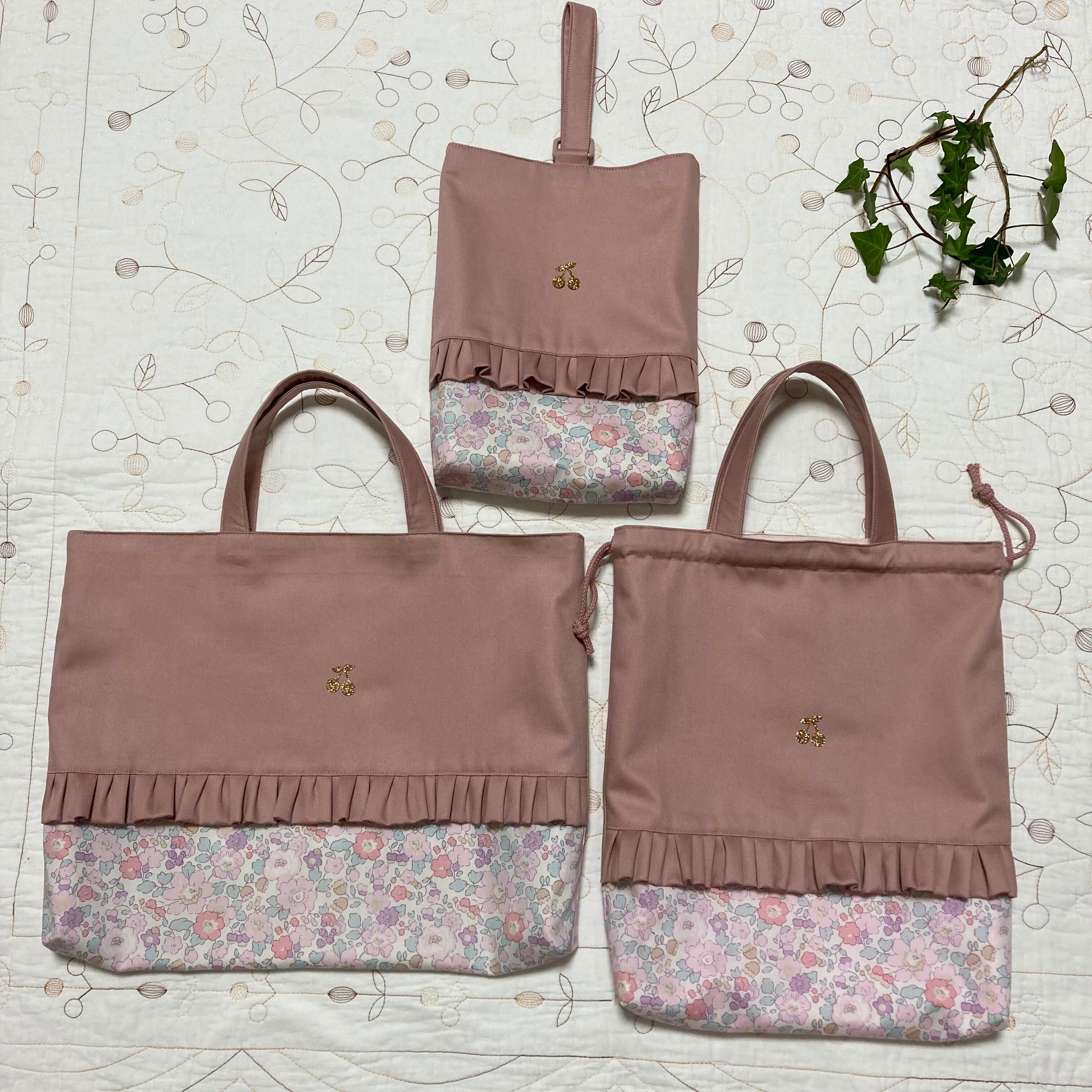 絵本袋 上靴袋 体操着袋 3点セット ハンドメイド ベッツィ ピンクモーヴ 入園入学グッズ