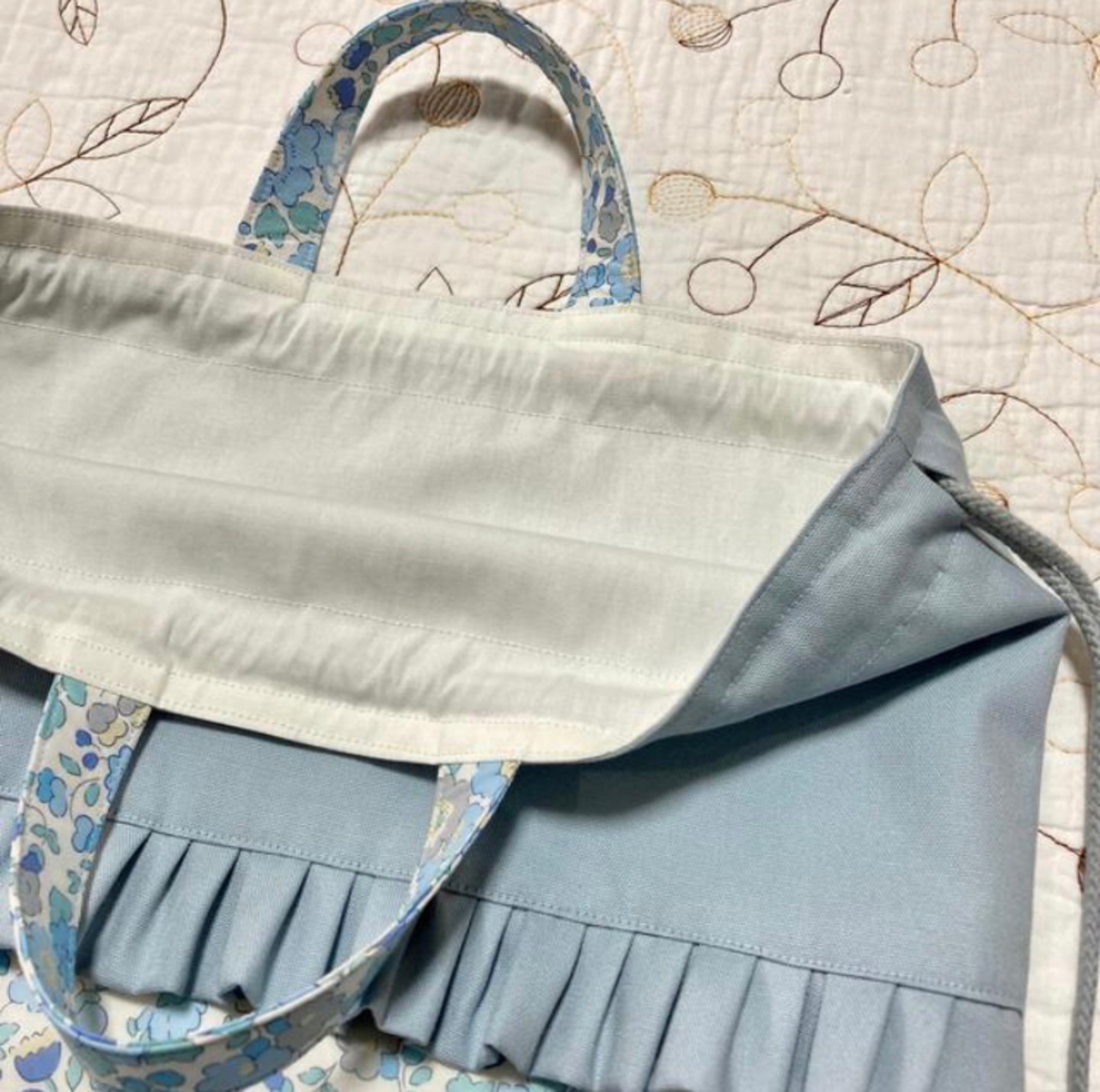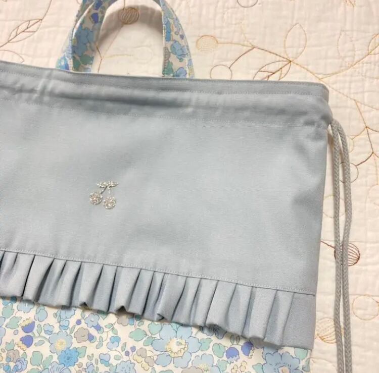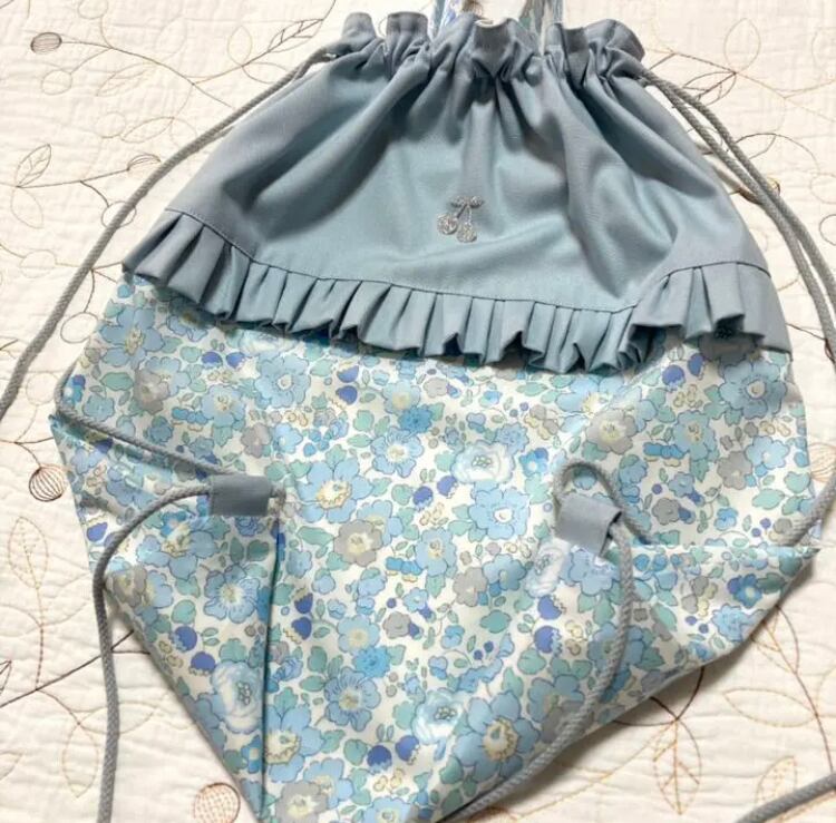 ハンドメイド 大きめ ナップサック お着替え袋 リバティ ベッツィ サックス 入園入学グッズ