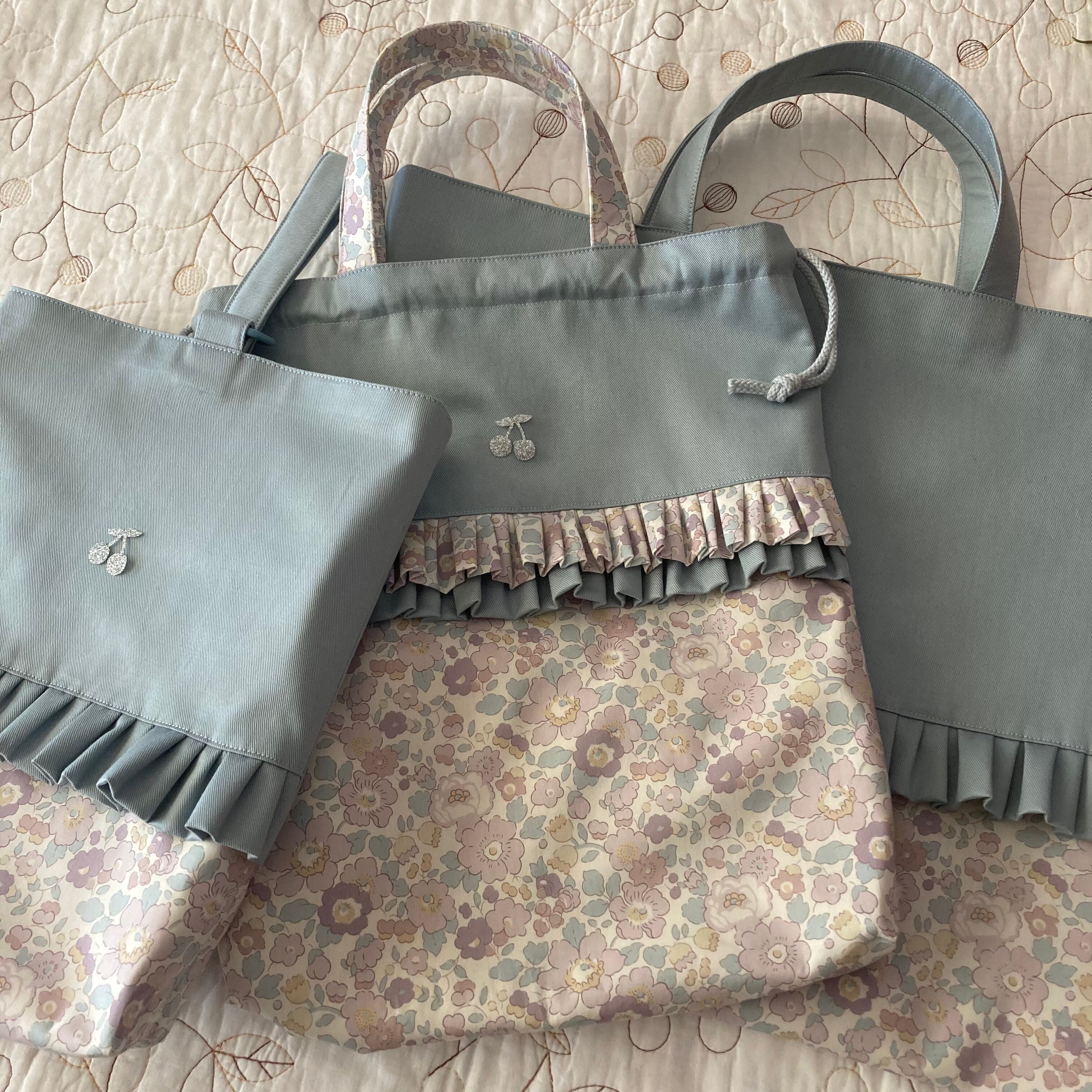 大きめ レッスンバッグ 大きめ上靴袋、お着替え袋 3点セット ベッツィ オールドラベンダー 入園入学グッズ