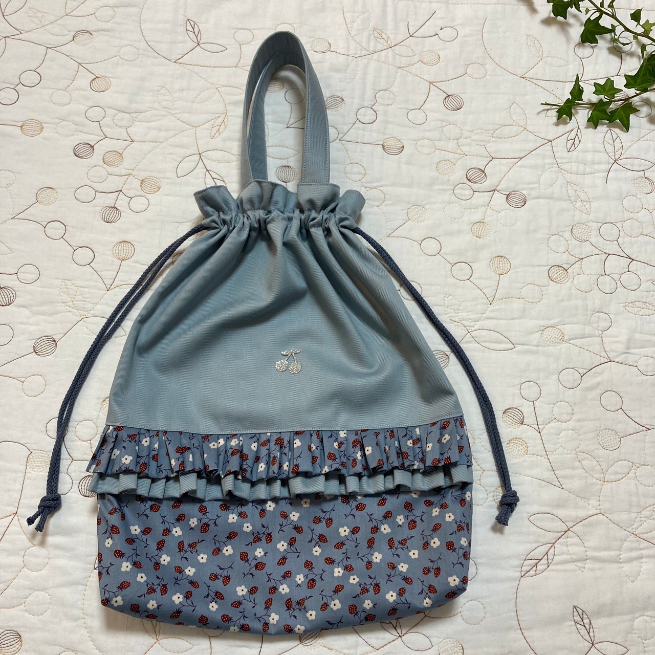 お着替え袋 縦 35cm 片面フリル付き