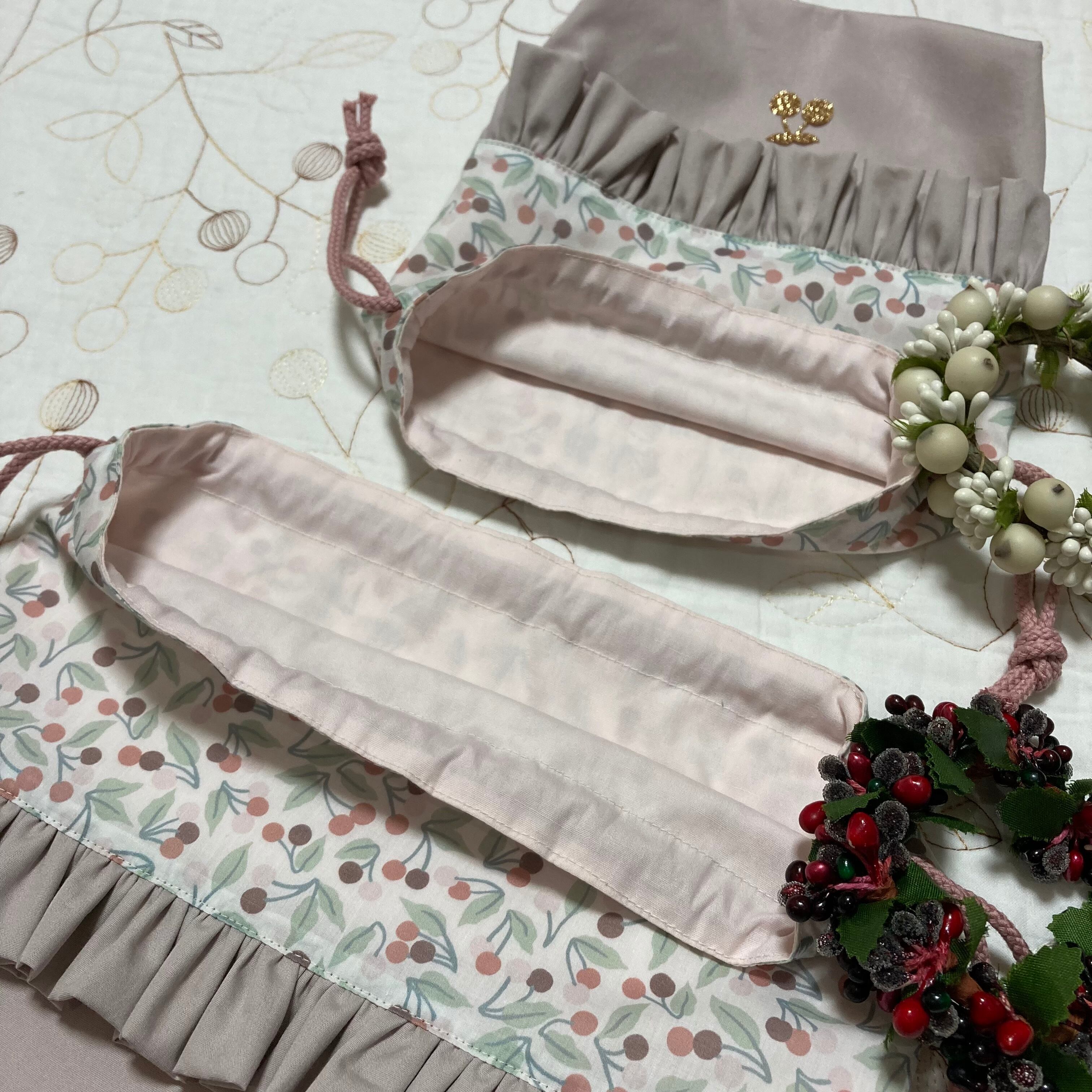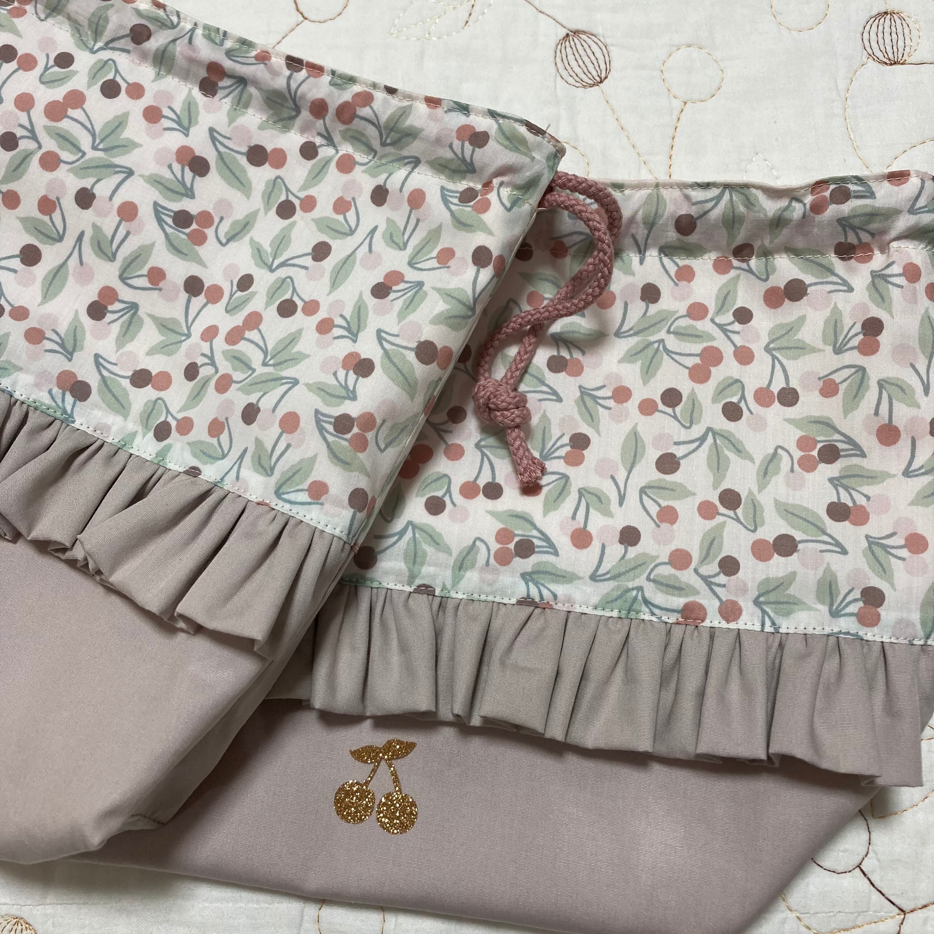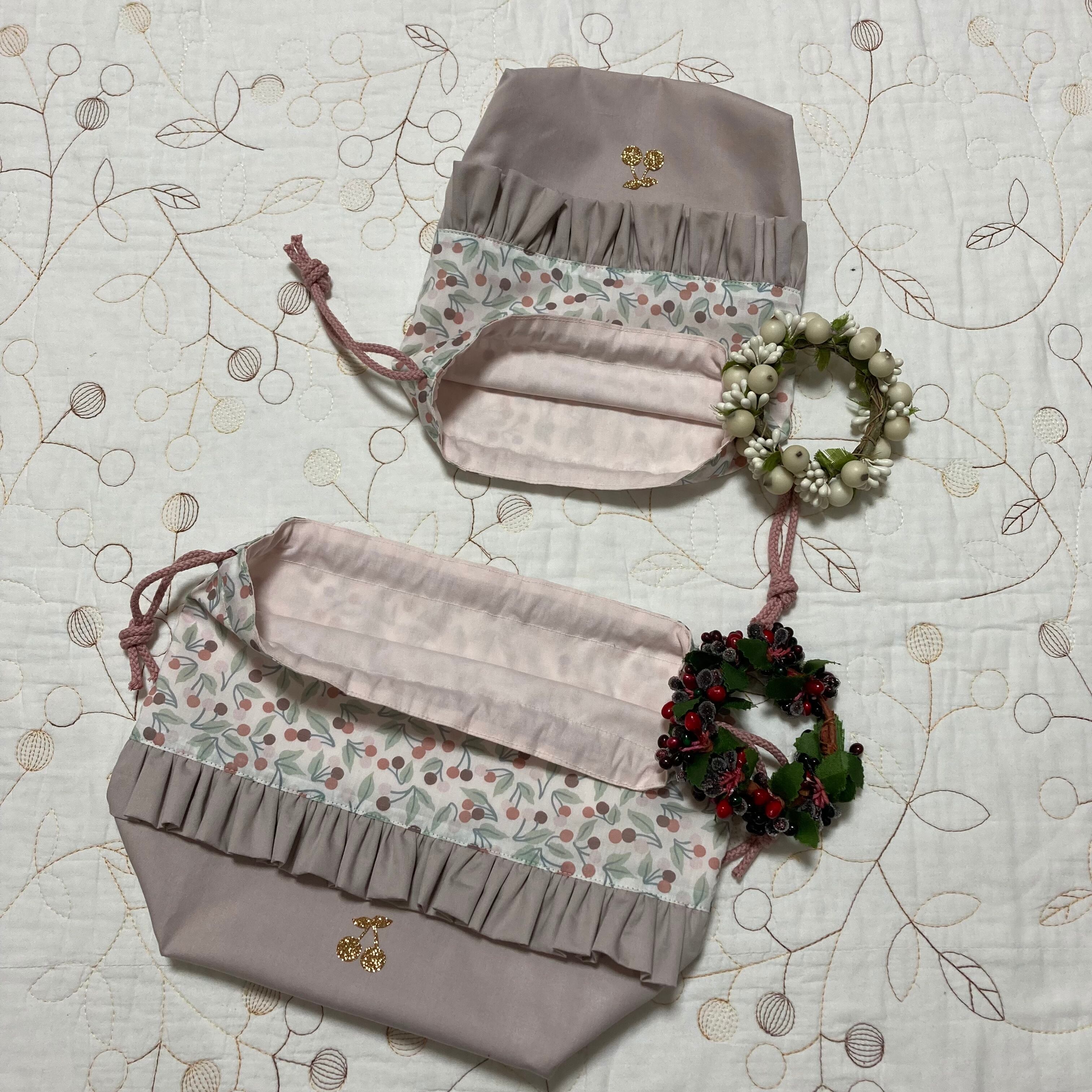 リバティ お弁当袋 コップ袋 2点 チェリードロップ ハンドメイド 入学入学準備グッズ