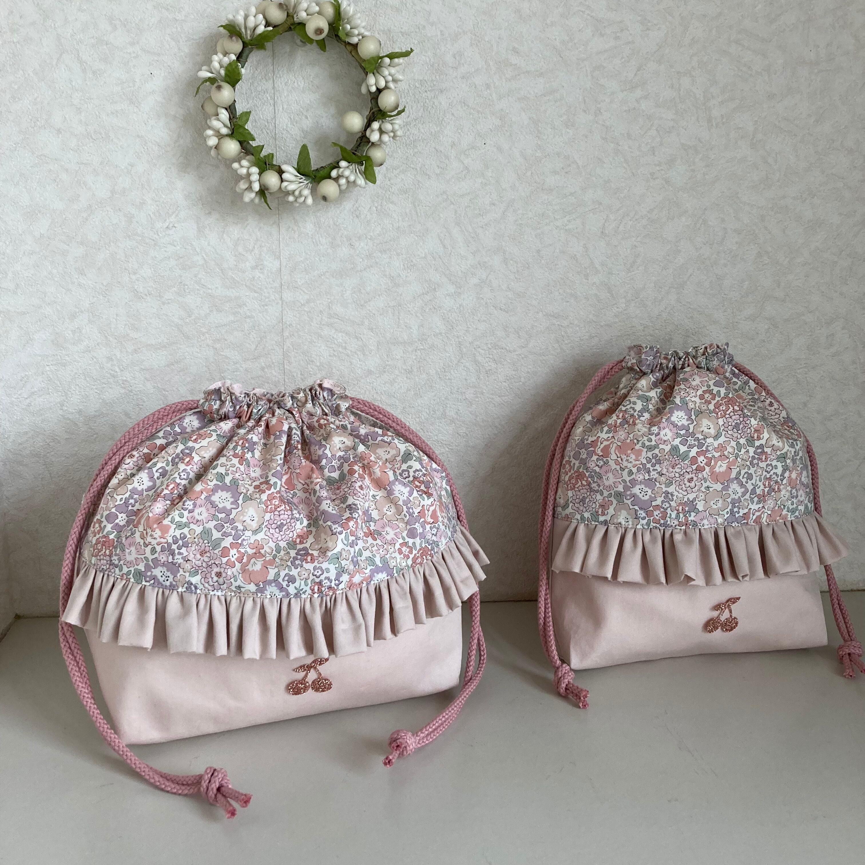リバティ お弁当袋 コップ袋 2点 ハンドメイド ミシェル ペールピンク ちびちびきっちん 入園