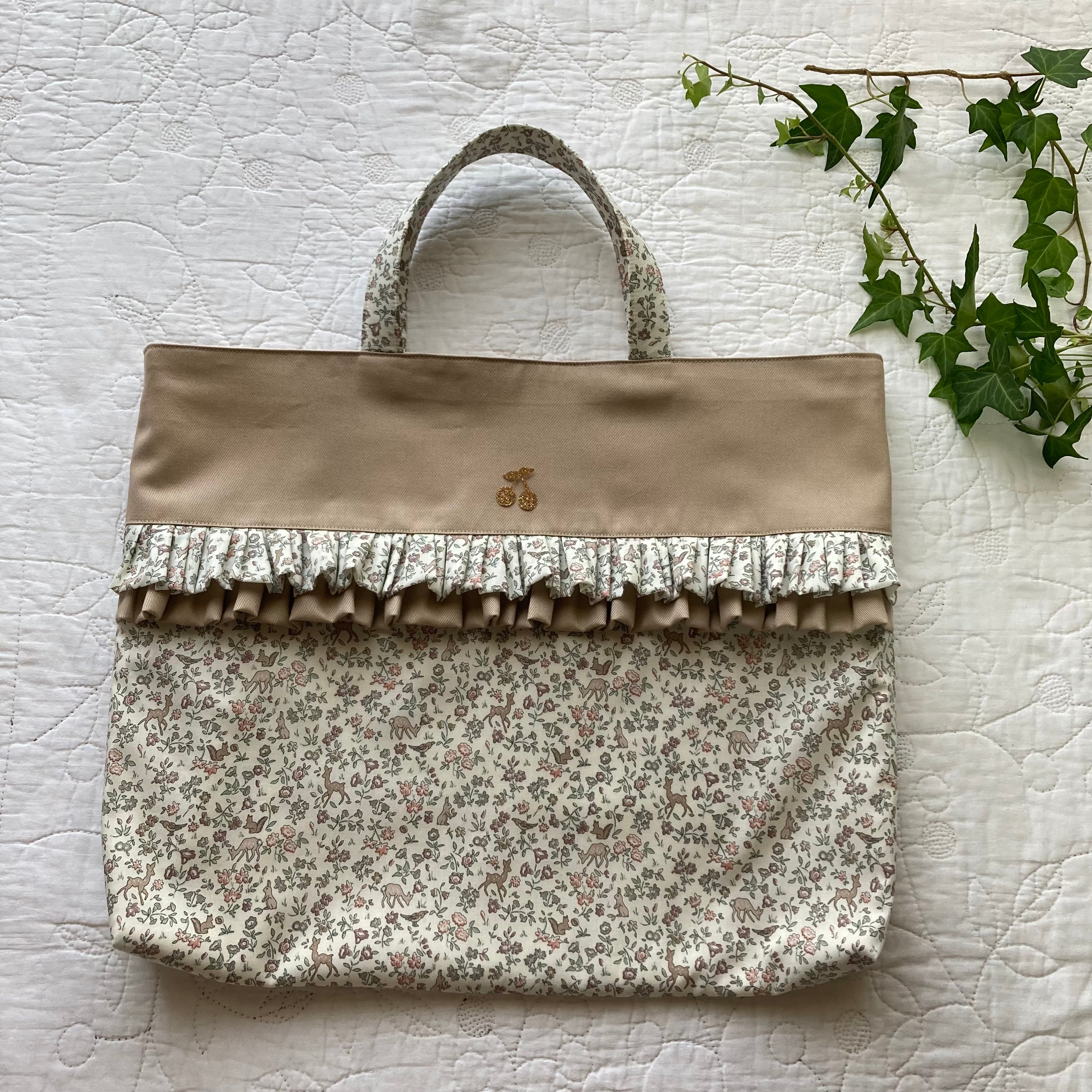 レッスンバッグ 絵本袋 通園バッグ ハンドメイド リバティ メドウテイルズ フレンチカラー チェックアンドストライプ