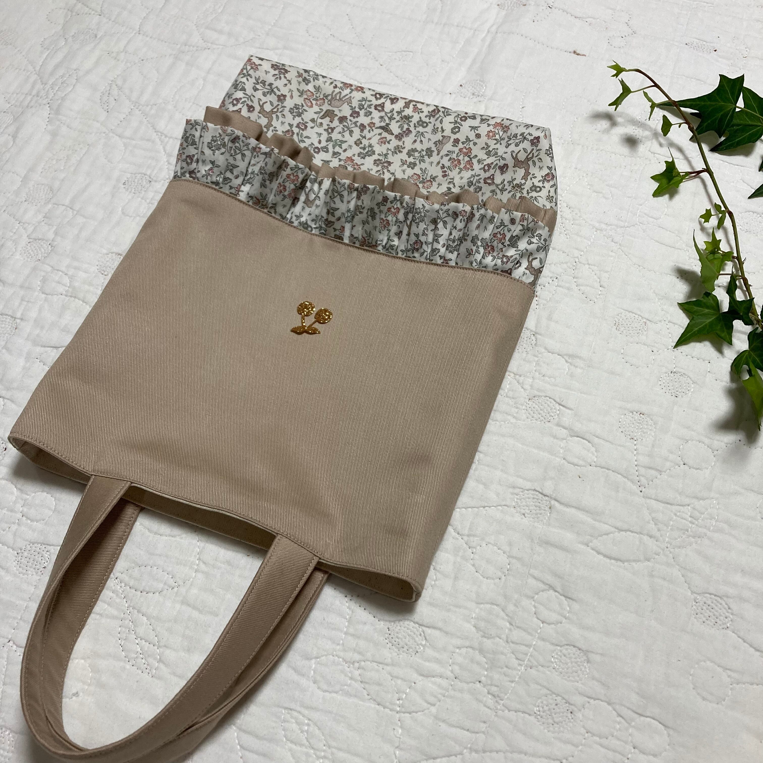 上履き入れ シューズケース トートバッグ ハンドメイド メドウテイルズ フレンチカラー チェックアンドストライプ