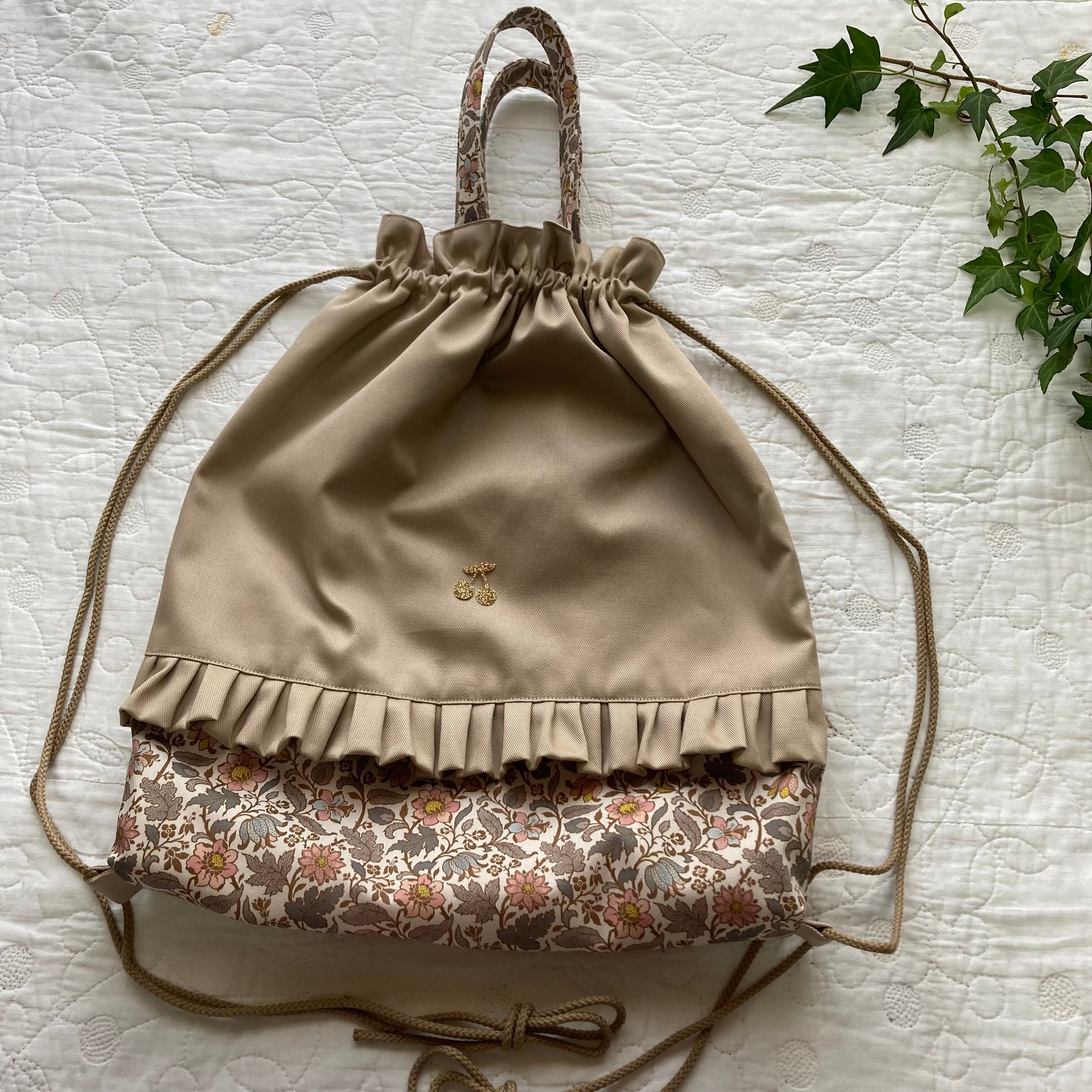 リバティ巾着 大きめナップサック 体操着袋 縦40×横34 エメリーウォーカー 雅姫さんコラボ ホビーラホビーレ