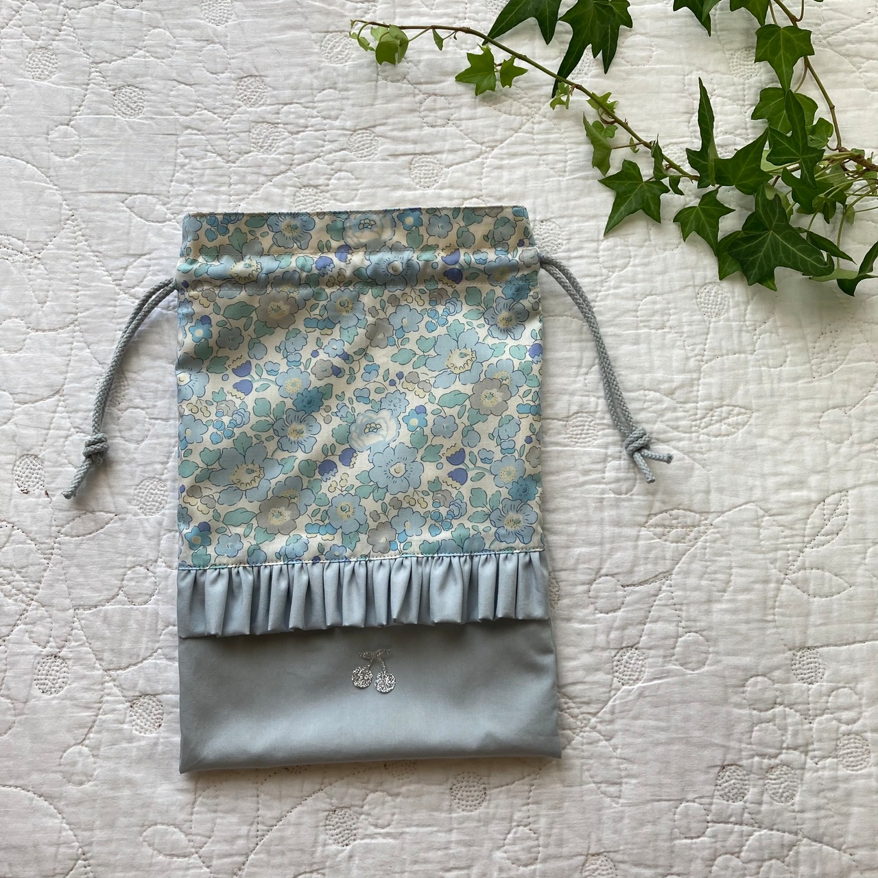 リバティ 巾着袋 (コップ入れ、給食袋) ハンドメイド ベッツィ サックス メルシー