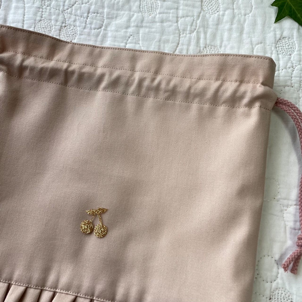 *さくらんぼアイロンシール(ゴールド)付きです。
