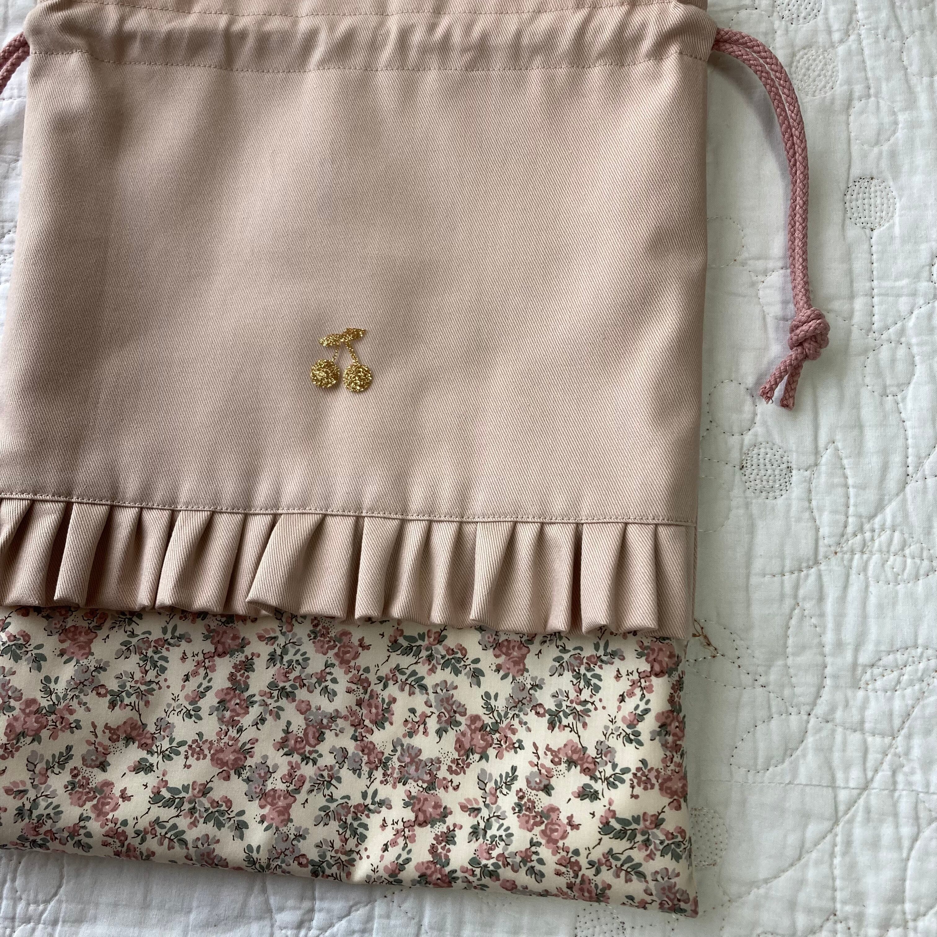 リバティ巾着 お着替え袋 体操着入れ ハンドメイド ムーンモス クラシカルピンク MY mama