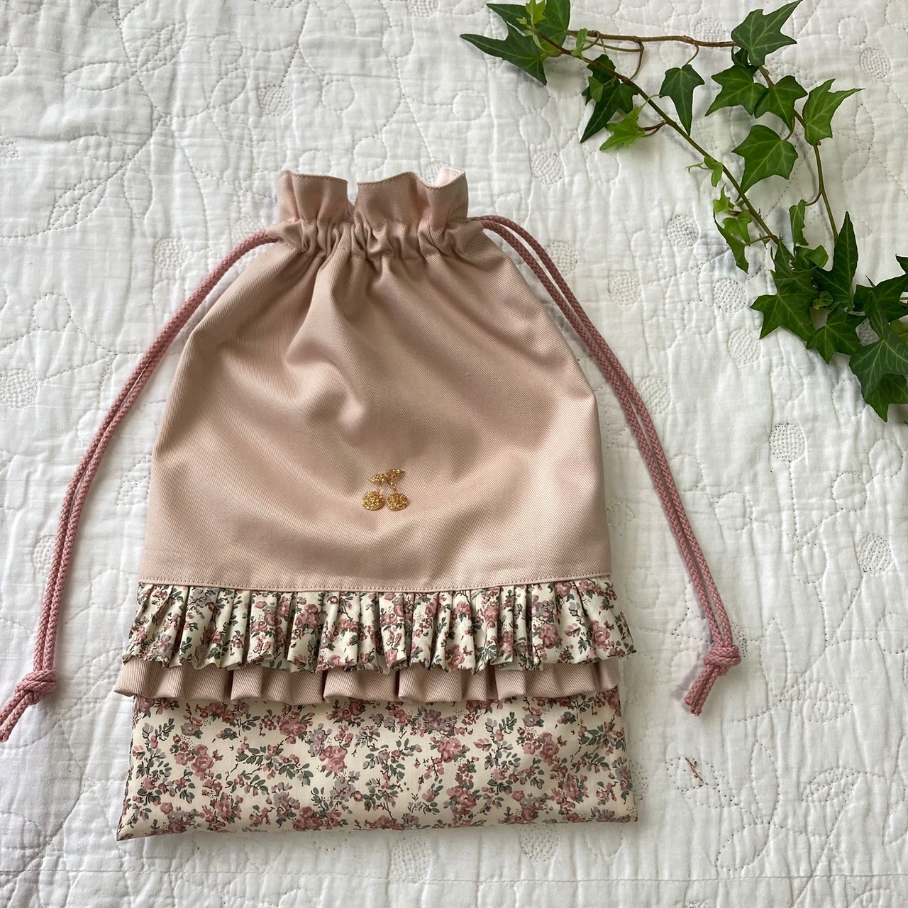 リバティ巾着 給食袋 コップ入れ ハンドメイド ムーンモス クラシカルピンク