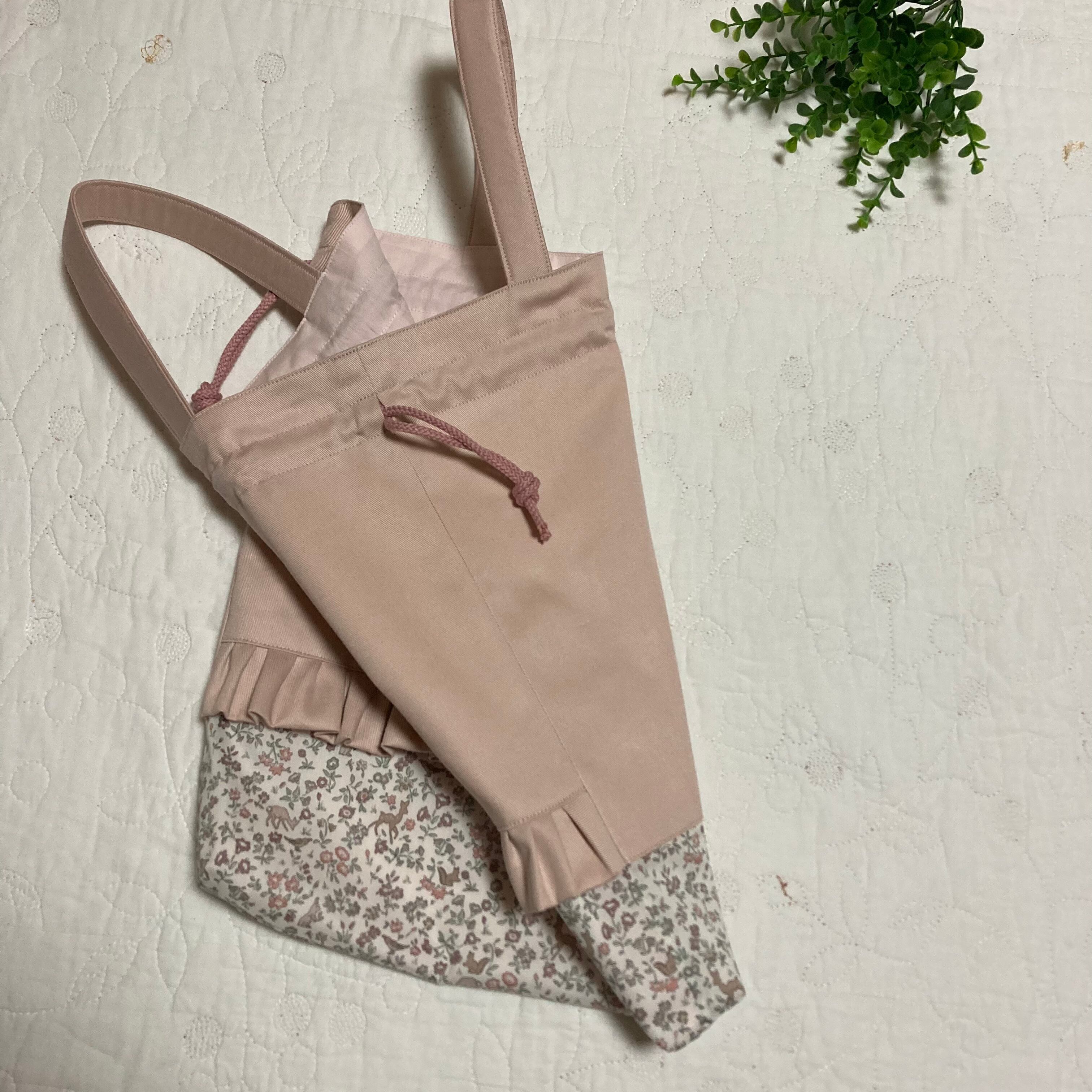 持ち手付き巾着 縦 37cm 片面フリル付き