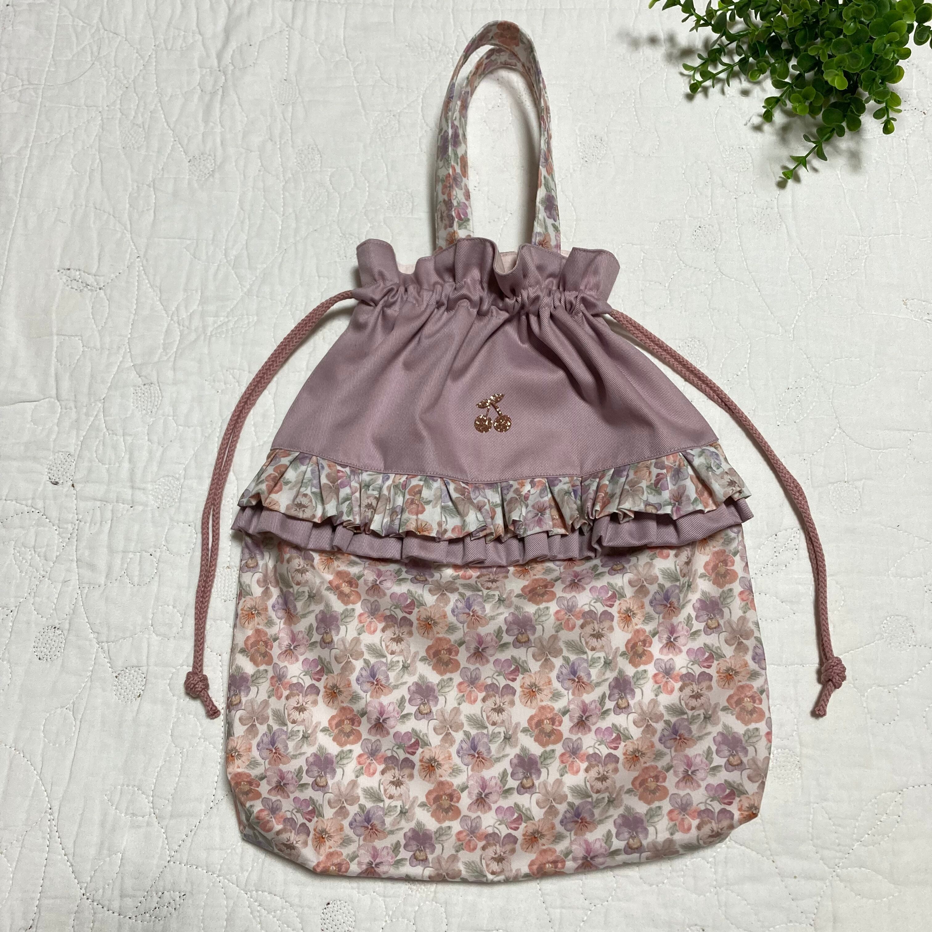 持ち手付き巾着 縦 35cm 片面フリル付き