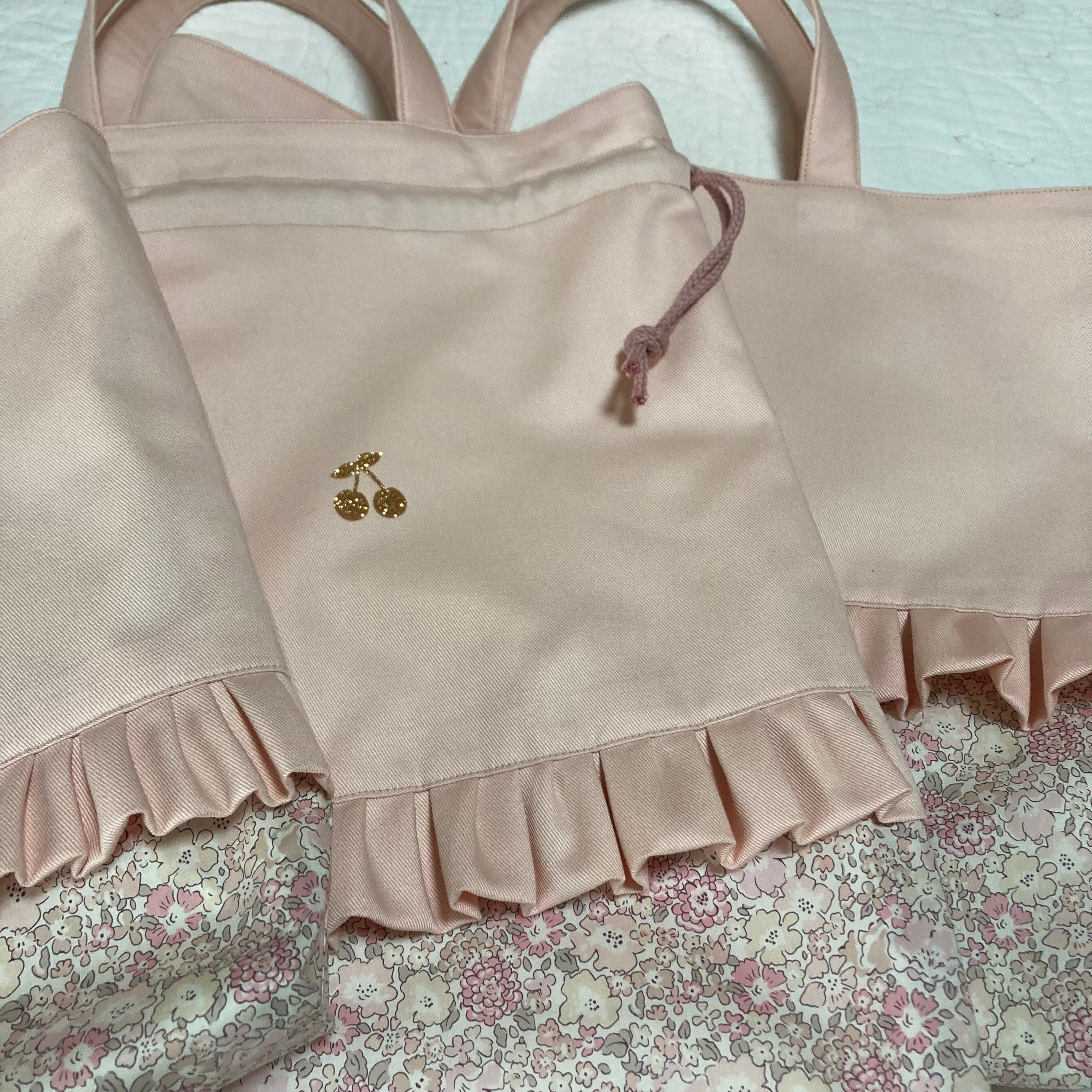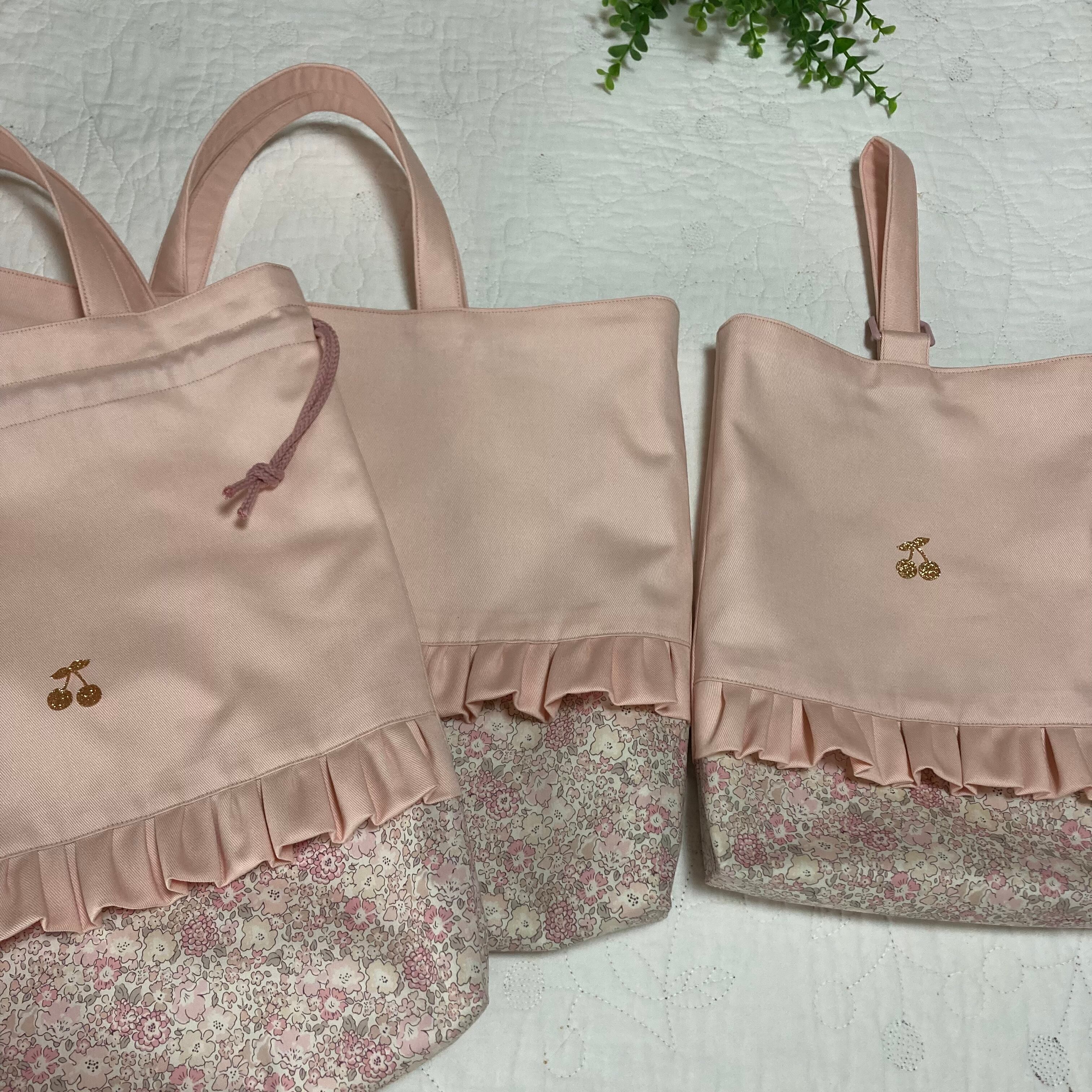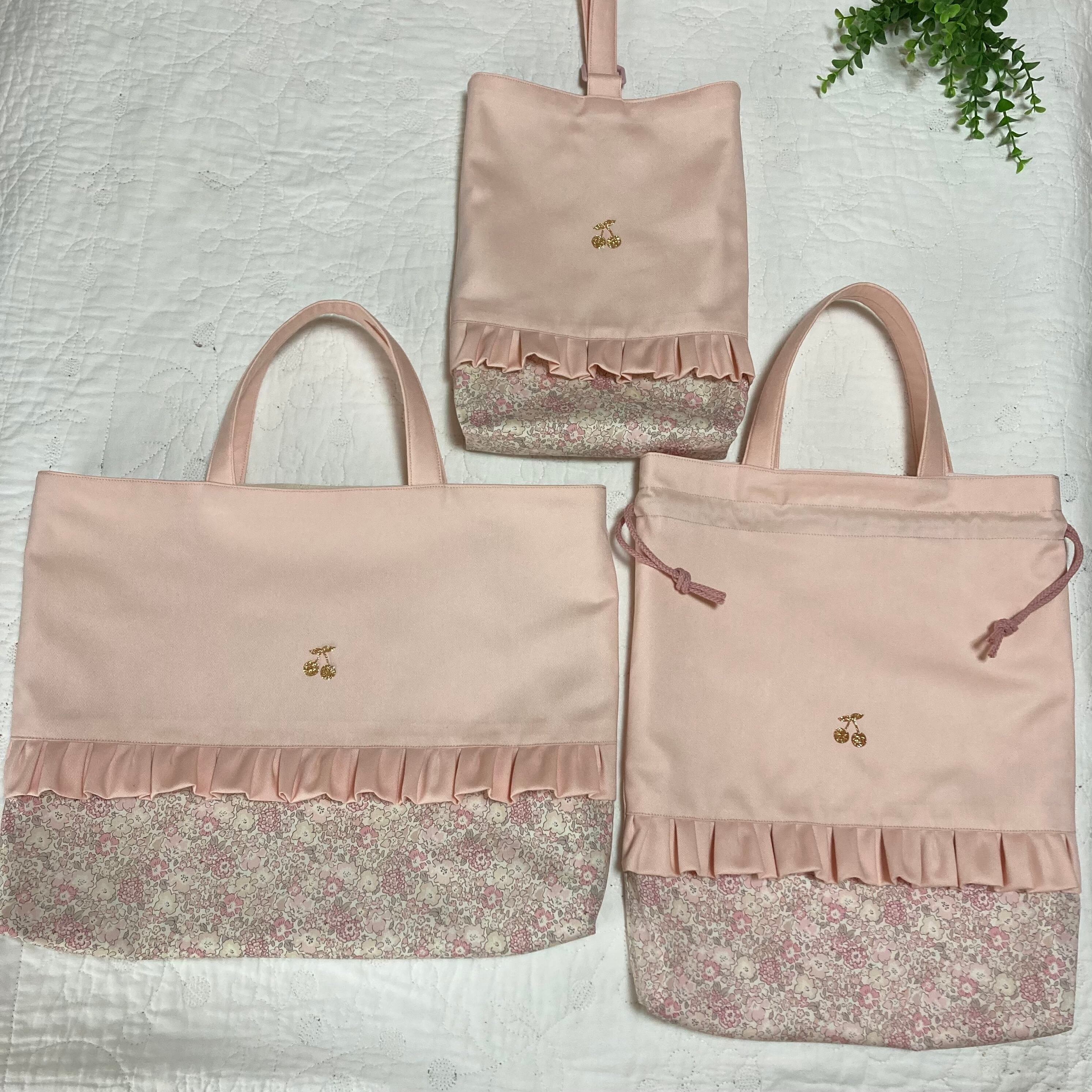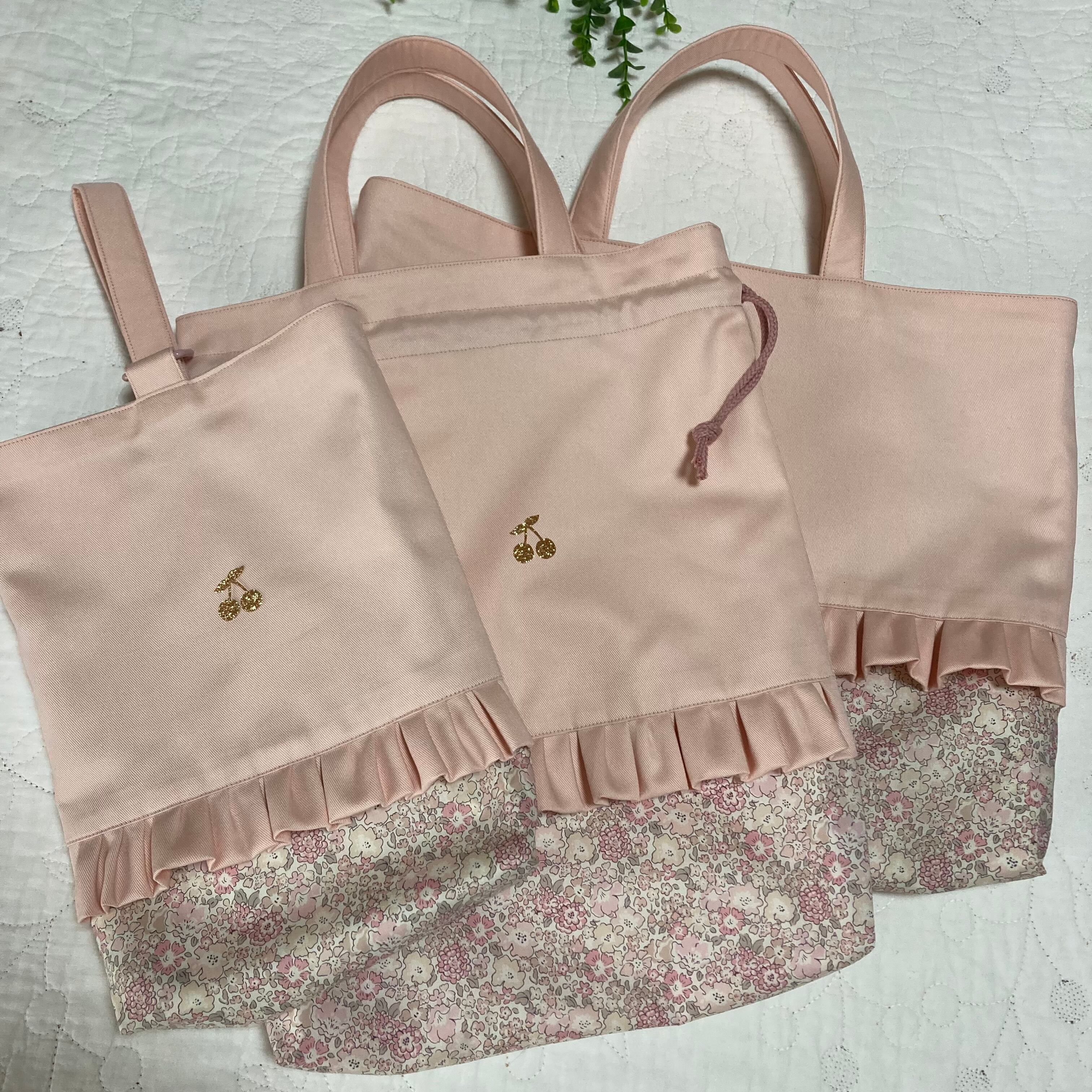 入園入学グッズ ハンドメイド 3点(絵本袋 着替え袋 靴袋) ミシェル ニュアンスピンク ちびちびきっちん