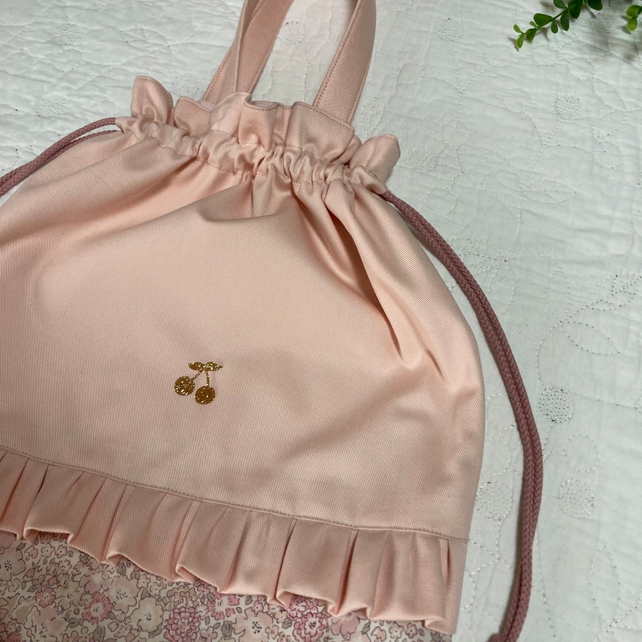 持ち手付き巾着 縦 35cm 片面フリル付き