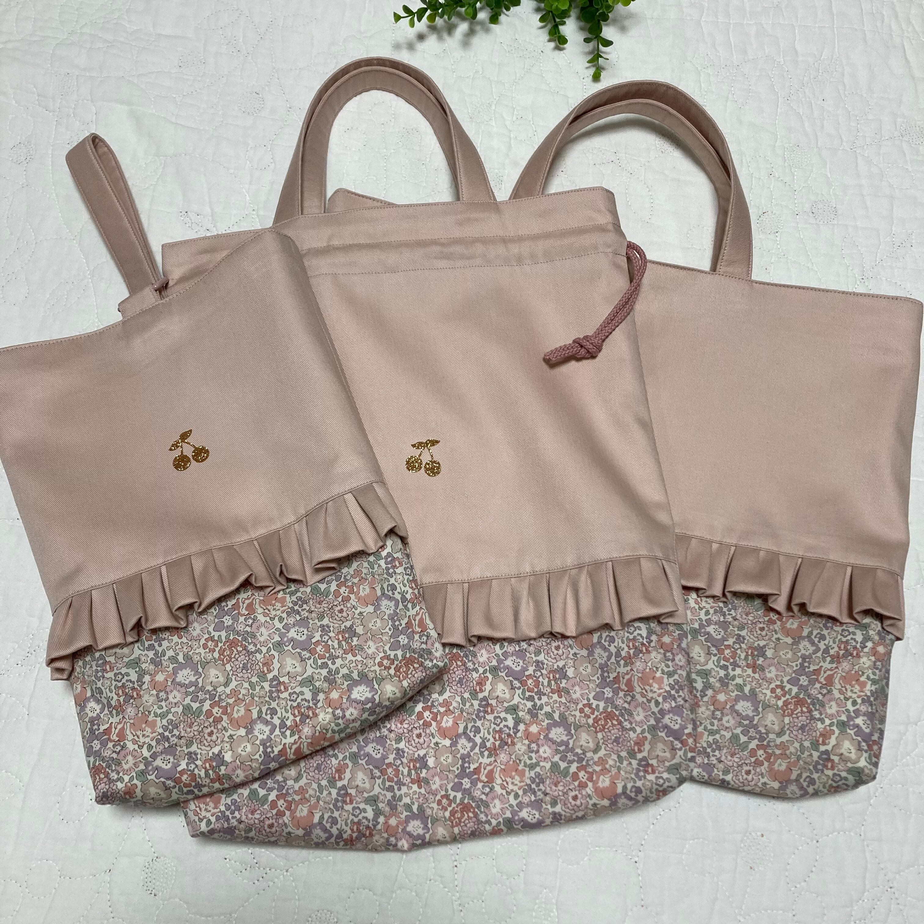 リバティ レッスンバッグ お着替え袋 上靴入れ 3点 ミシェル パールベージュ チビチビキッチン 入園入学準備グッズ