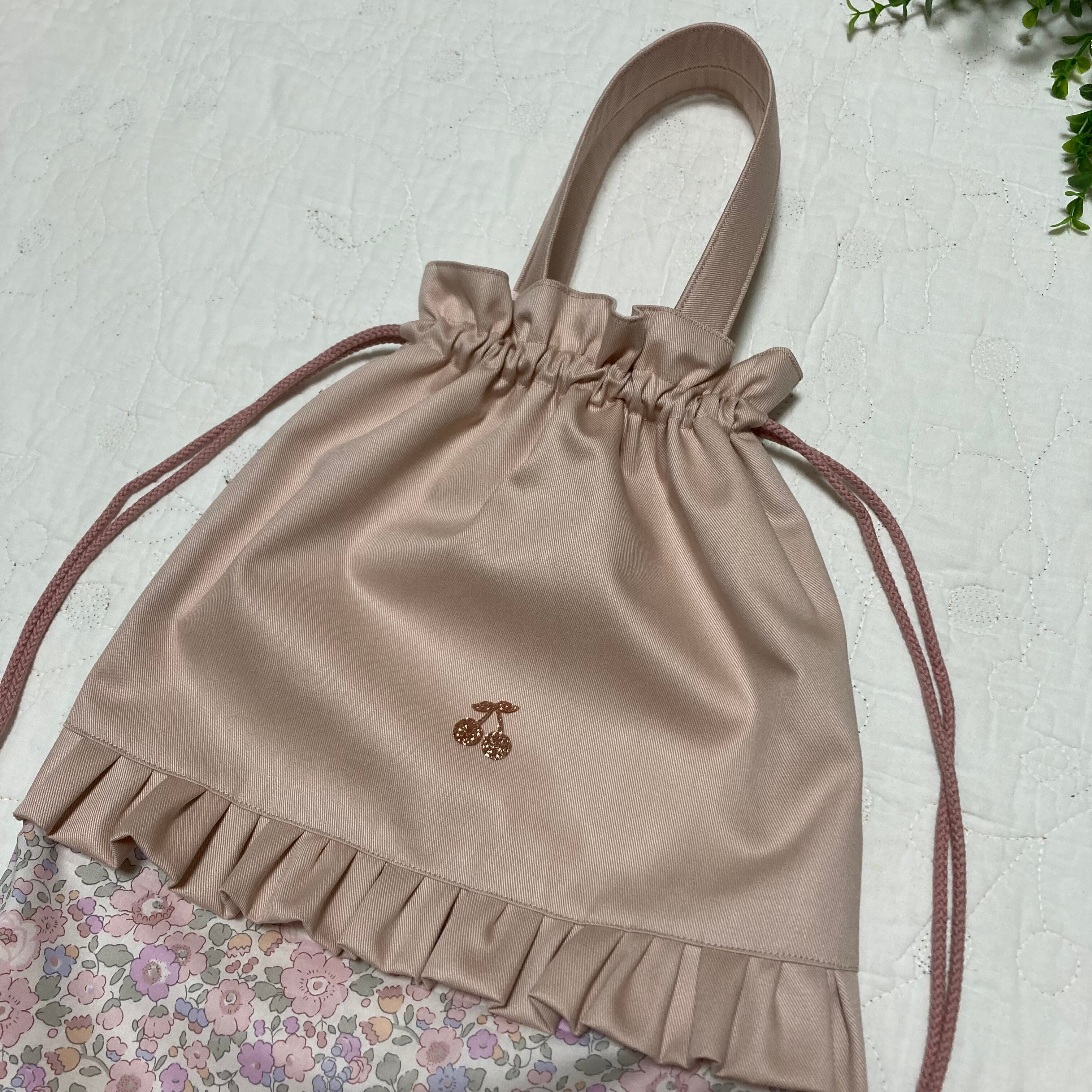 持ち手付き巾着 縦 35cm 片面フリル付き