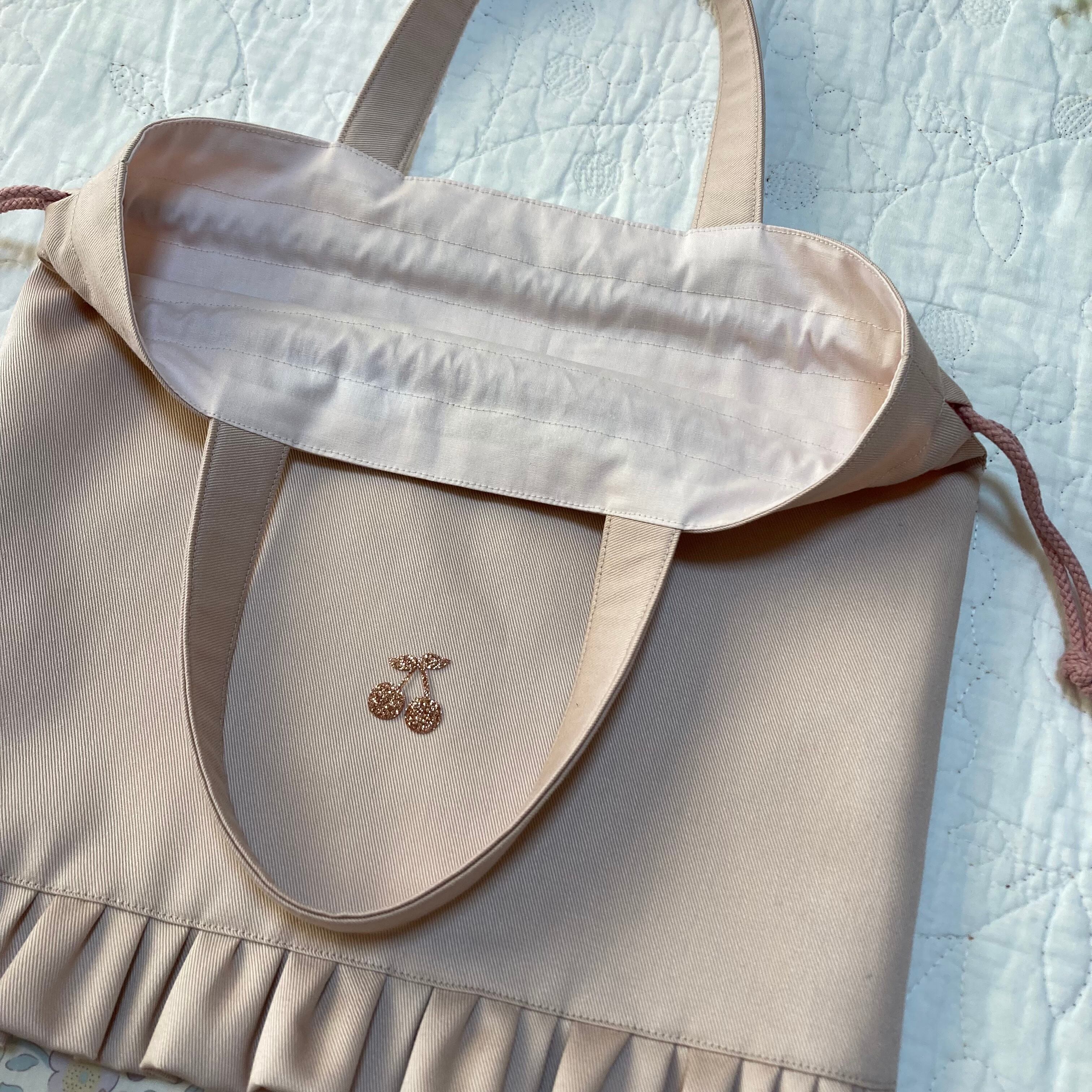 持ち手付き巾着 縦 35cm 片面フリル付き