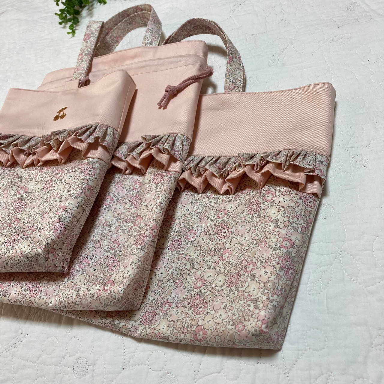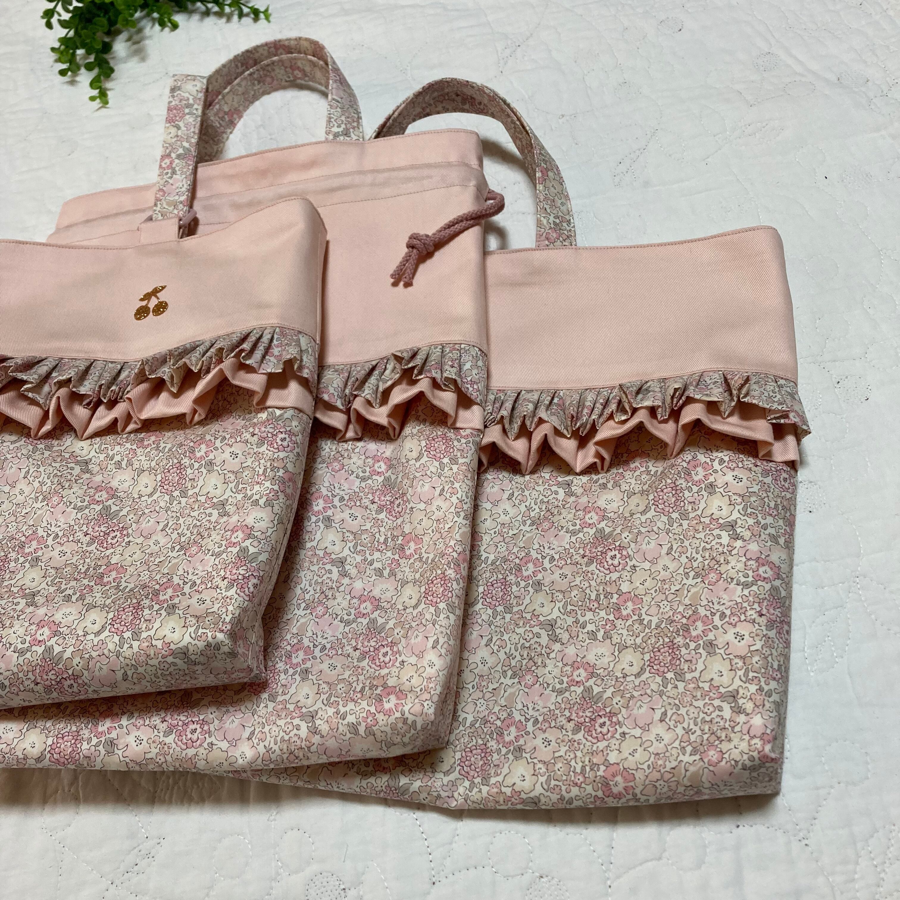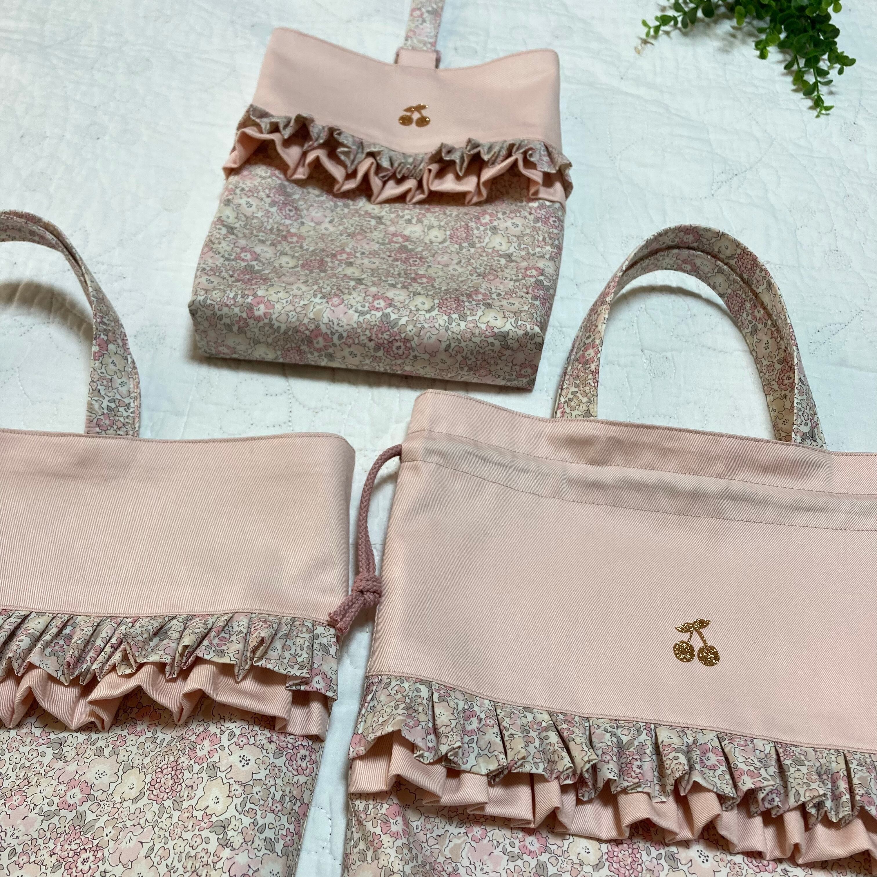 入園入学グッズ ハンドメイド 3点セット(絵本袋 着替え袋 靴袋) ミシェル ニュアンスピンク チビチビキッチン