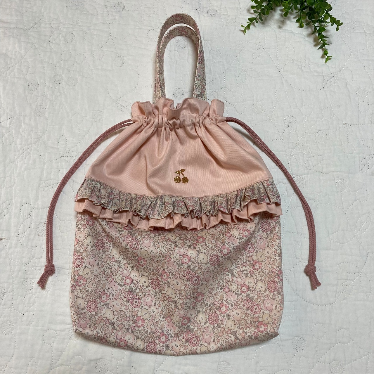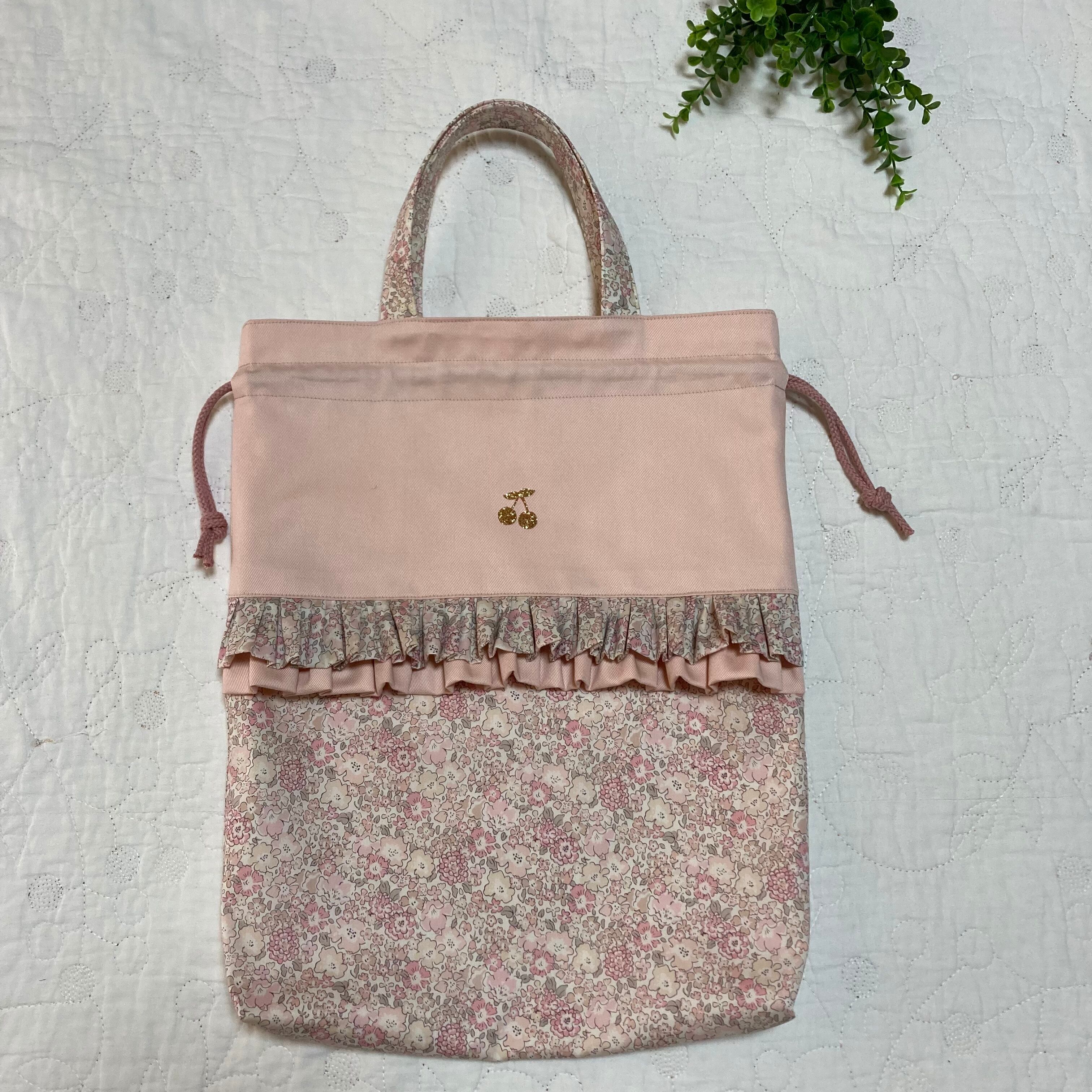 持ち手付き巾着 縦 35cm 片面フリル付き