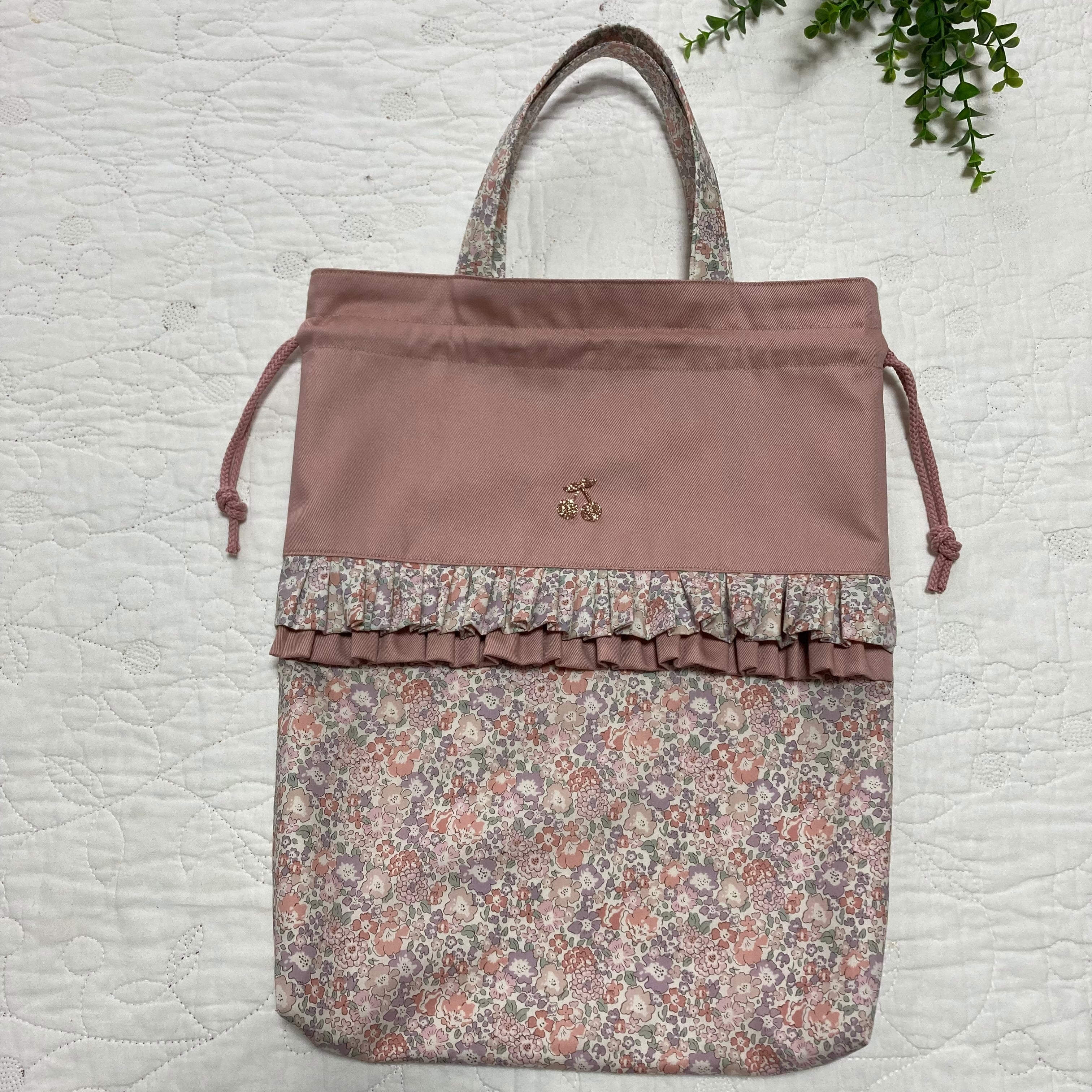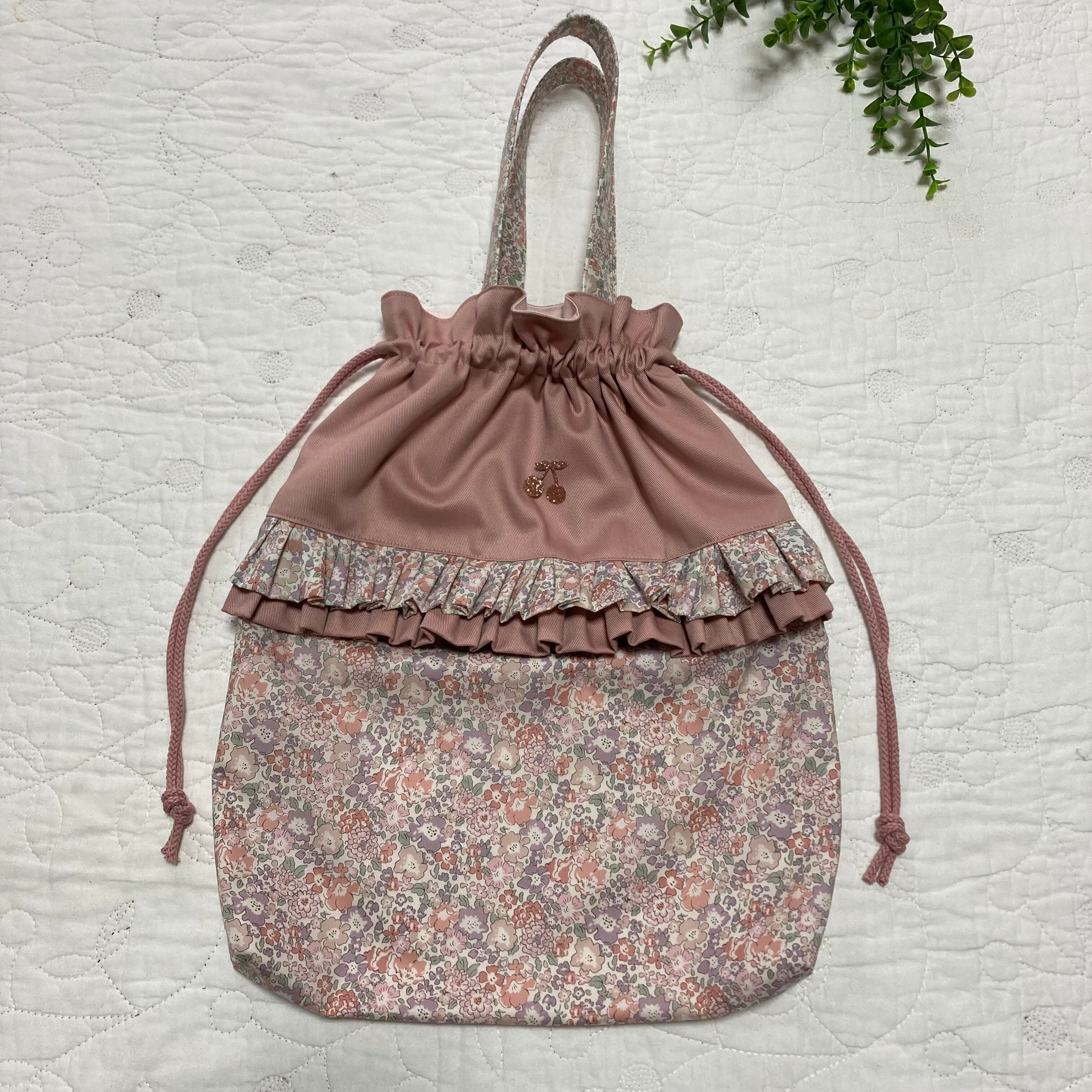 持ち手付き巾着 縦 35cm 片面フリル付き