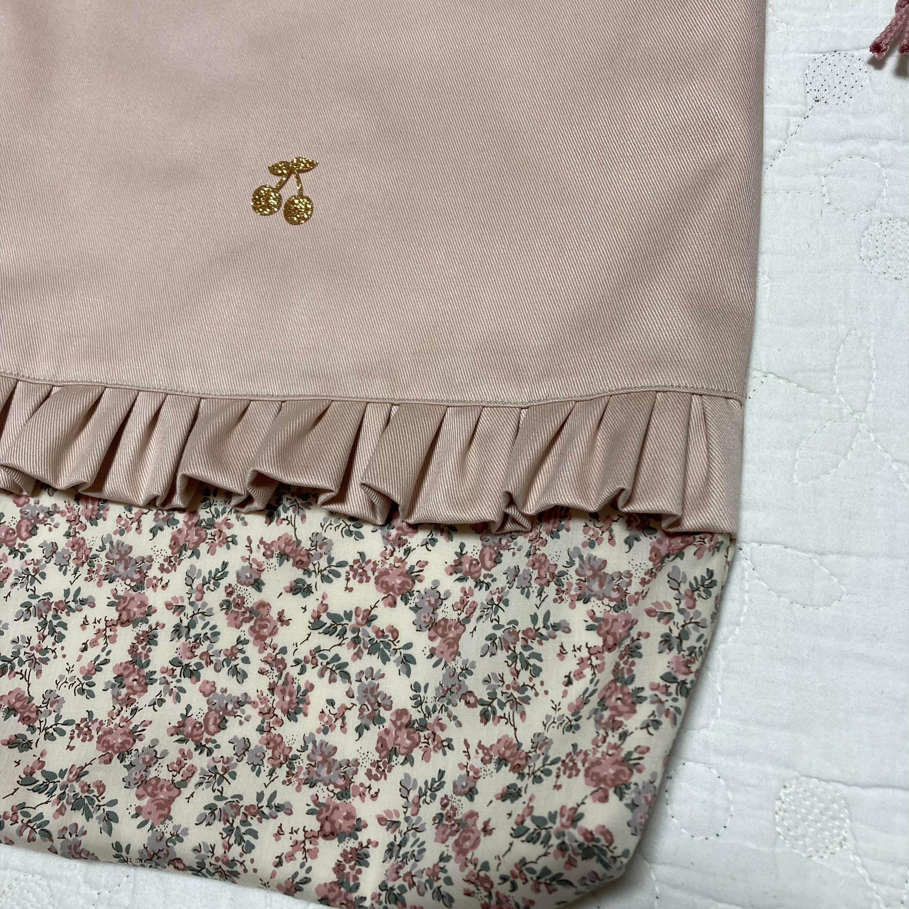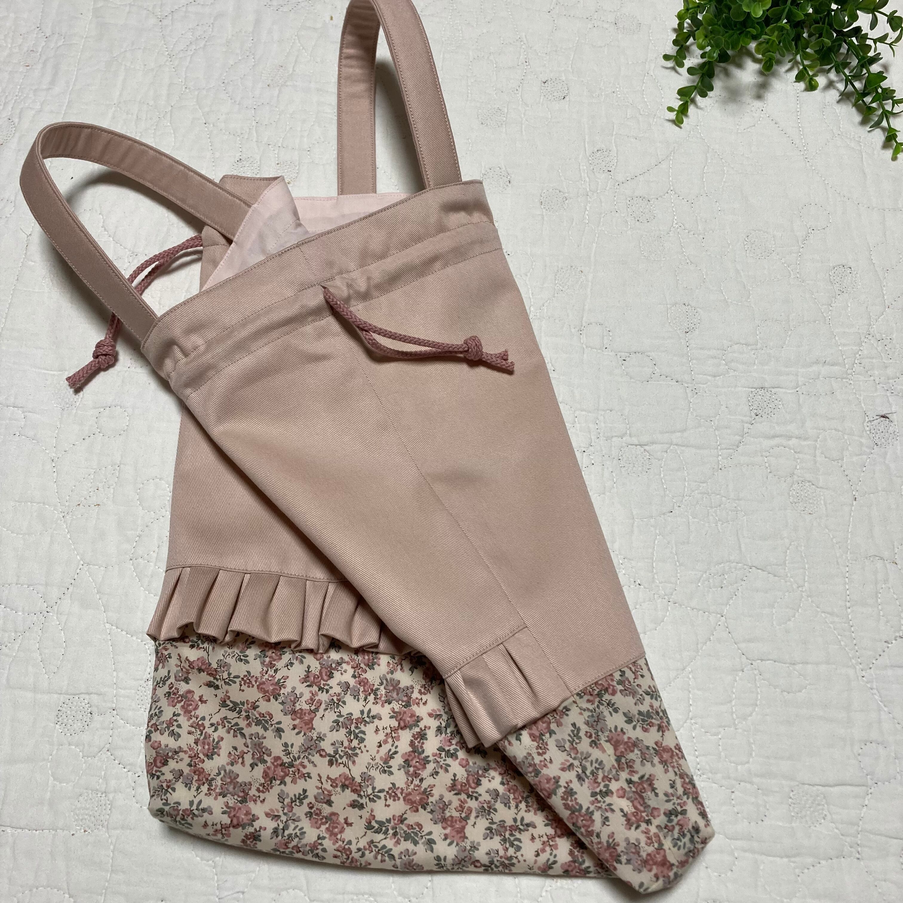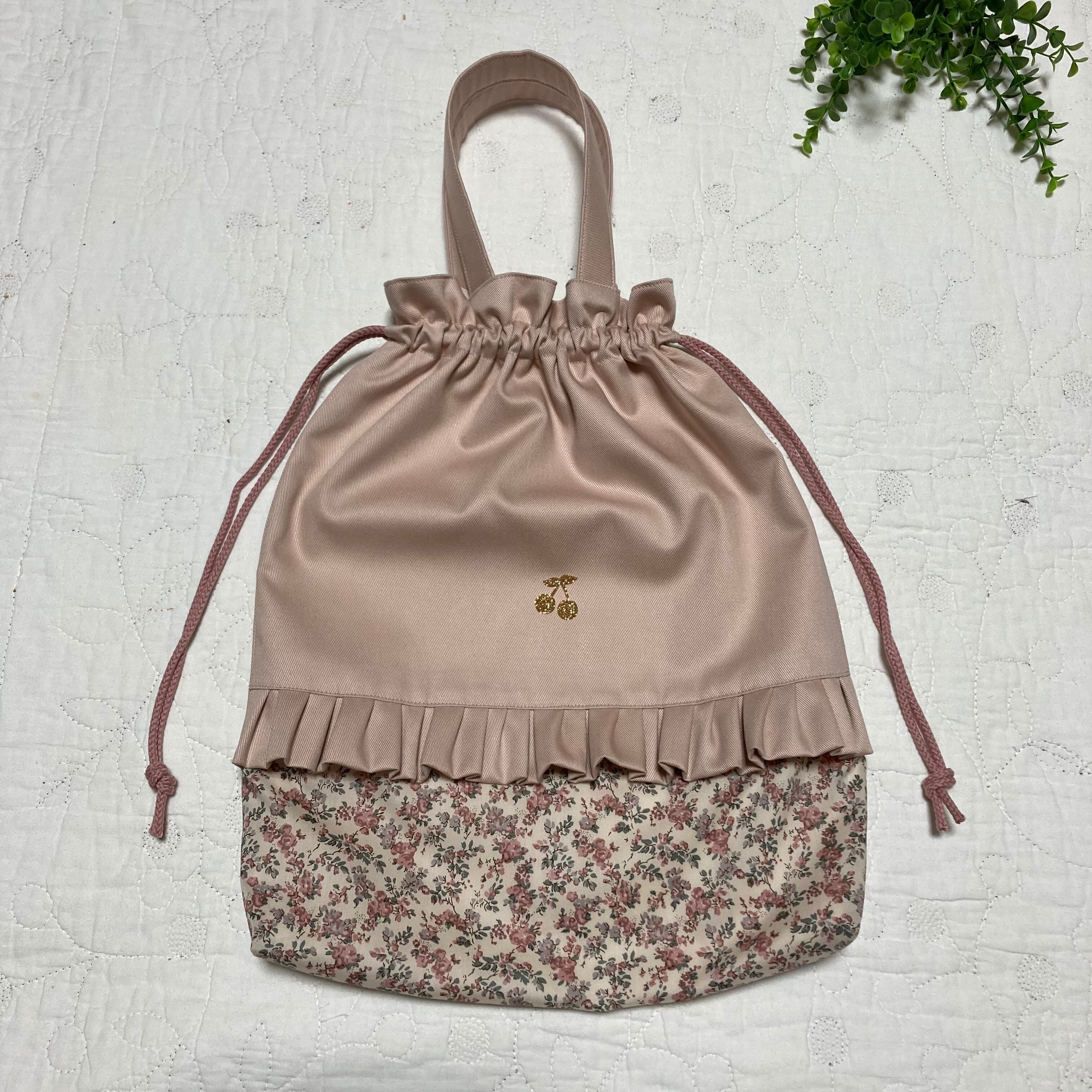持ち手付き巾着 縦 35cm 片面フリル付き