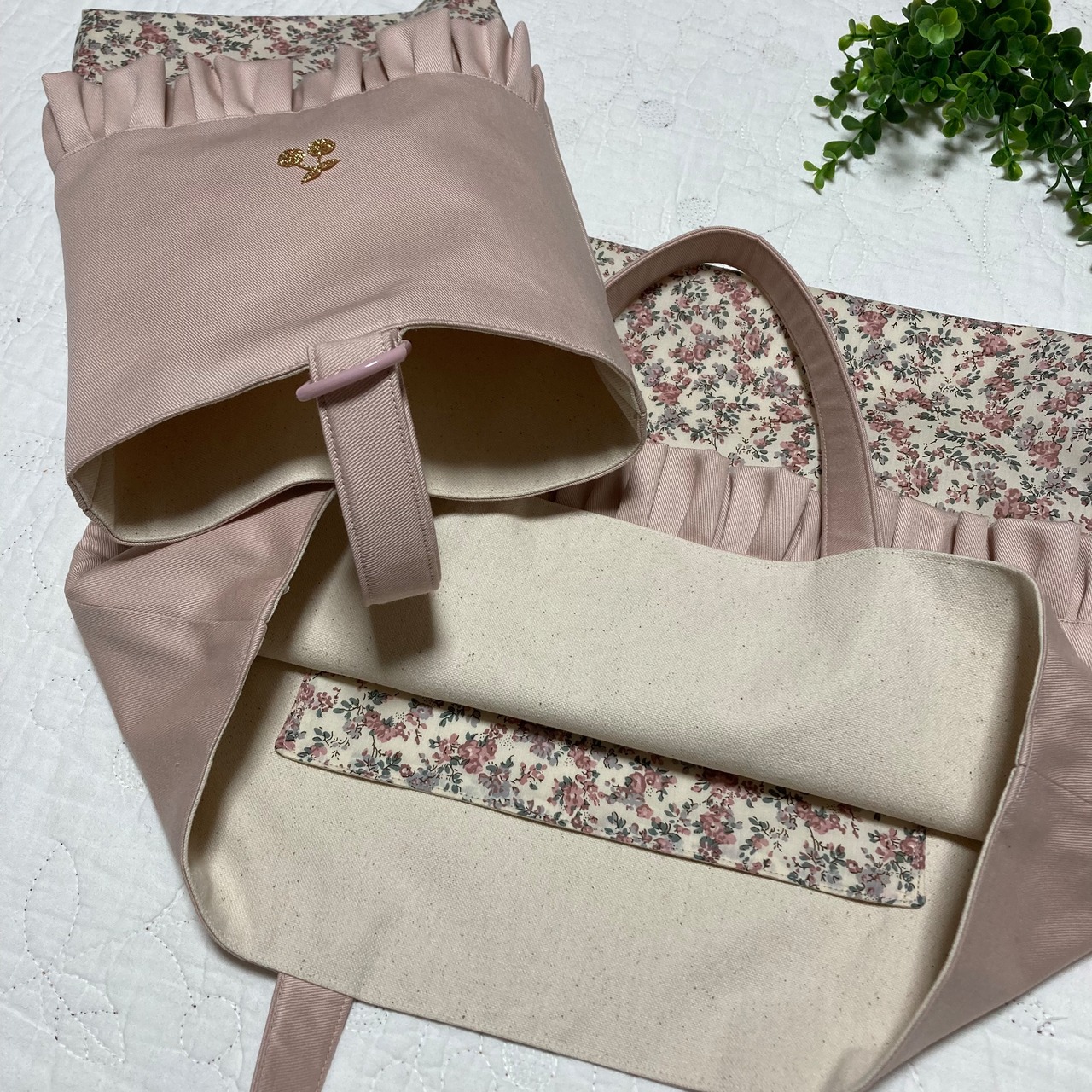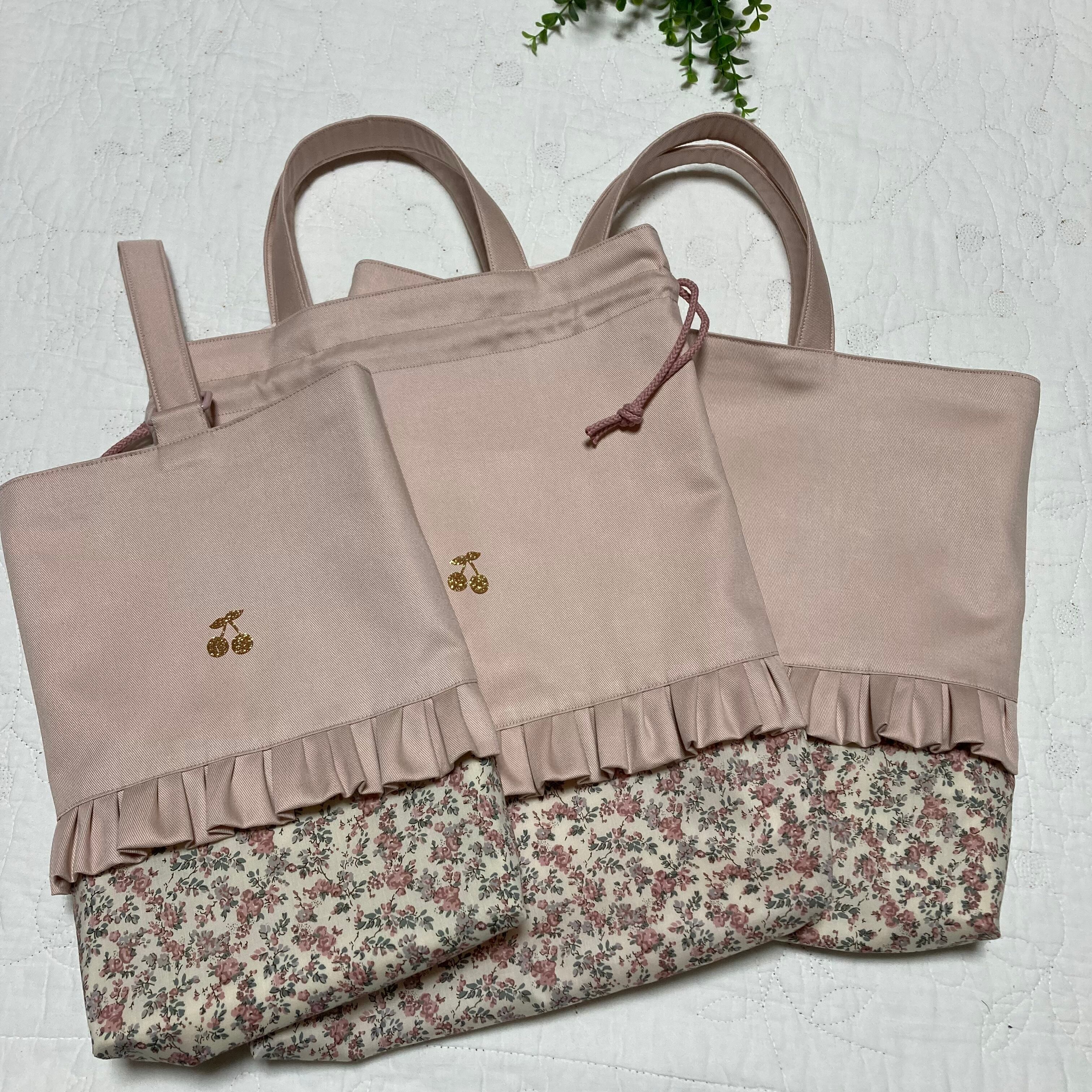 リバティ 絵本袋 体操着袋 上靴入れ 3点セット ムーンモス クラシカルピンク 入園入学準備グッズ