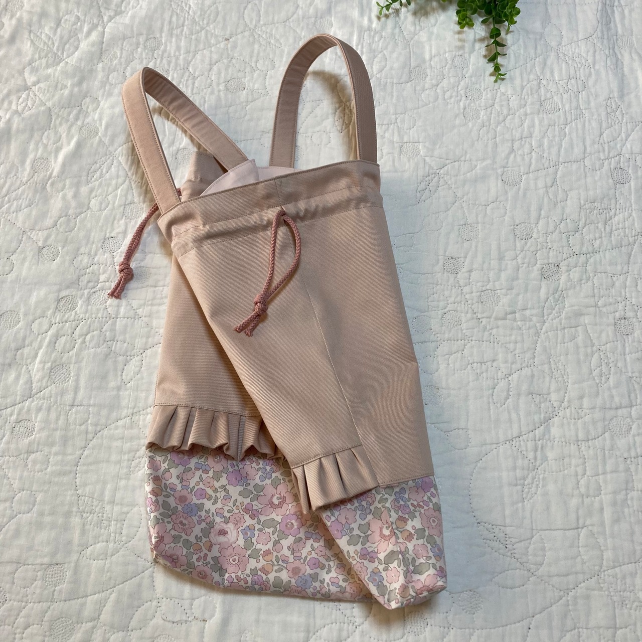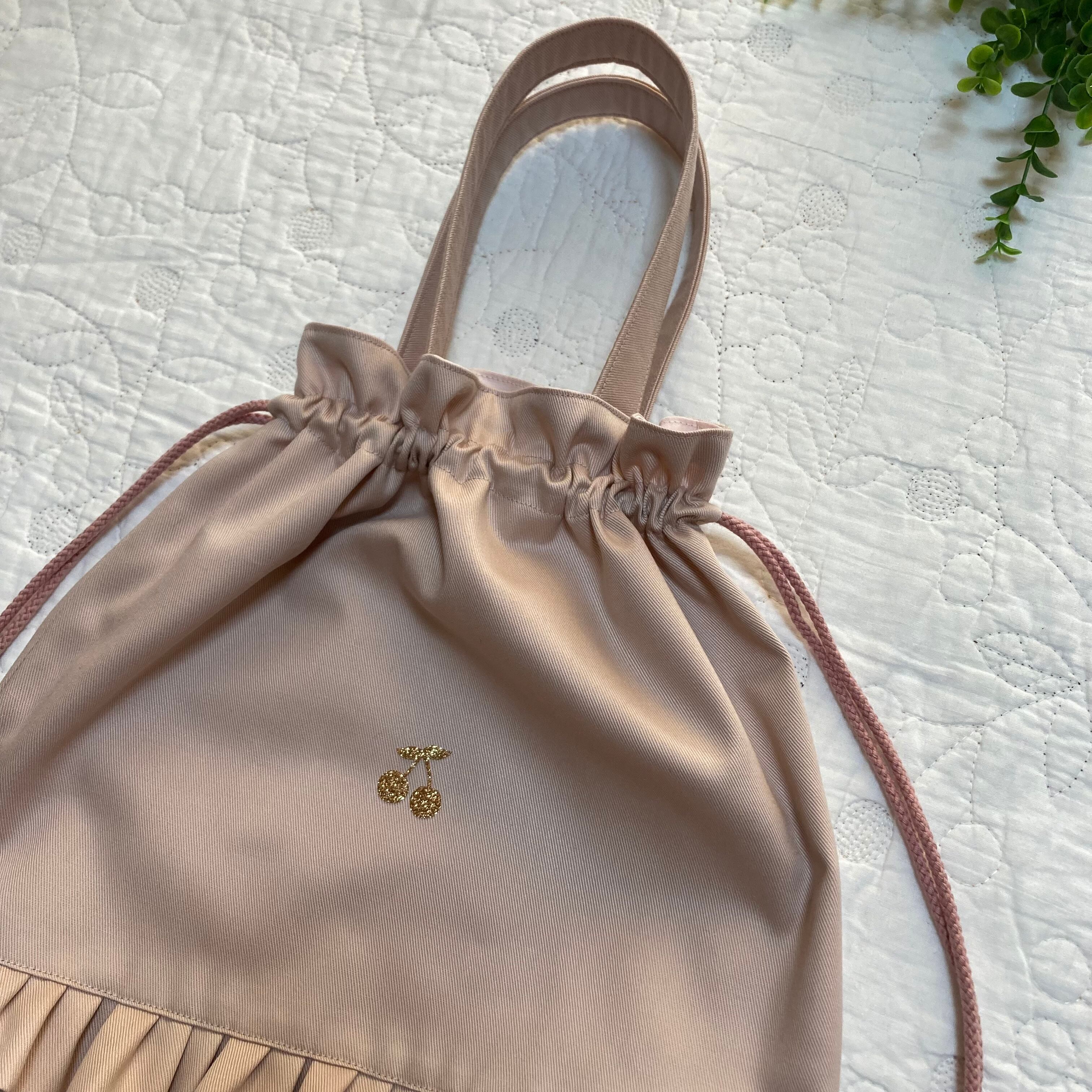 持ち手付き巾着 縦 37cm 片面フリル付き