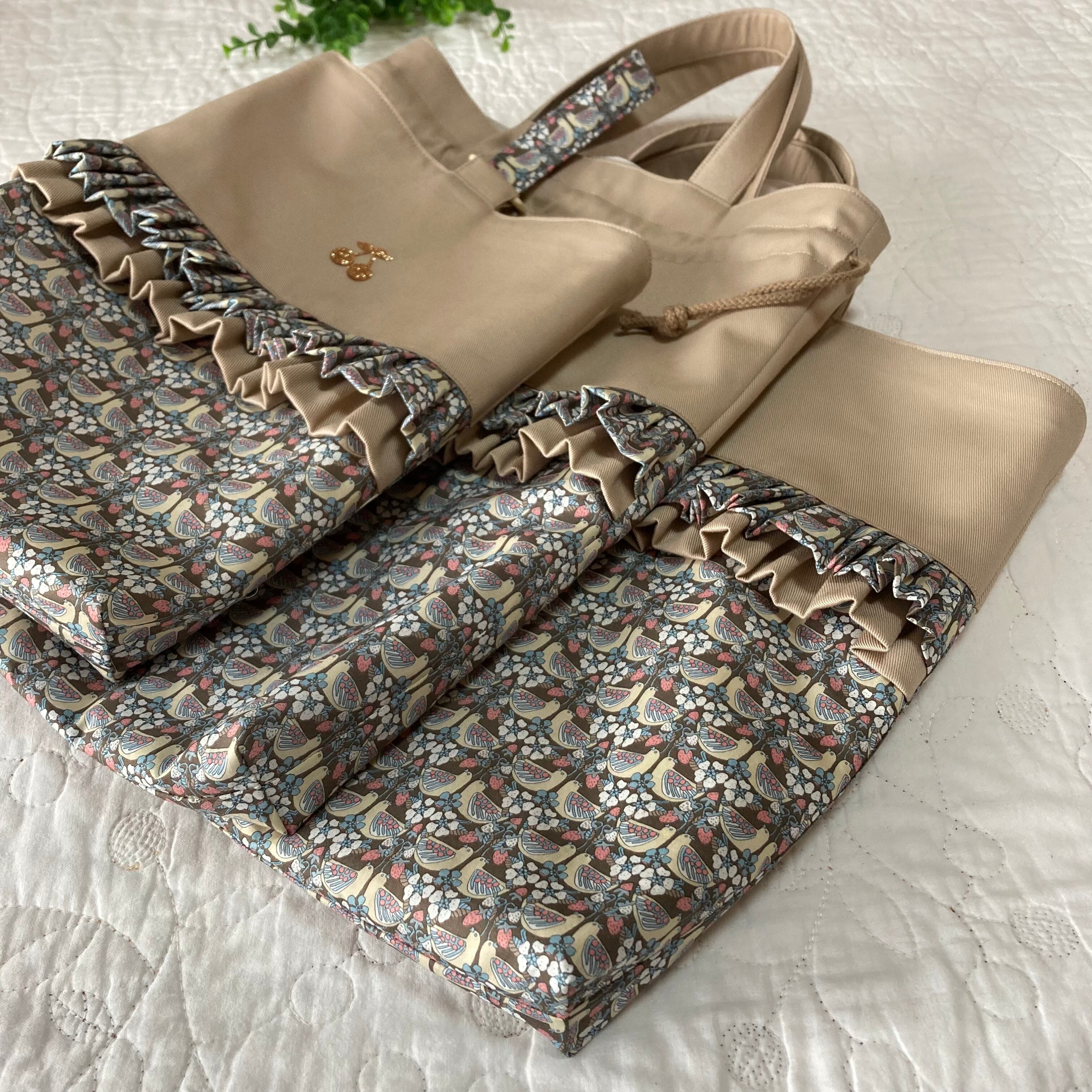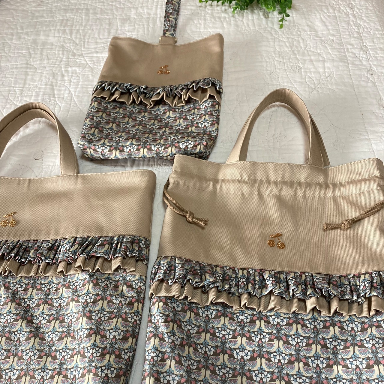 リバティ レッスンバッグ お着替え袋 上履き入れ 3点セット ストロベリーフィースト チェック&ストライプ 入園入学準備グッズ