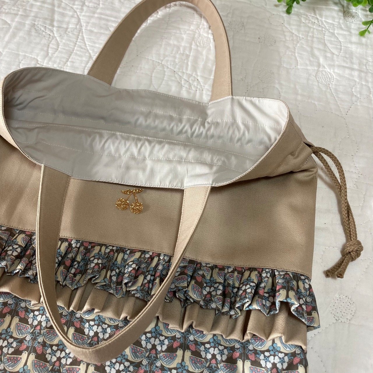 持ち手付き巾着 縦 35cm 片面フリル付き