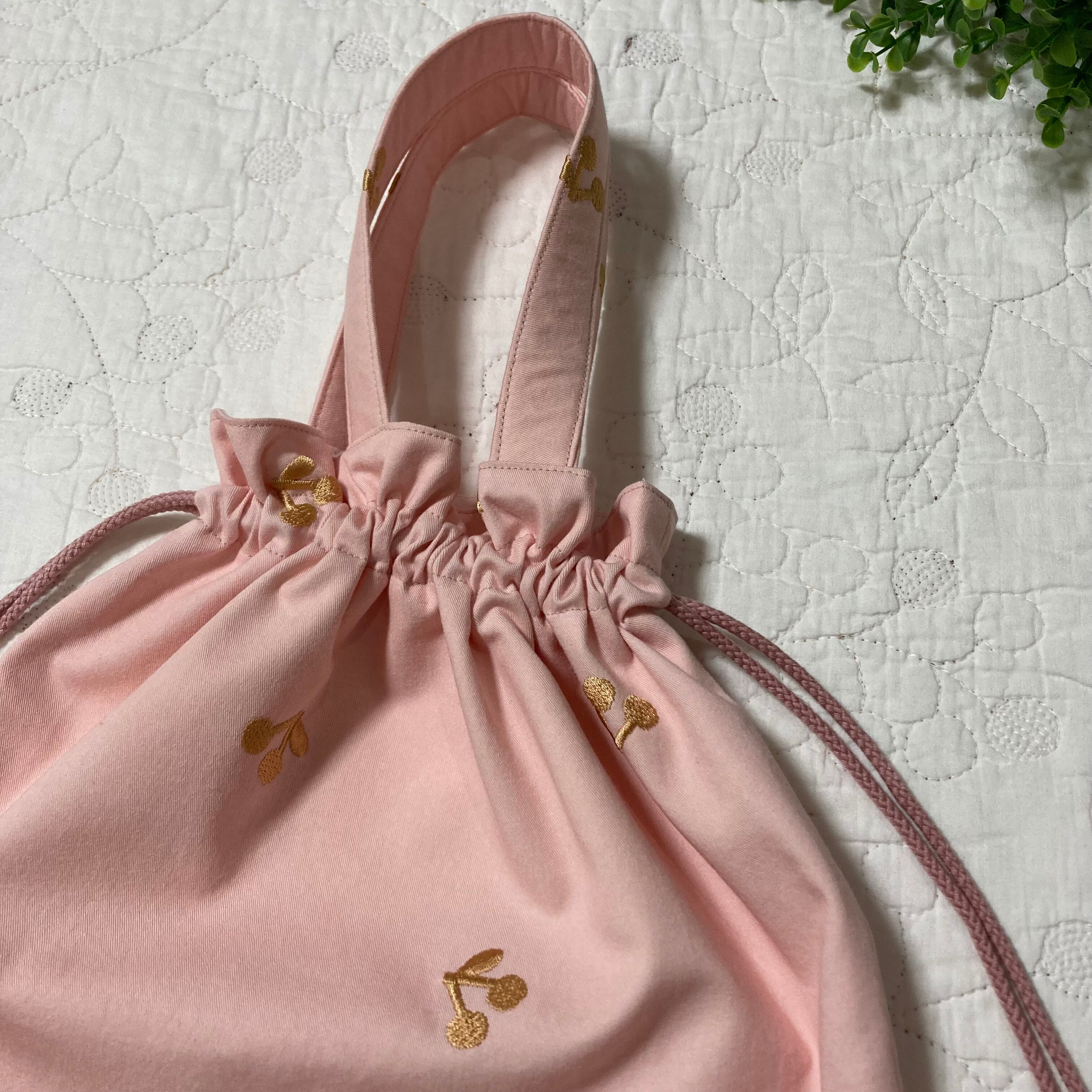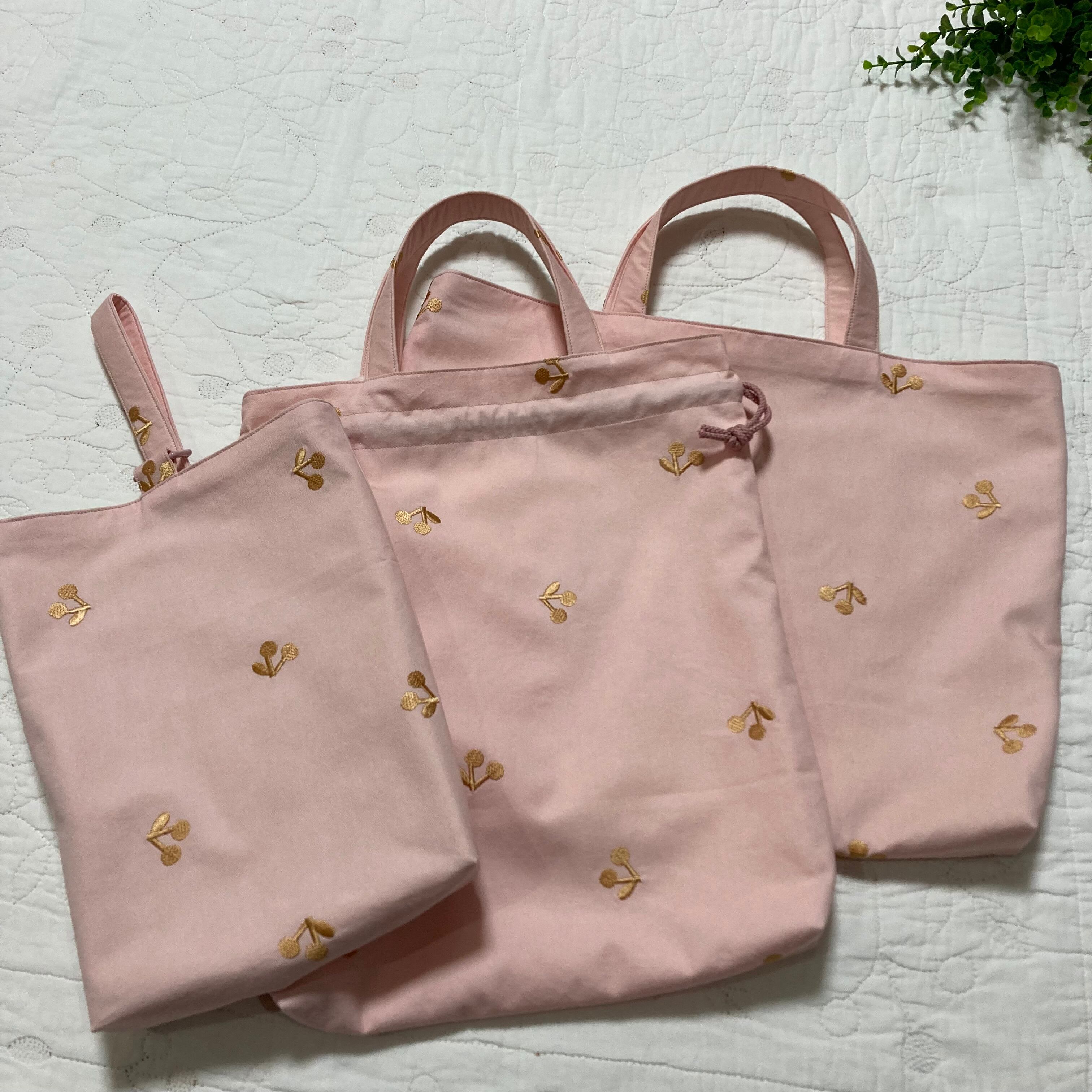 入園入学グッズ レッスンバッグ お着替え袋 上履き入れ 3点 さくらんぼ刺繍