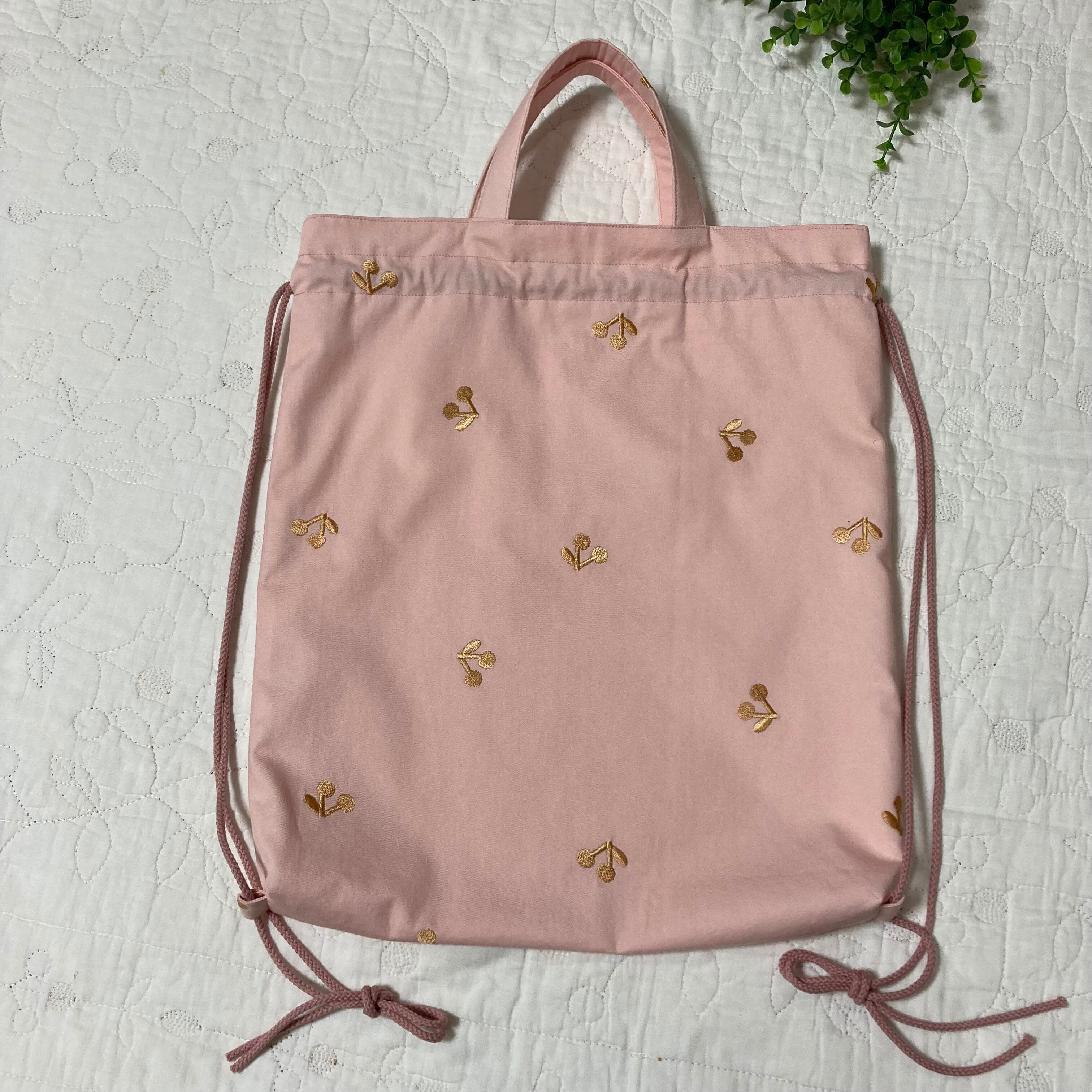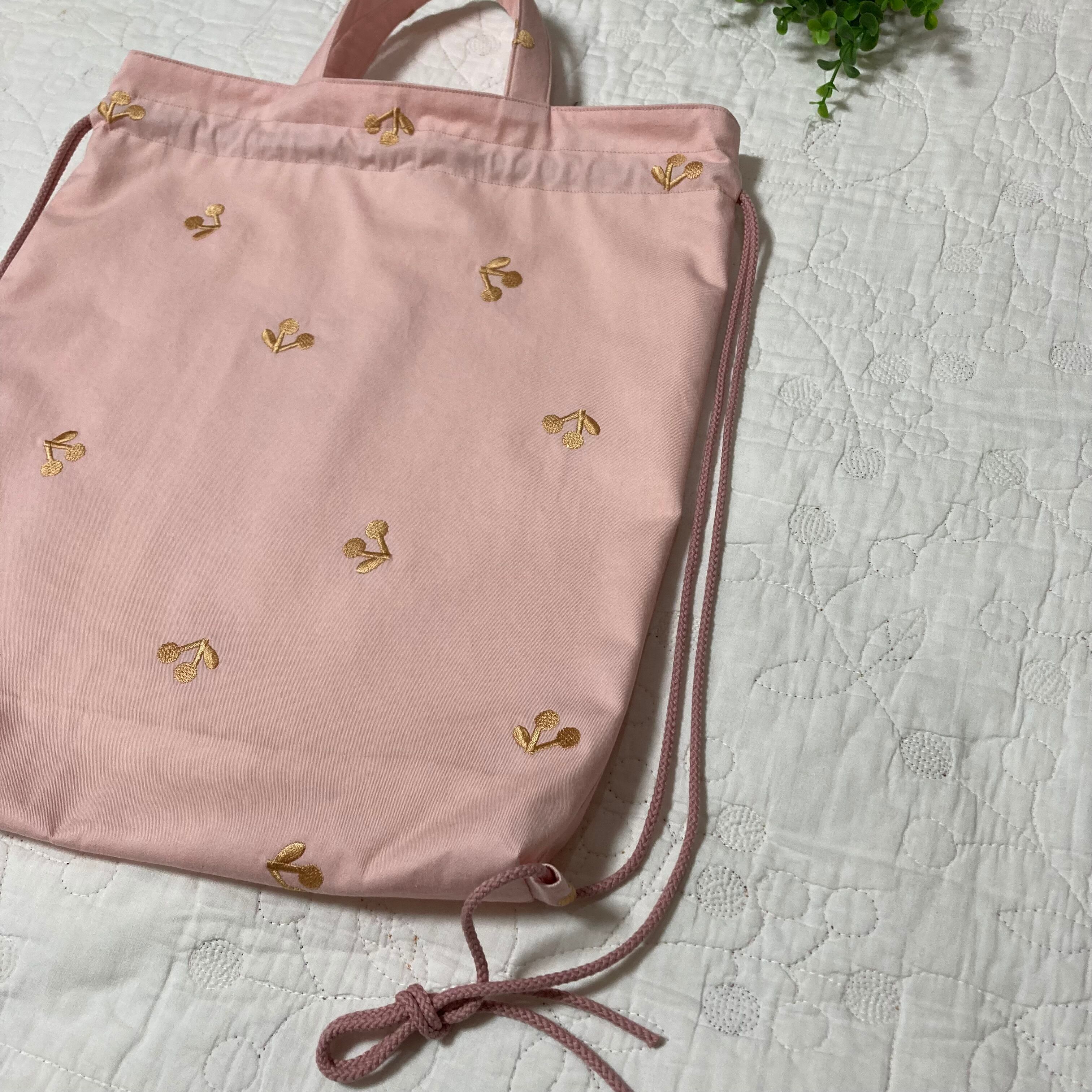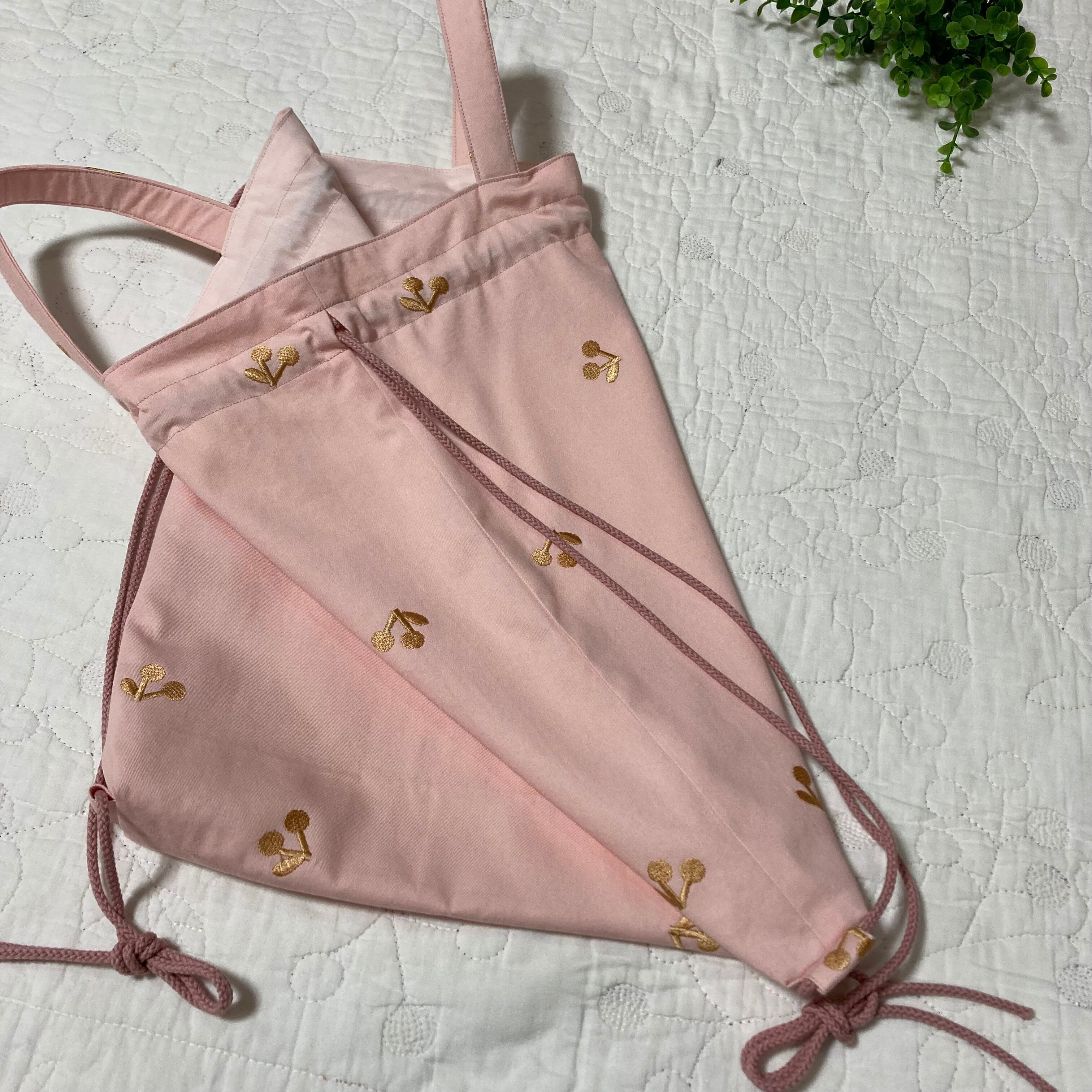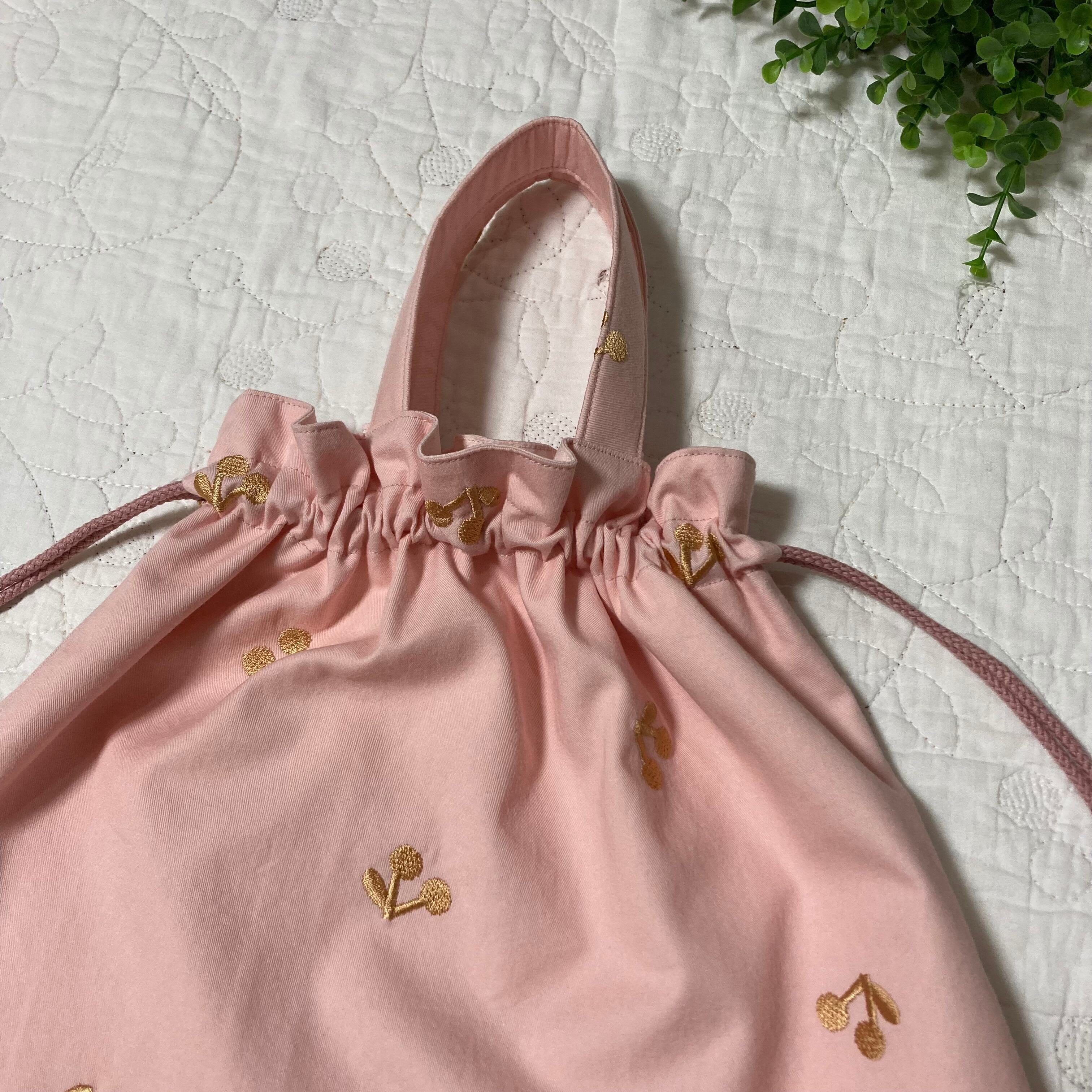 入園入学準備グッズ ハンドメイド ナップサック お着替え袋 体操着袋 さくらんぼ刺繍