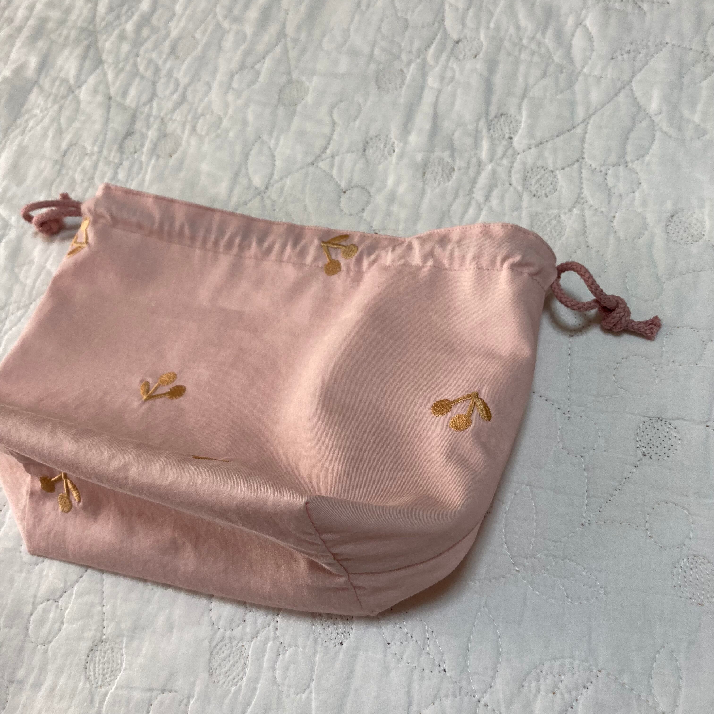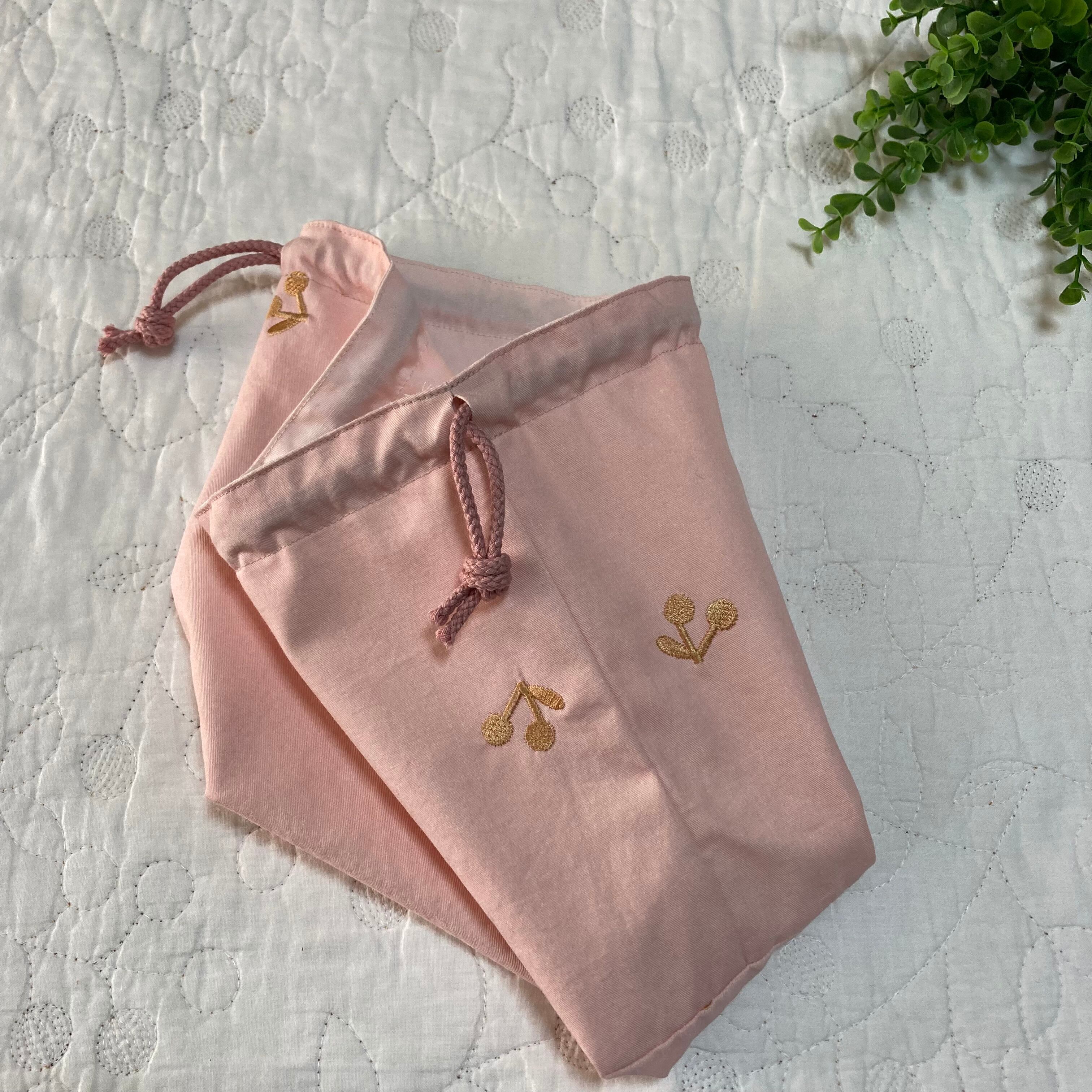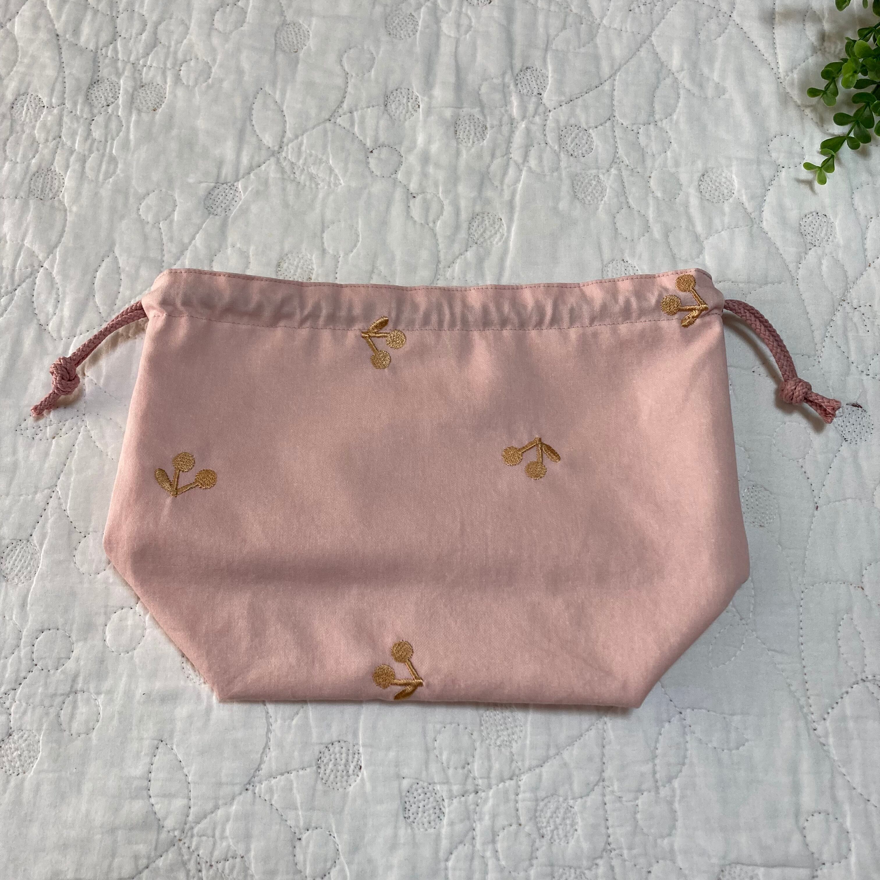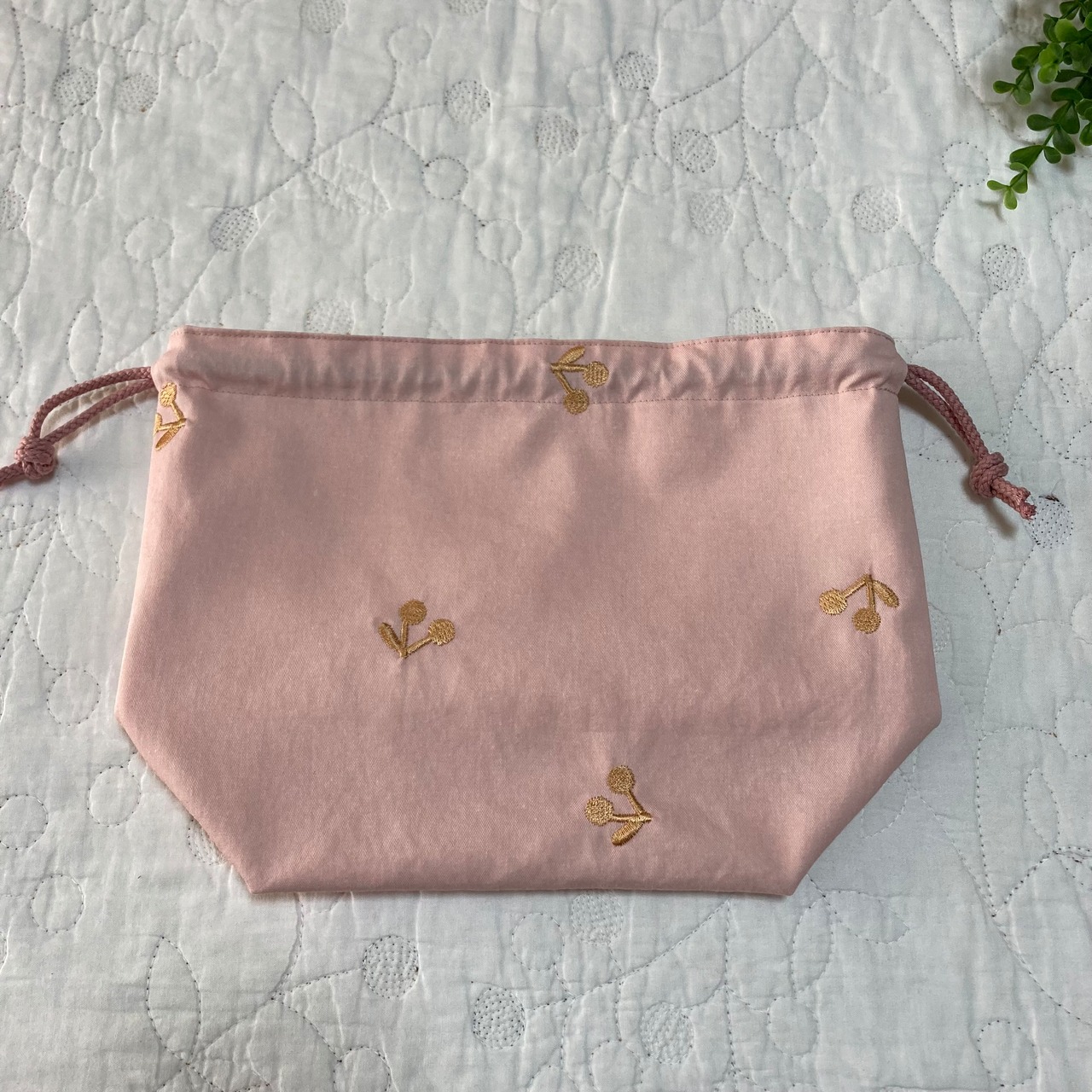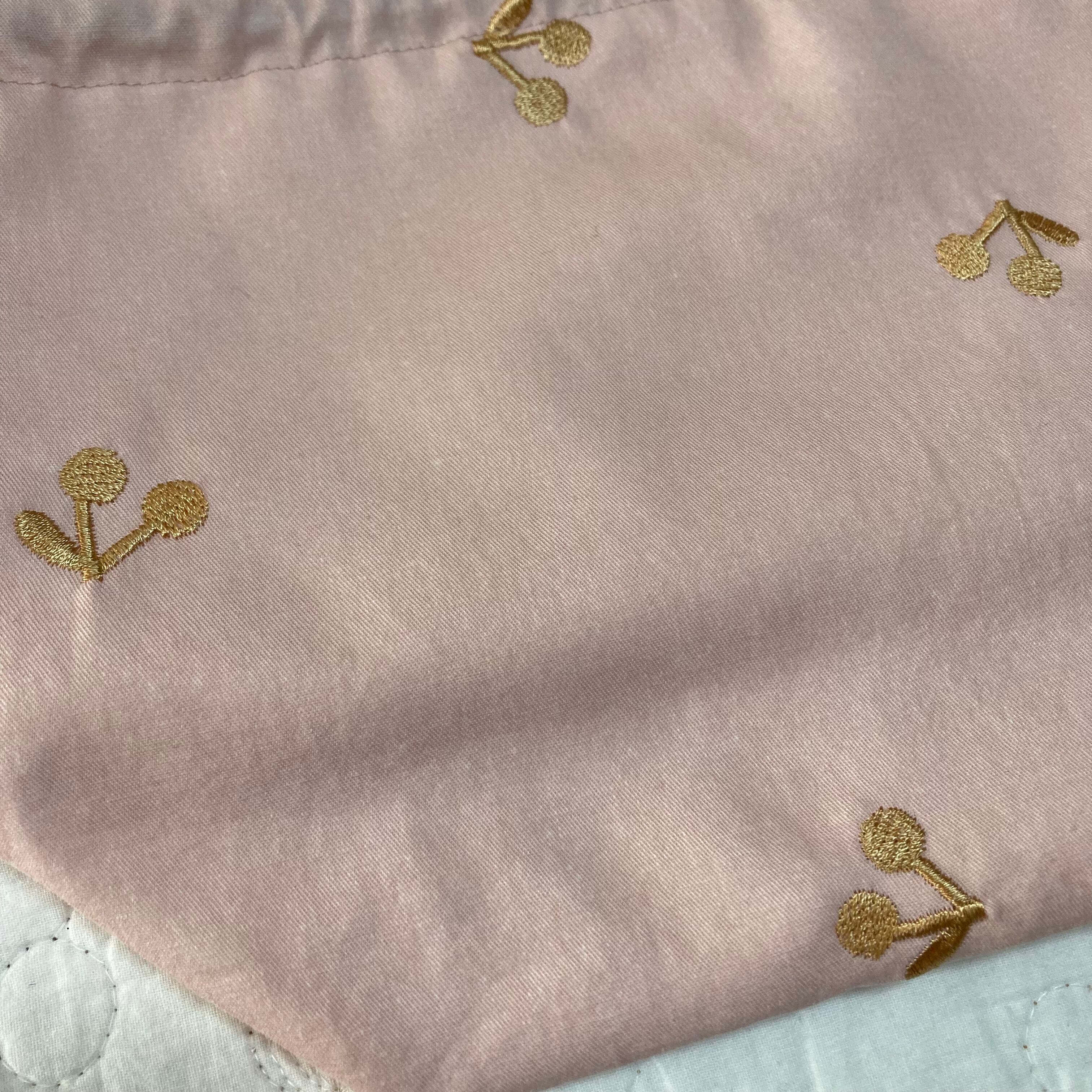表地)さくらんぼ刺繍 ピンク 綿100%