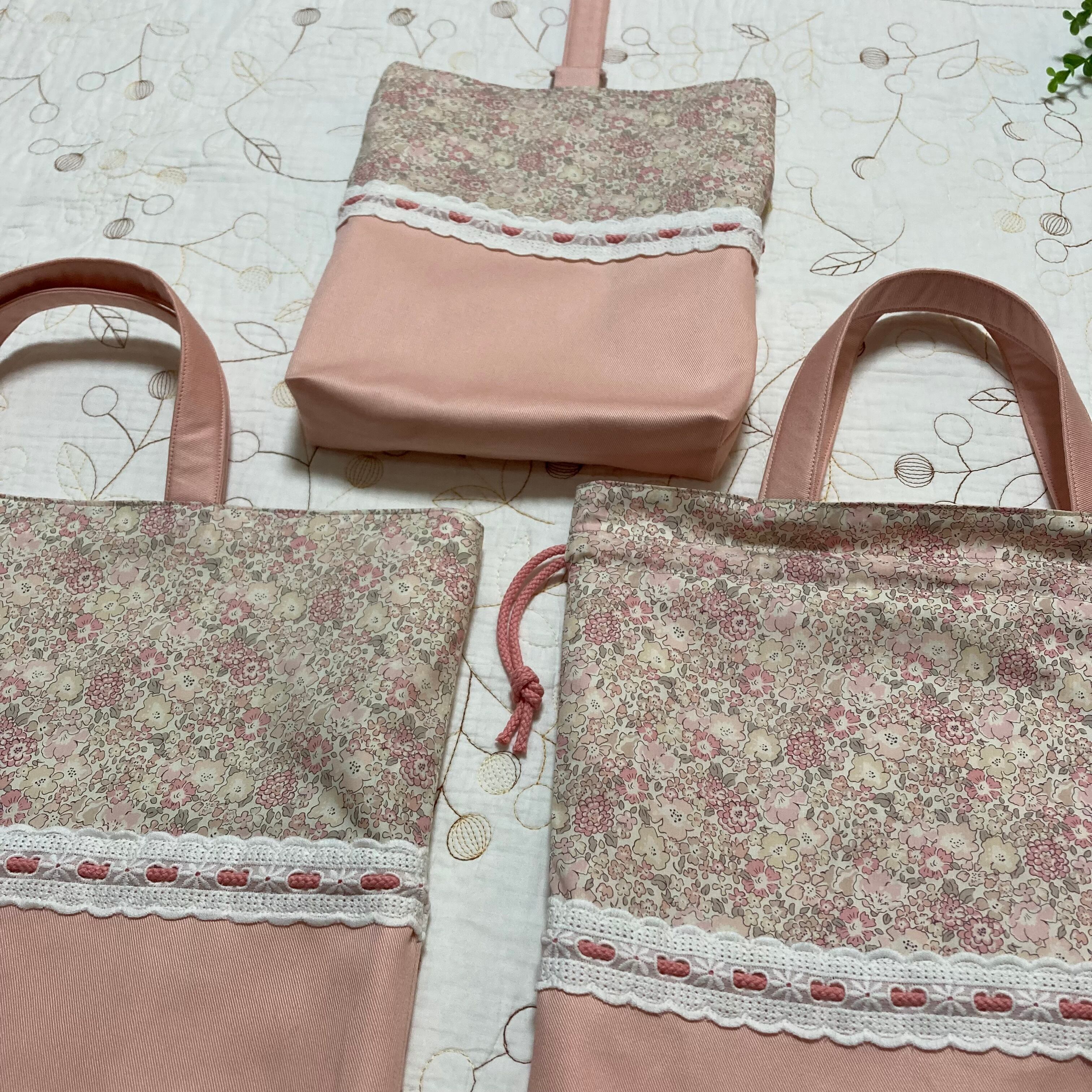 リバティ レッスンバッグ お着替え袋 靴袋 3点 ミシェル ニュアンスピンク チビチビキッチン 入園入学準備