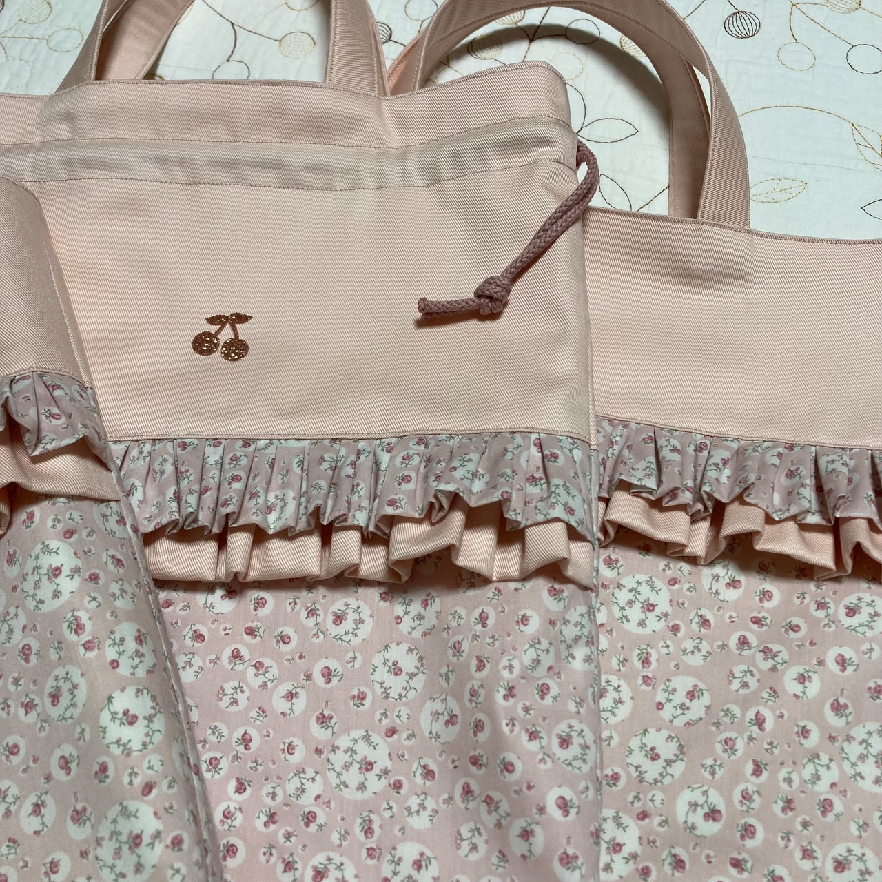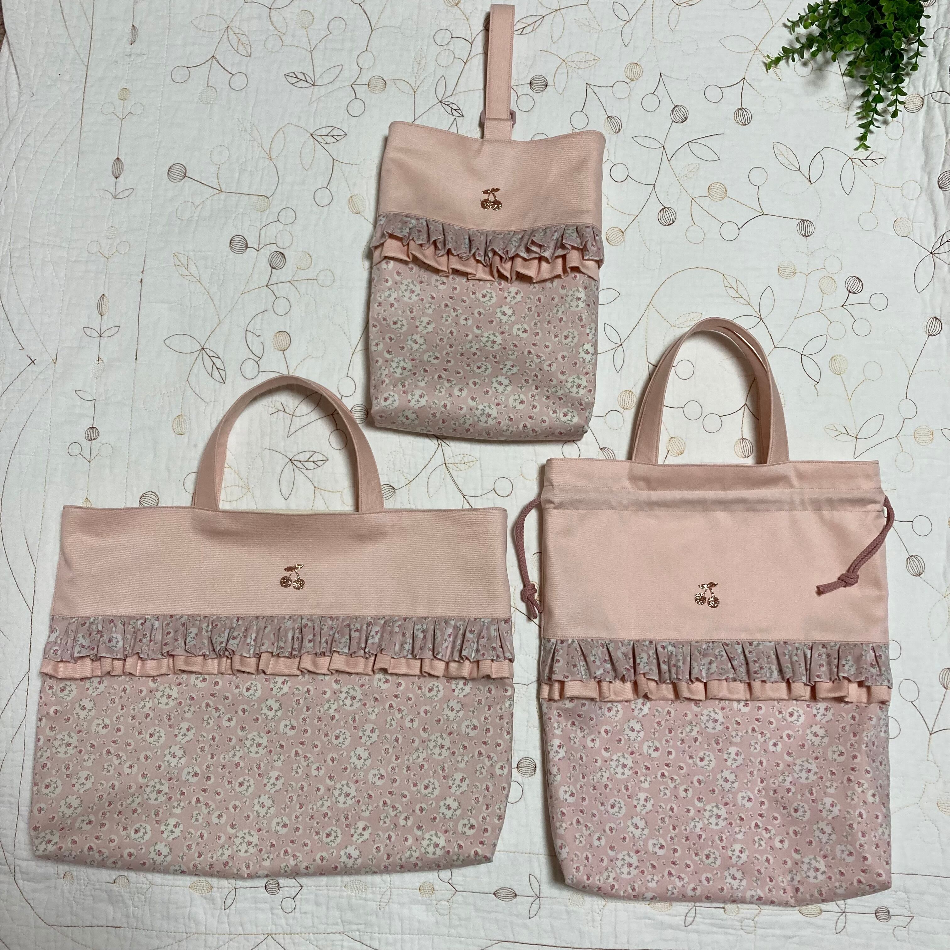 リバティ ハンドメイド ジョアンナ いちごラテ 絵本袋 手提げ袋 上靴袋 入園入学3点セット