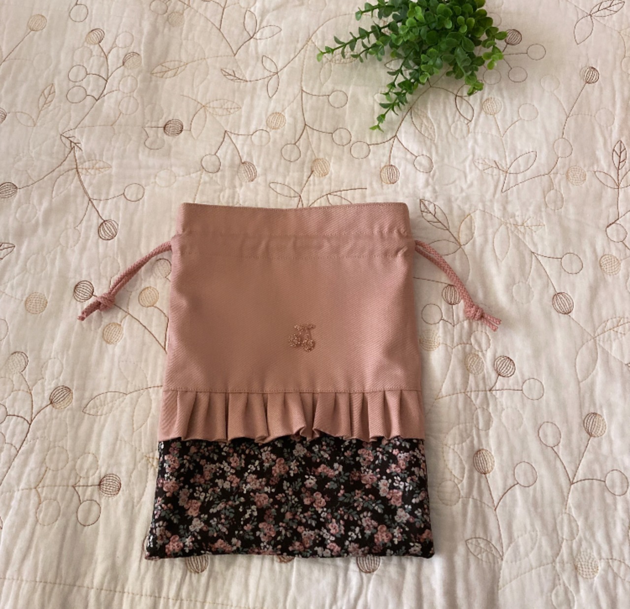 *巾着袋を作製しました。給食袋、コップ袋にいかがでしょうか?