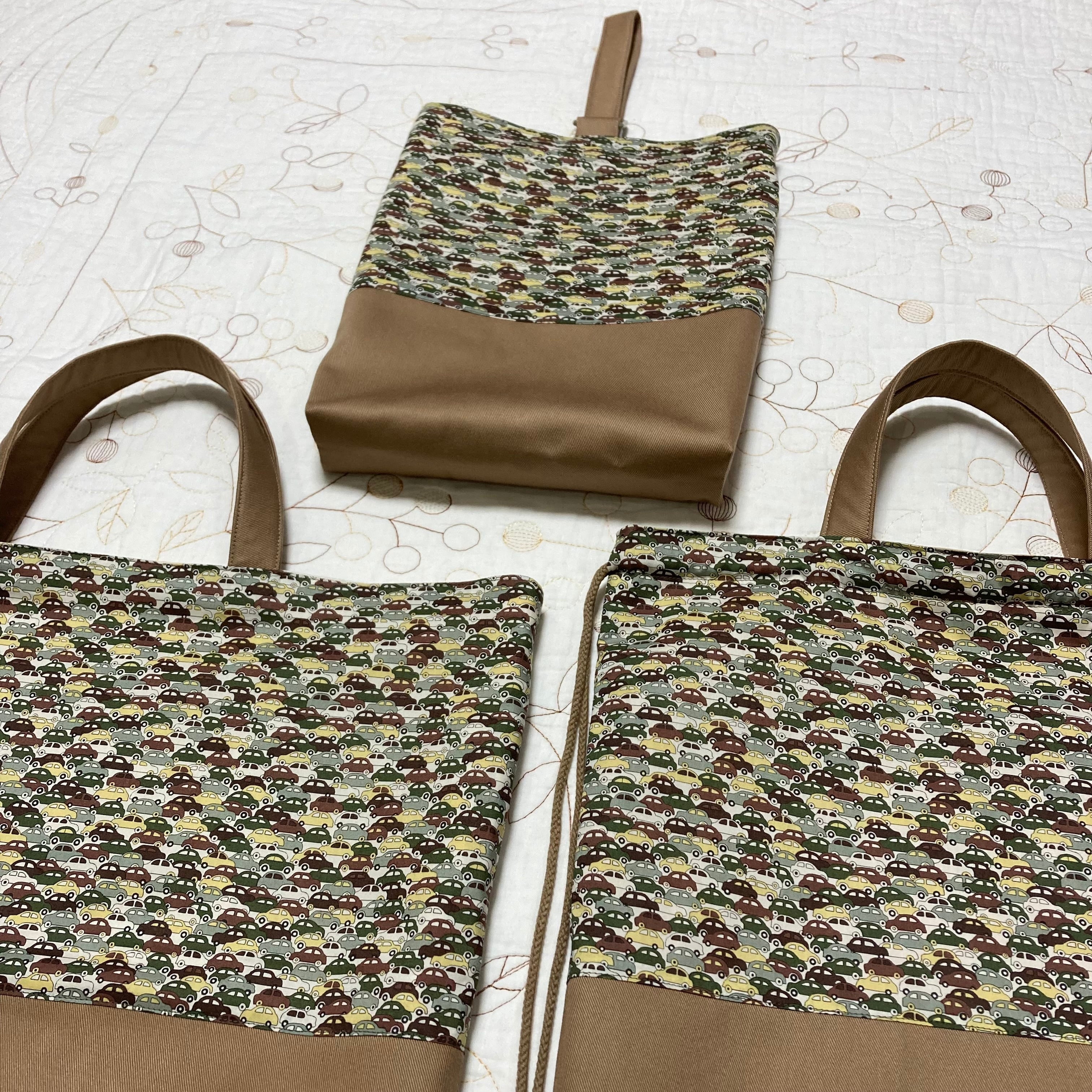 入園入学グッズ 3点 リバティ カーズ 絵本袋 ナップサック 靴袋 入園入学セット ハンドメイド