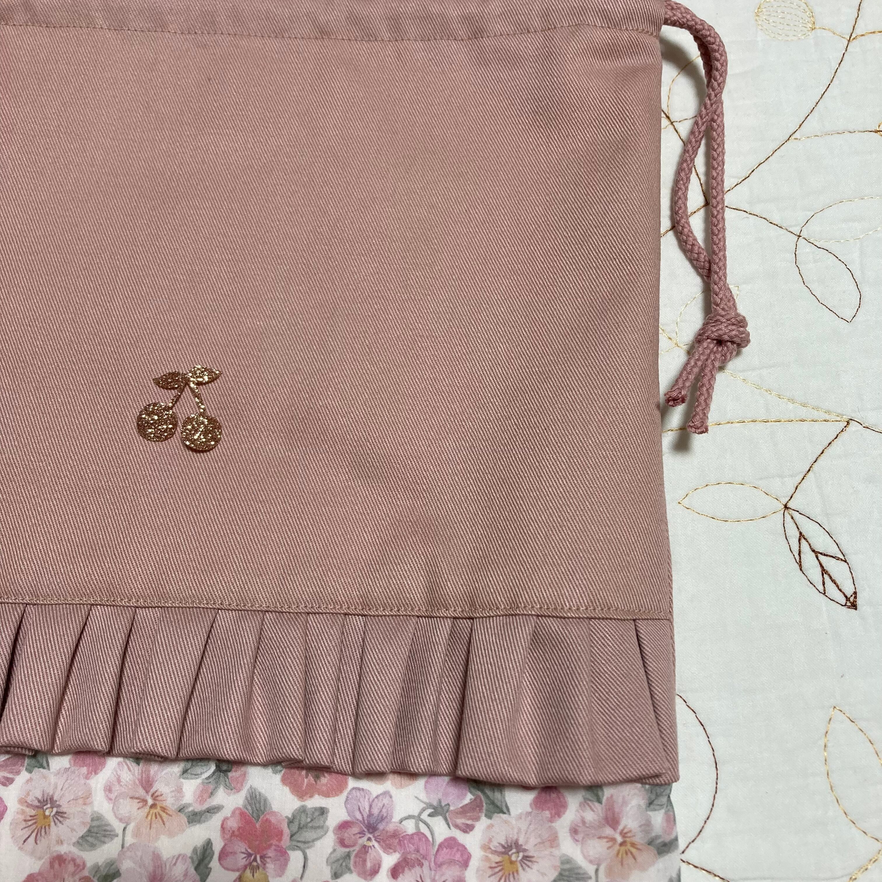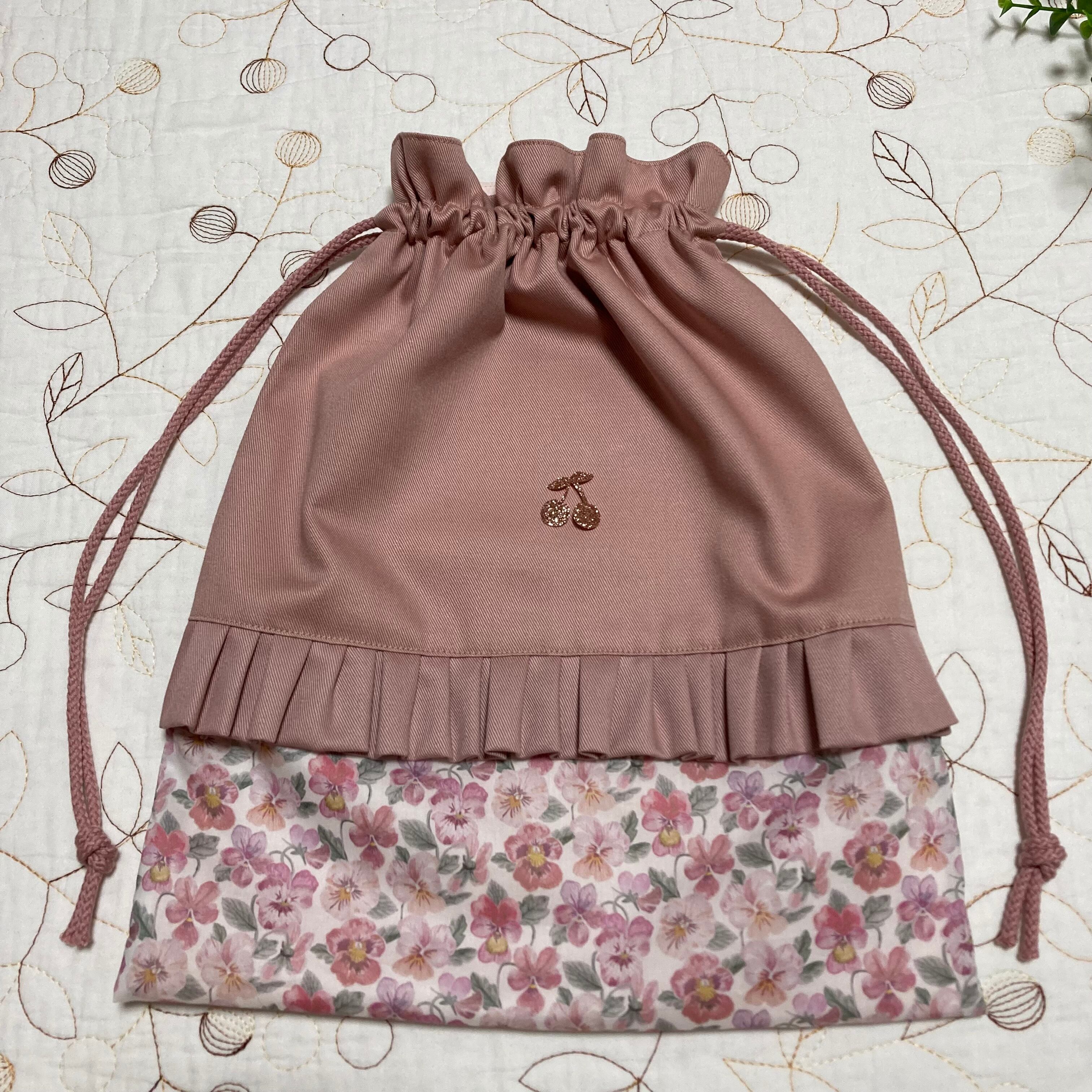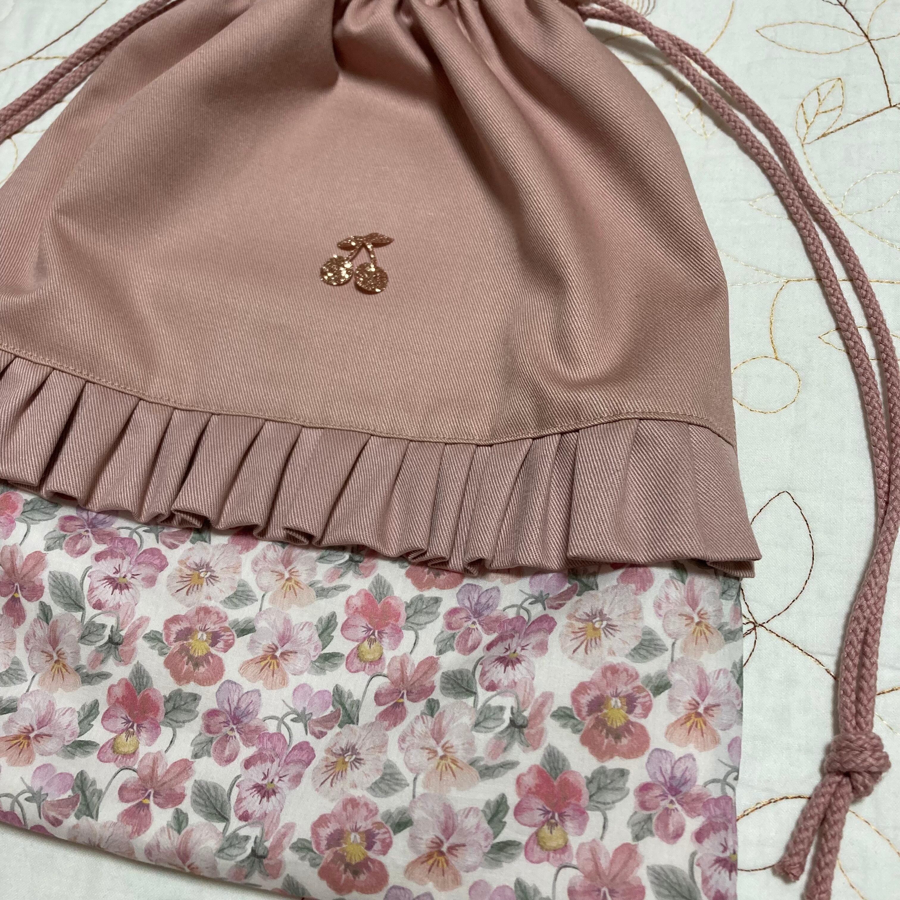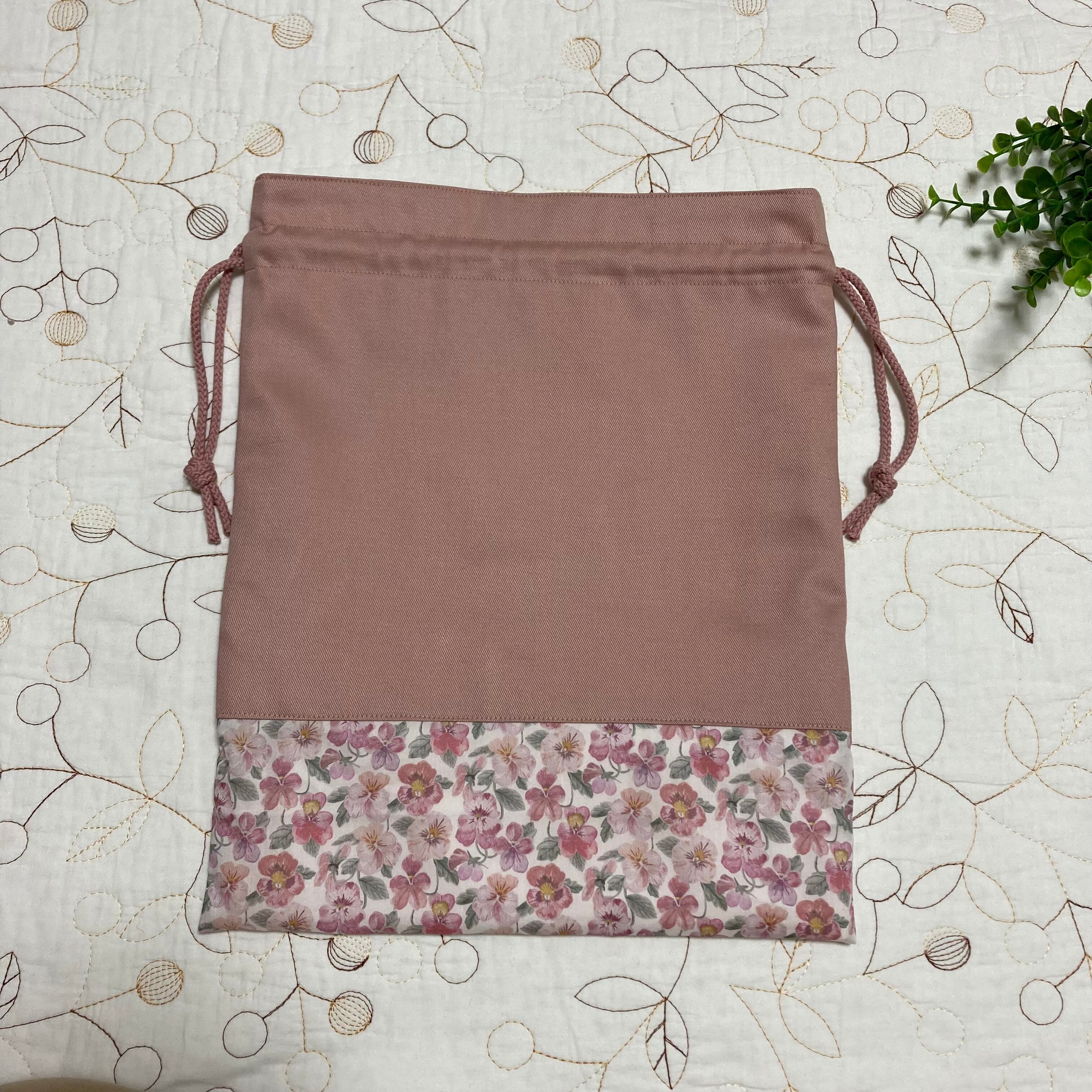 *リバティ タナローン シンクオブミー(ユザワヤ)とツイル ピンクラベンダーで巾着袋を作製しました。
