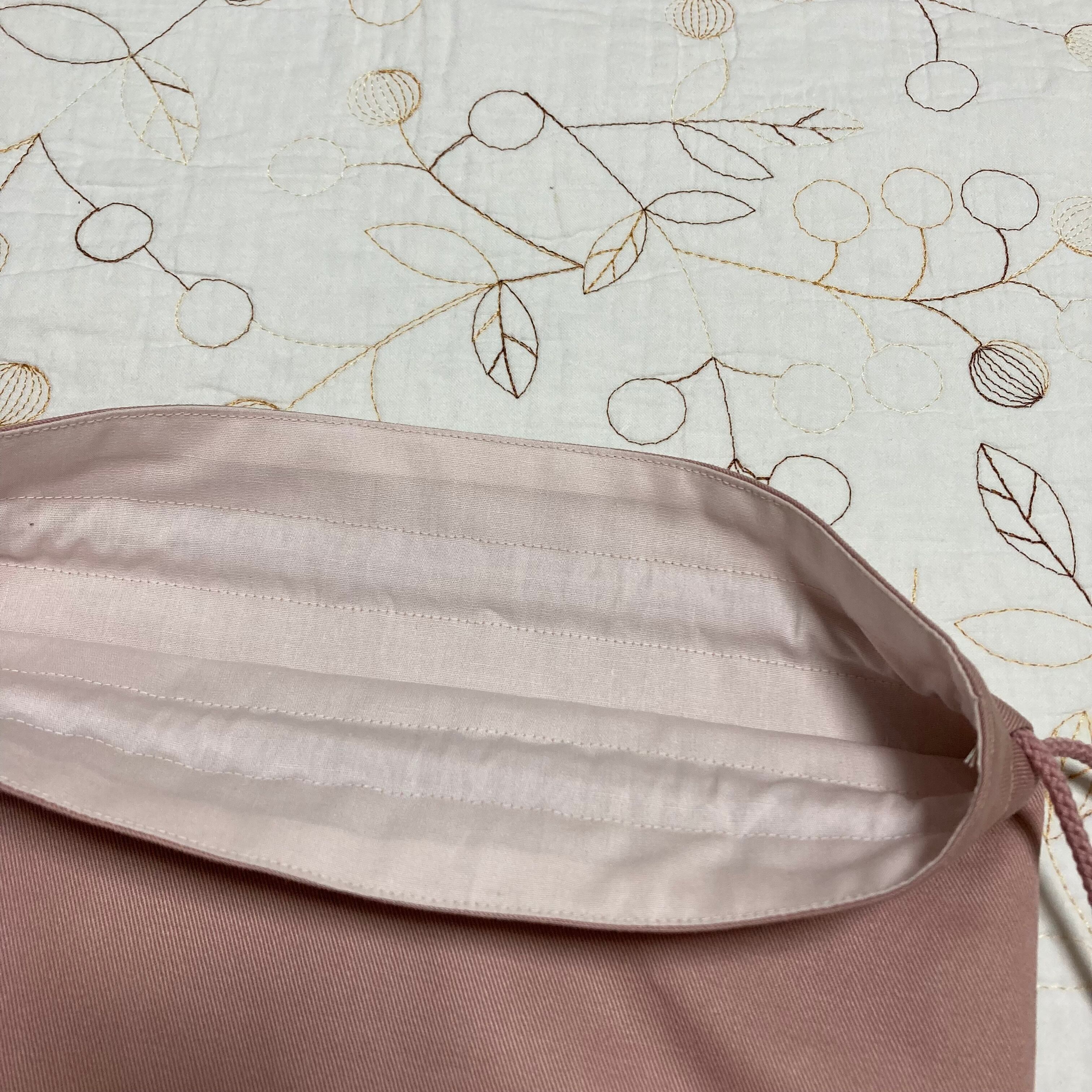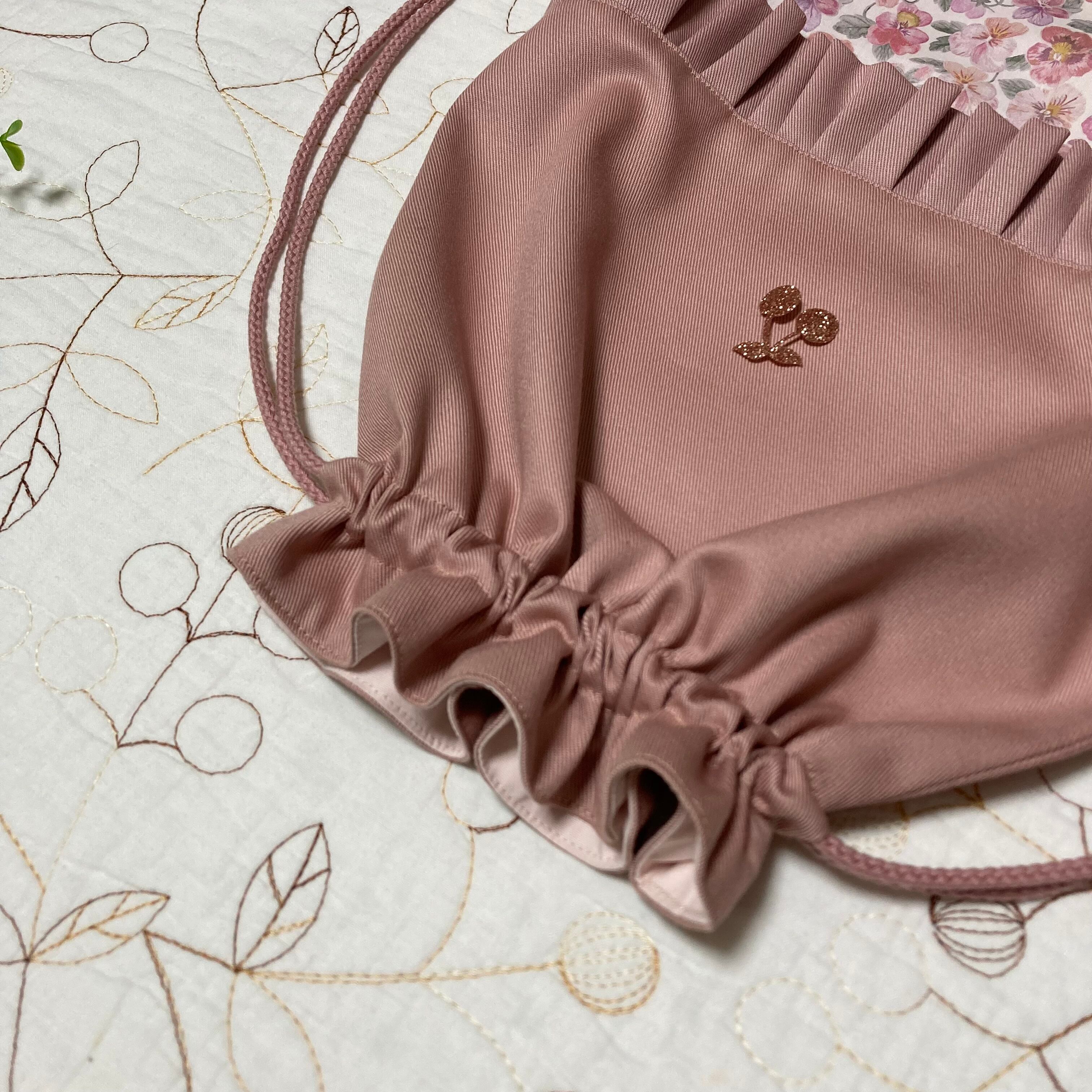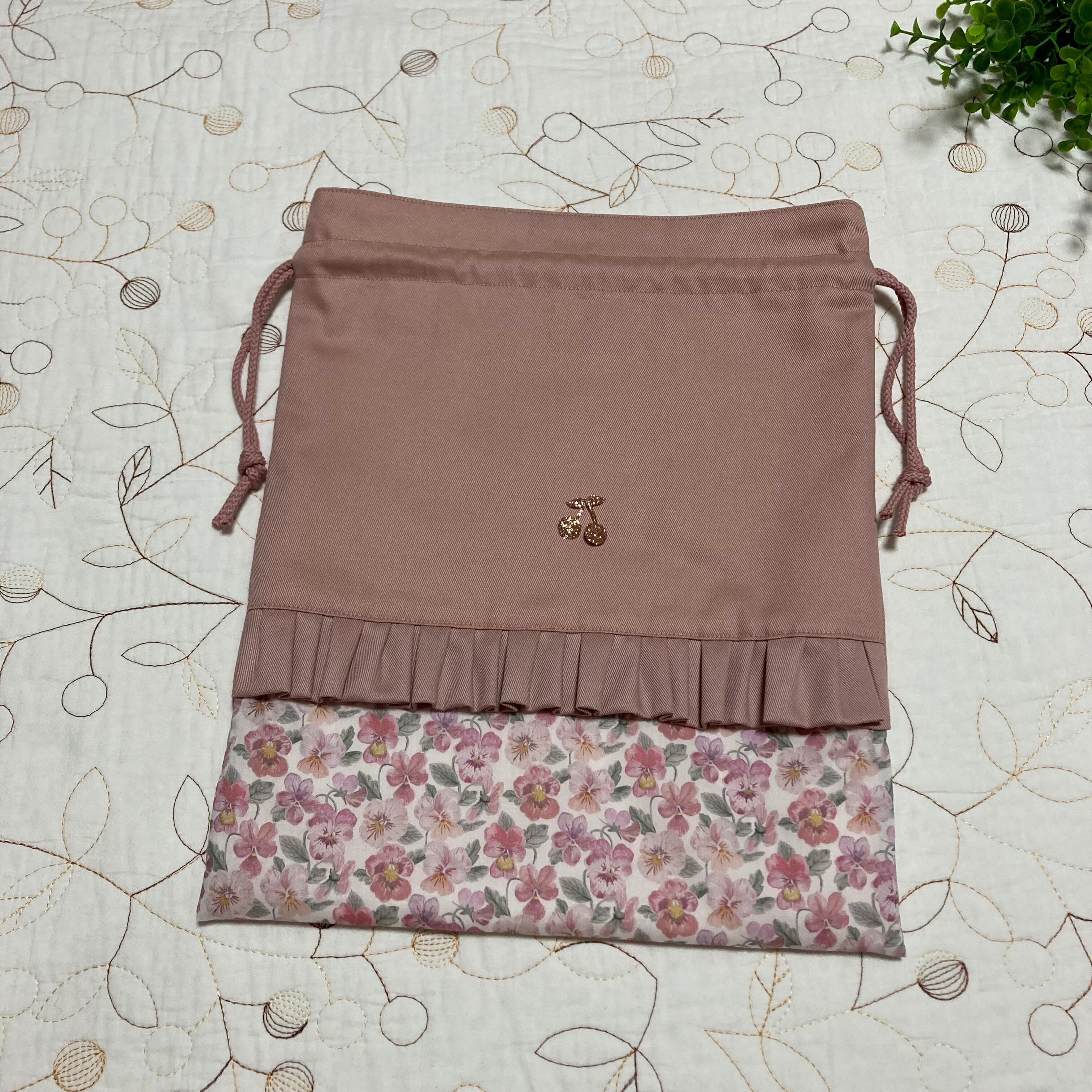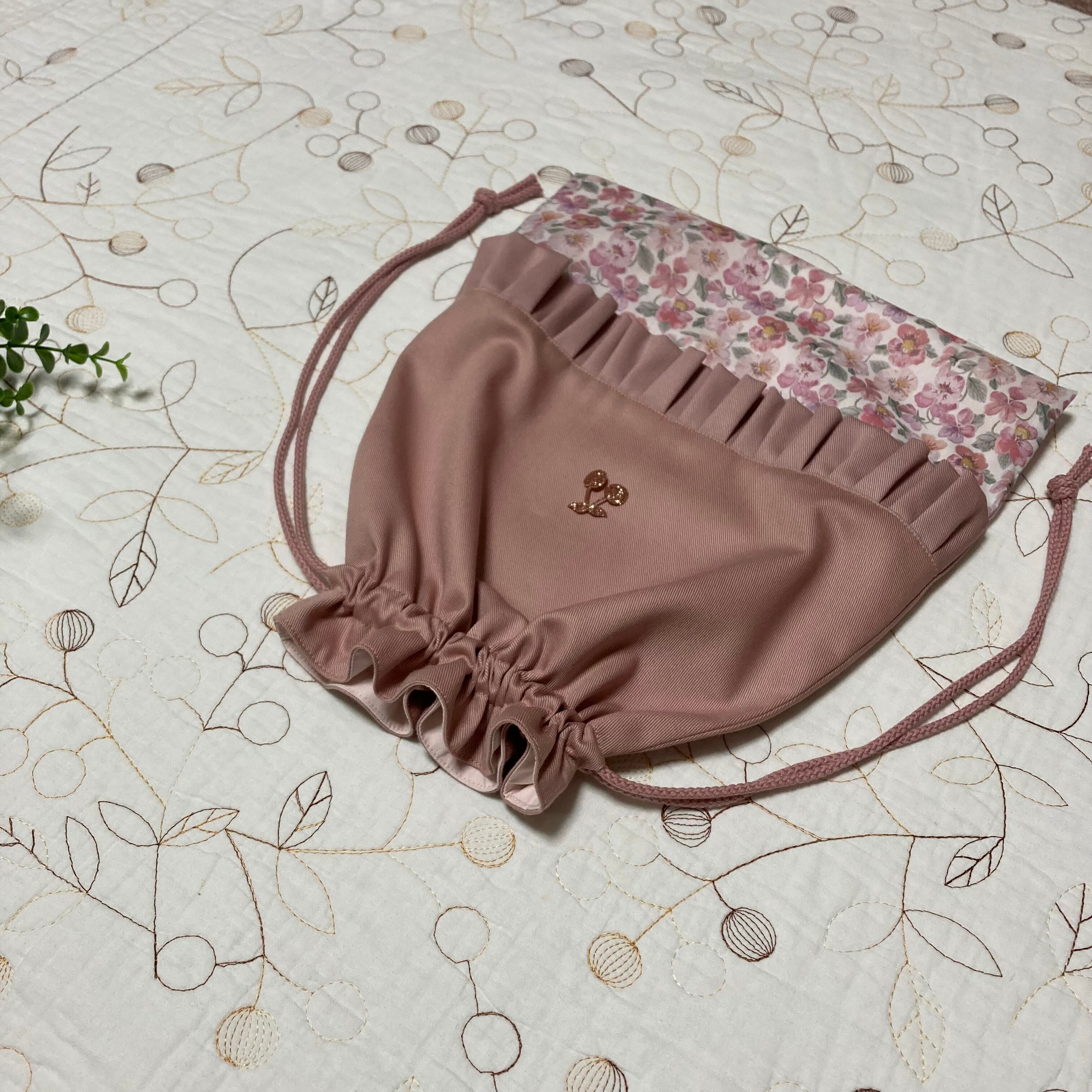 *リバティ タナローン シンクオブミー(ユザワヤ)とツイル ピンクラベンダーで巾着袋を作製しました。