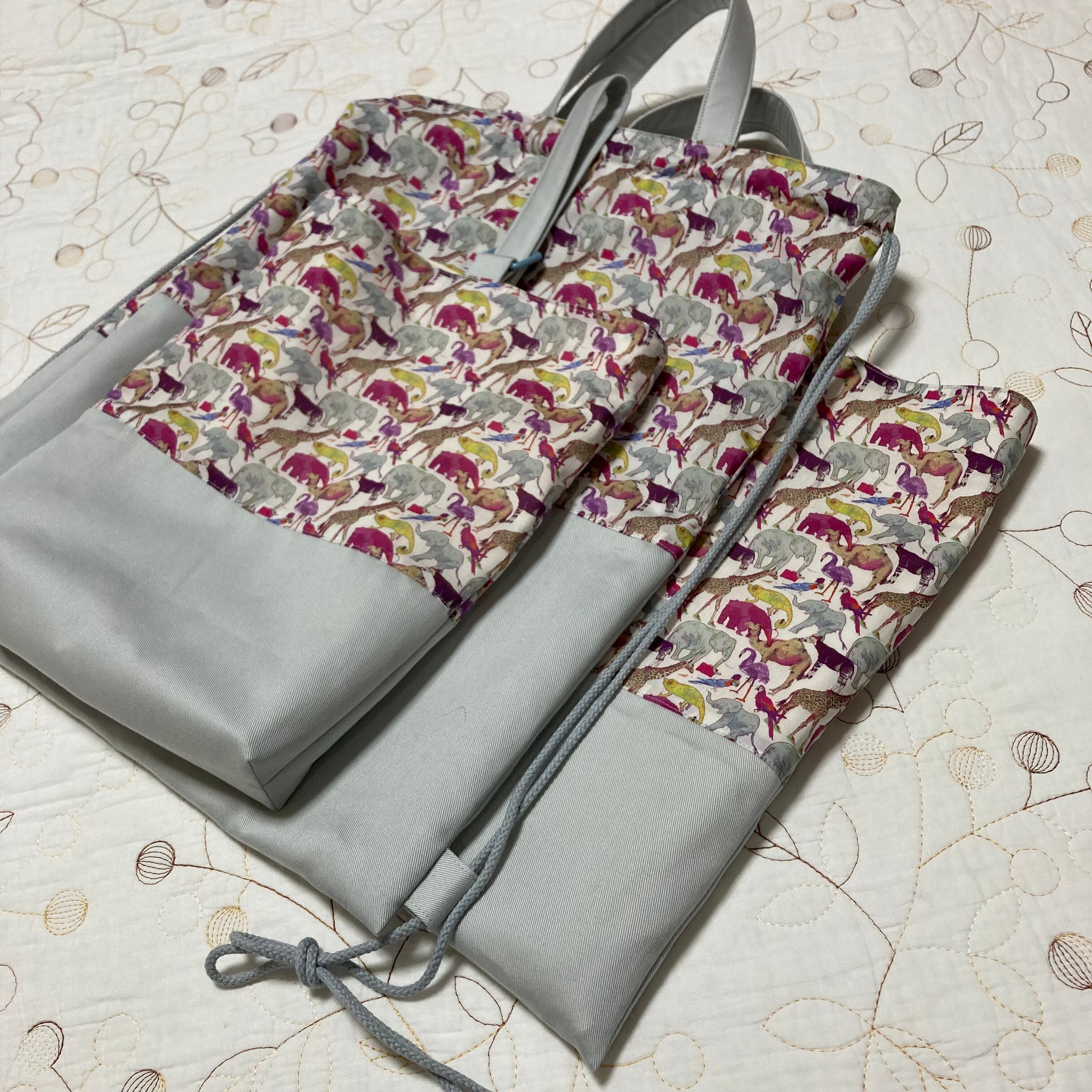 リバティ キューフォーザズー 入園入学3点セット レッスンバッグ ナップサック(体操服袋) 上履き入れ ハンドメイド 入園入学準備