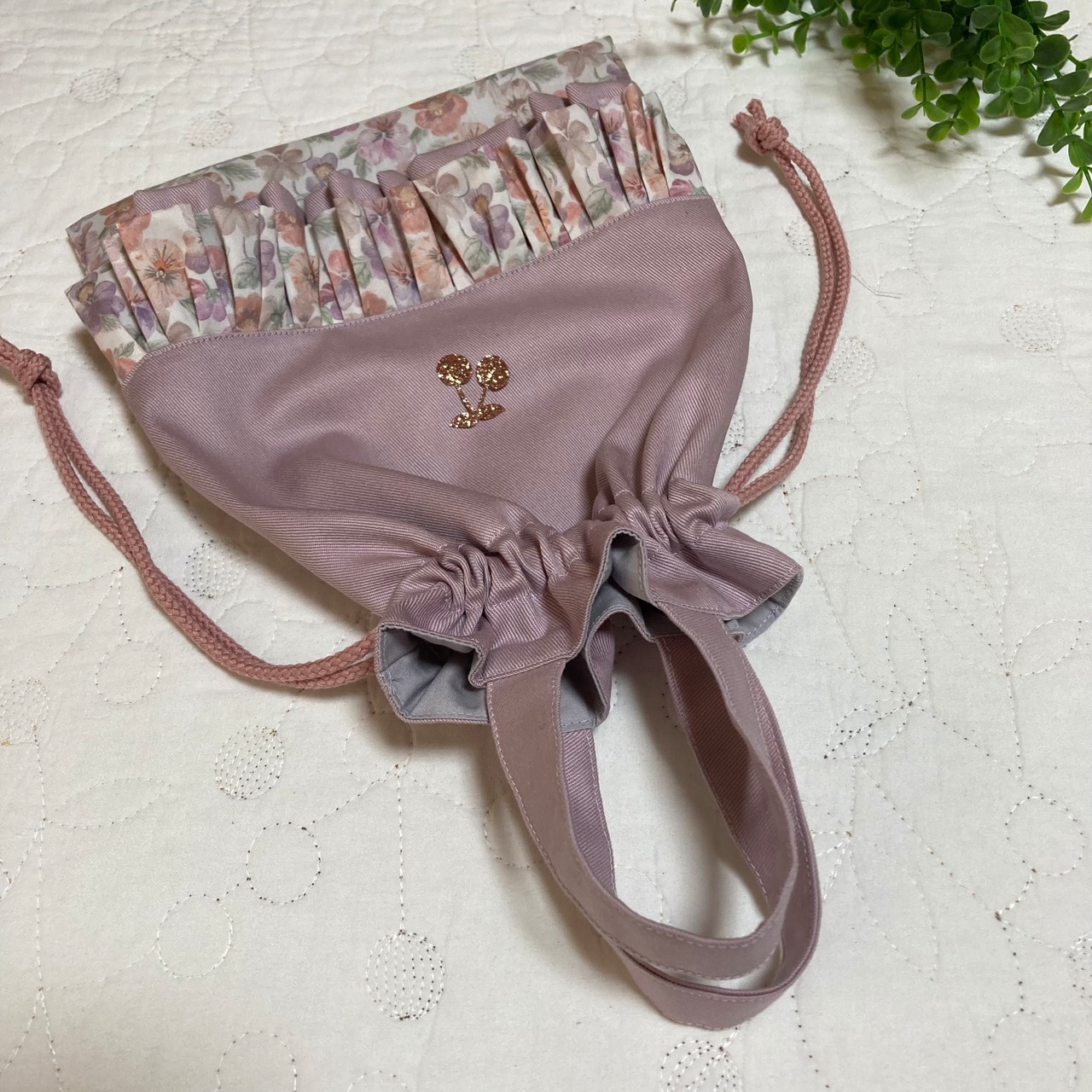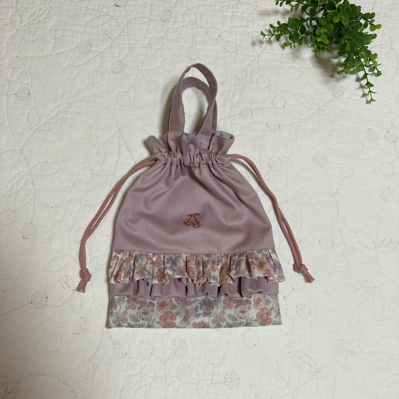 持ち手付き巾着袋