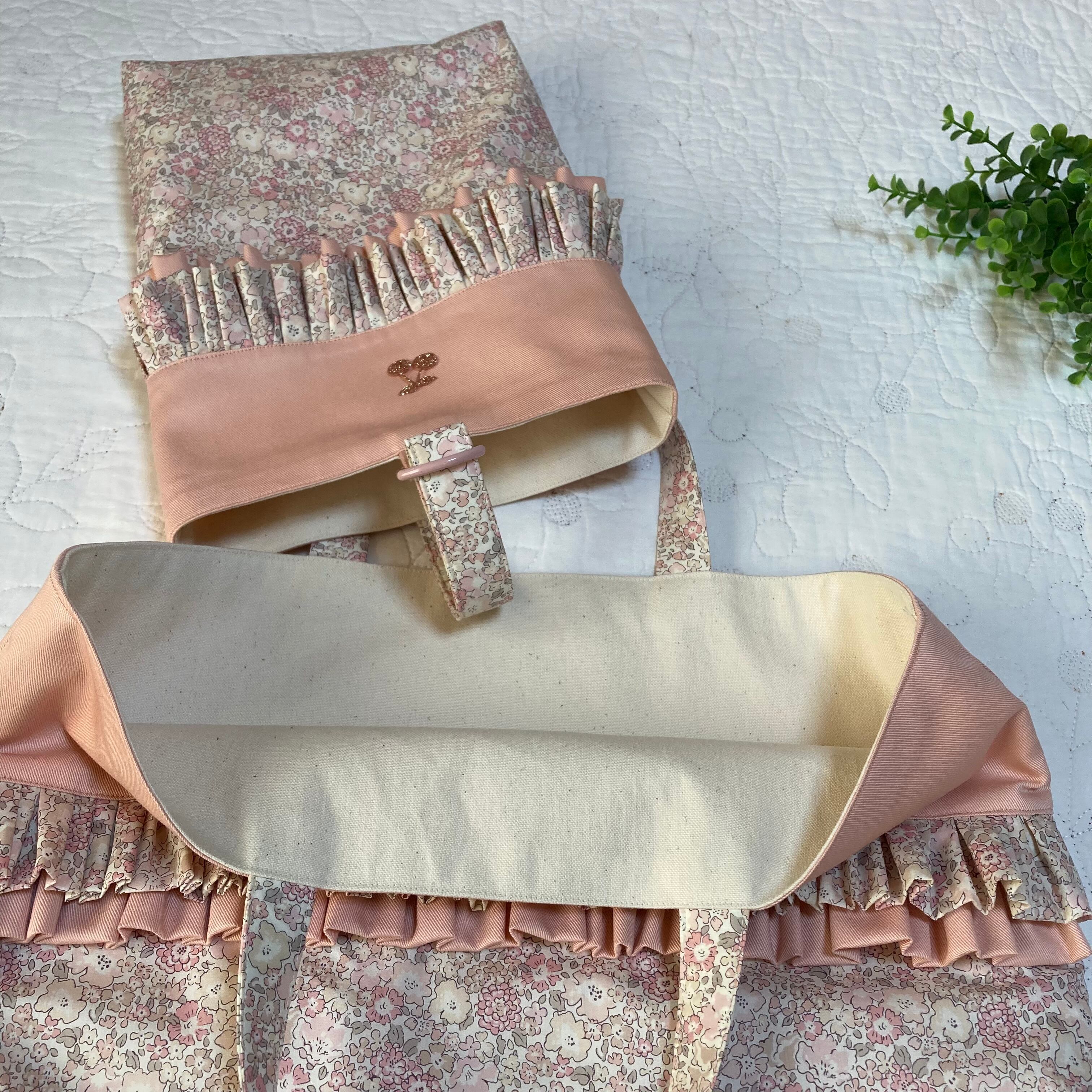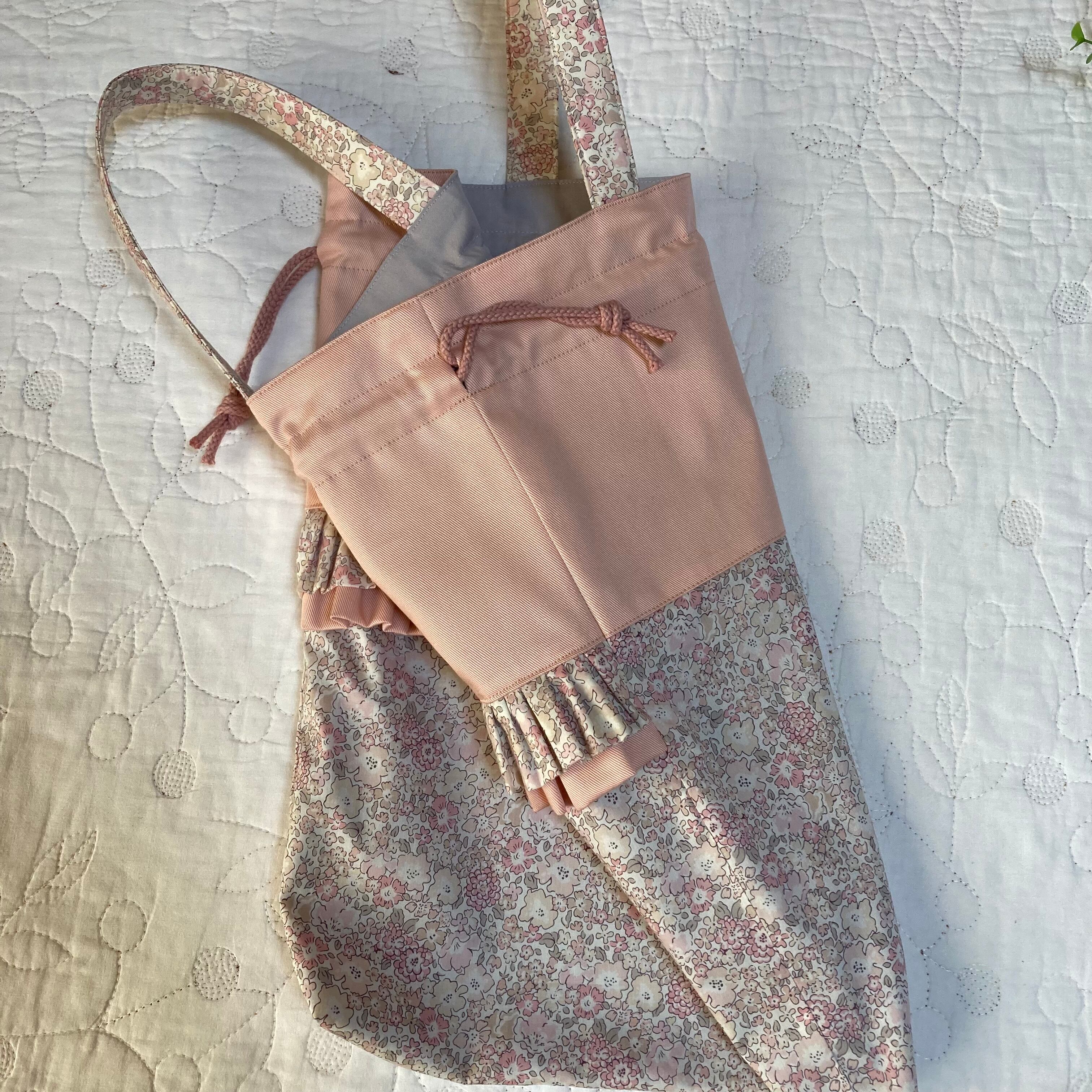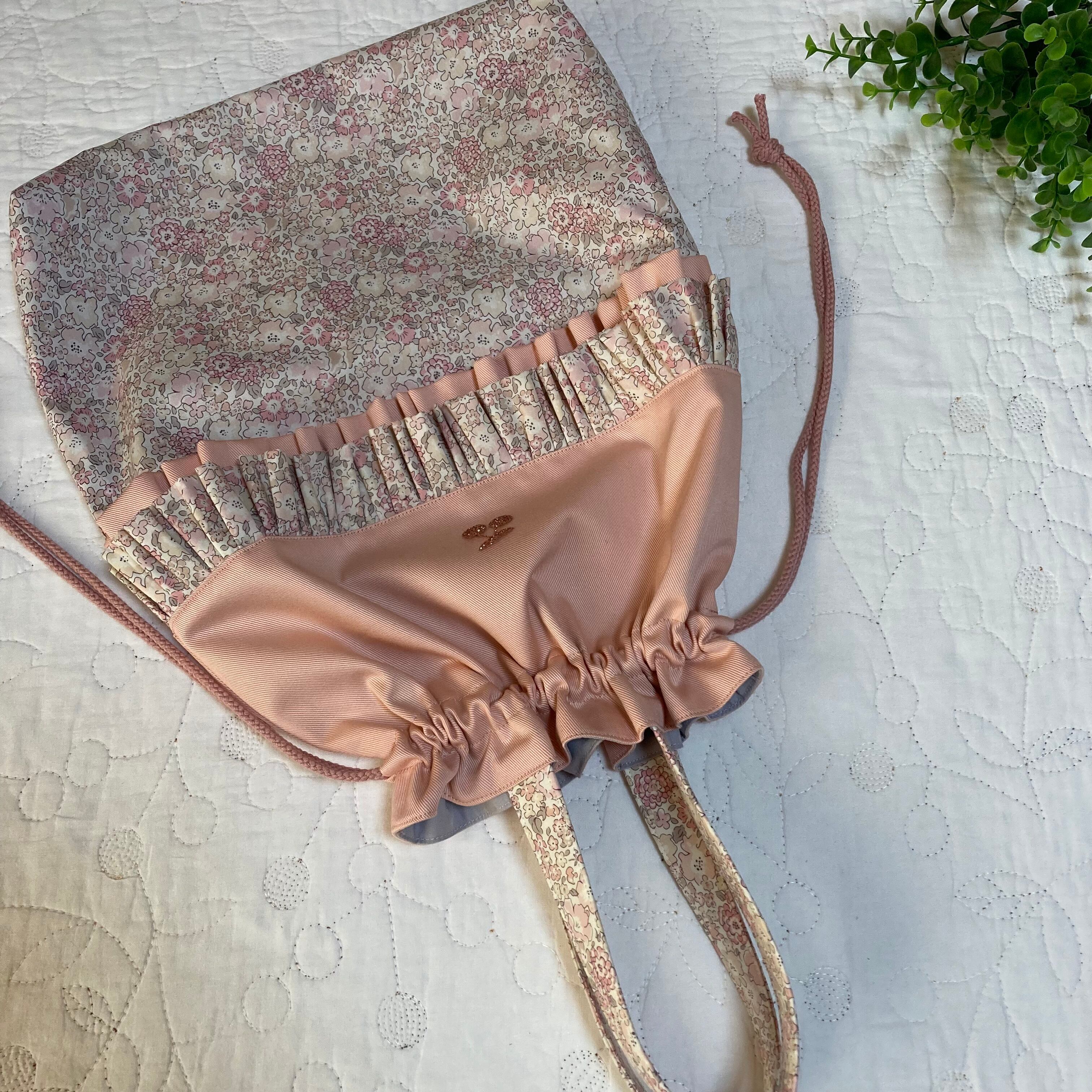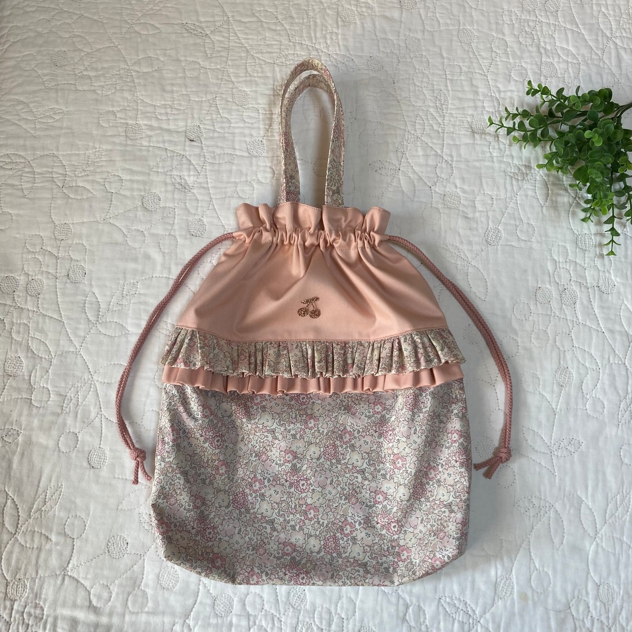 持ち手付き巾着 縦 37cm 片面フリル付き