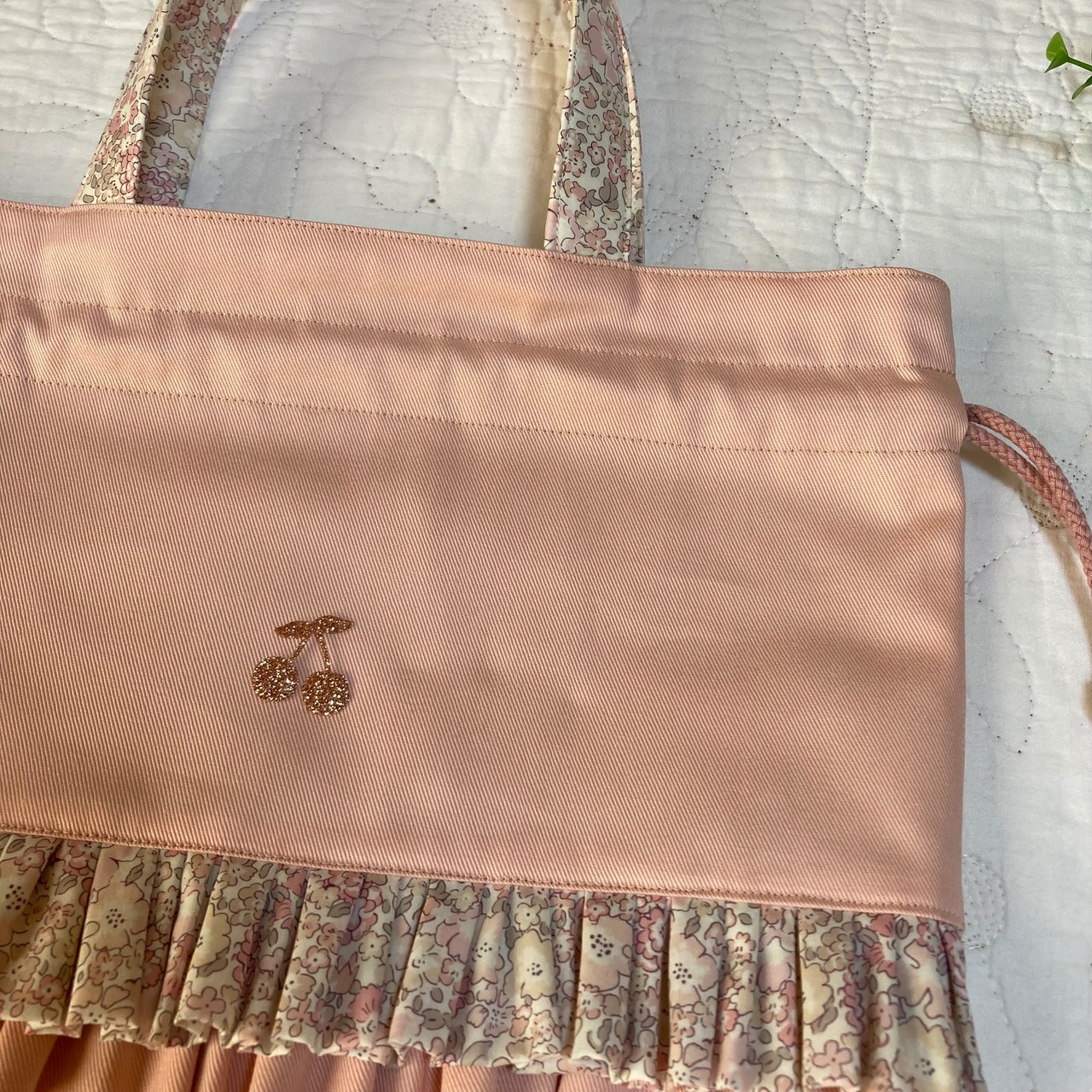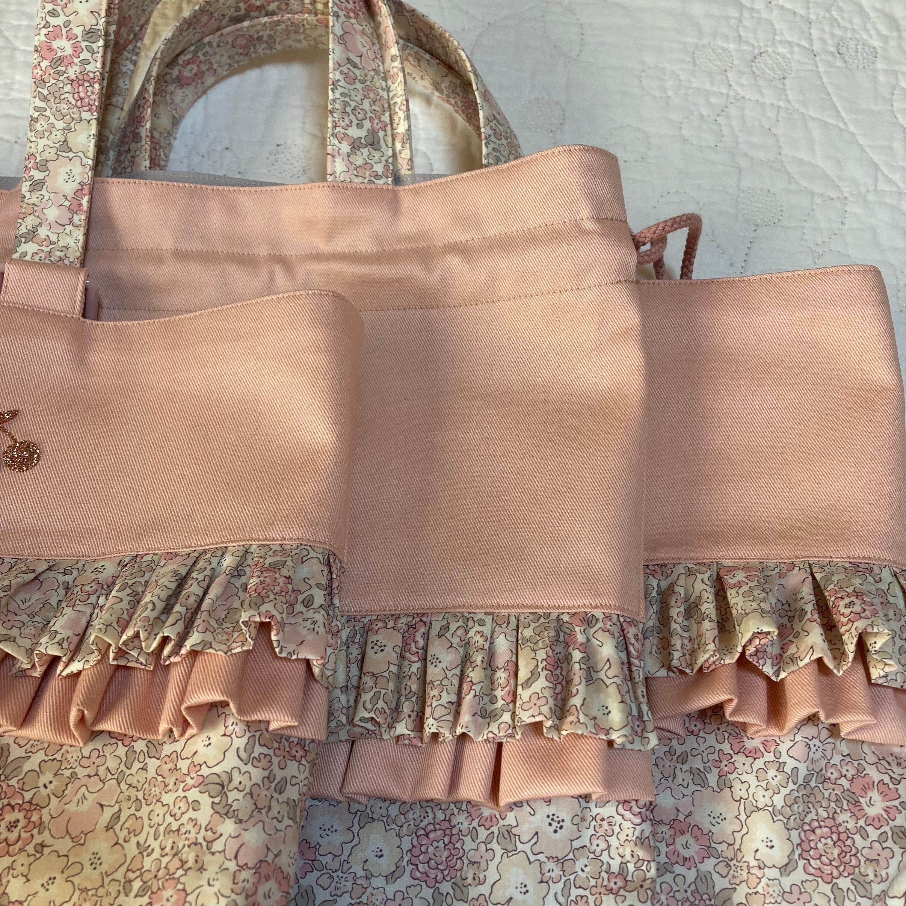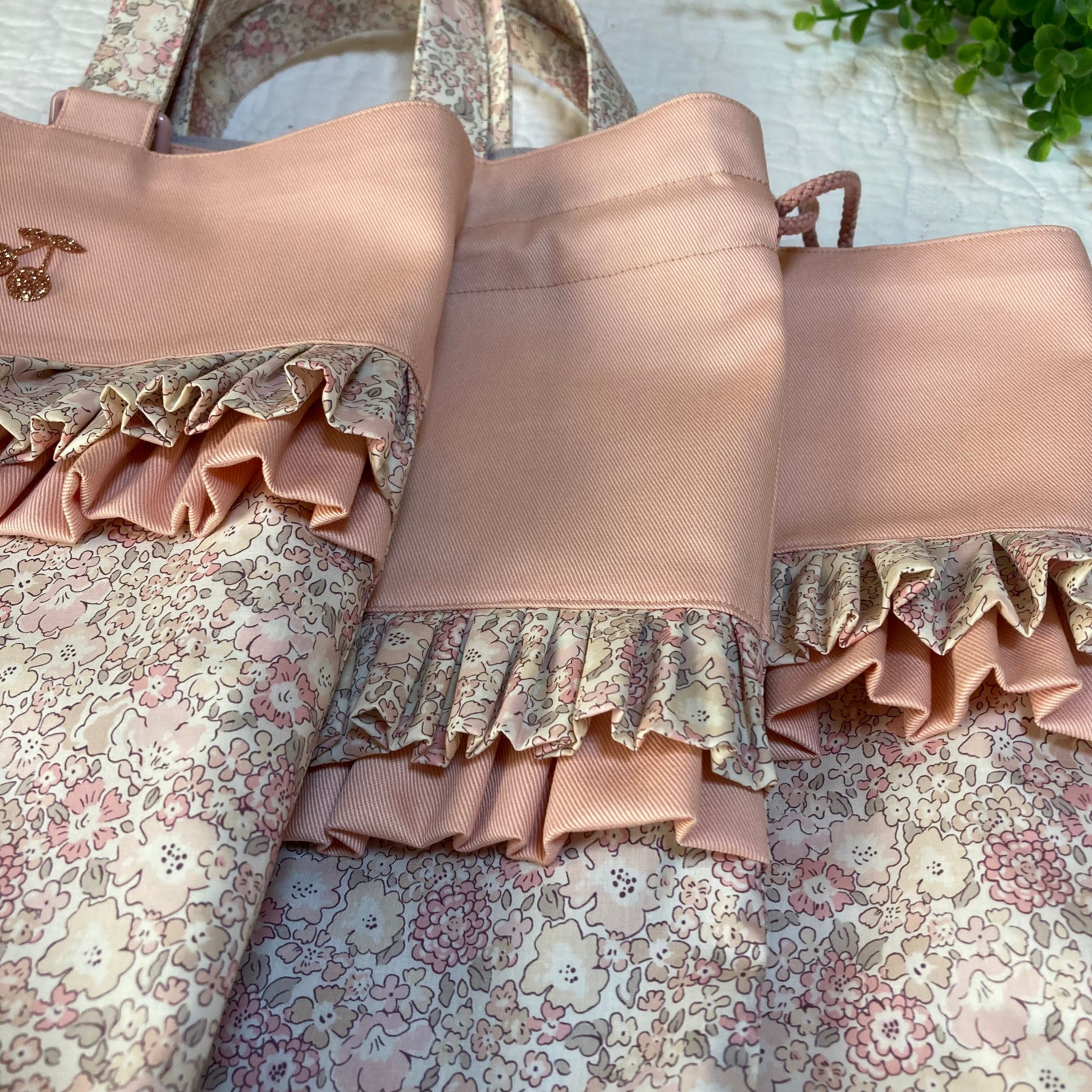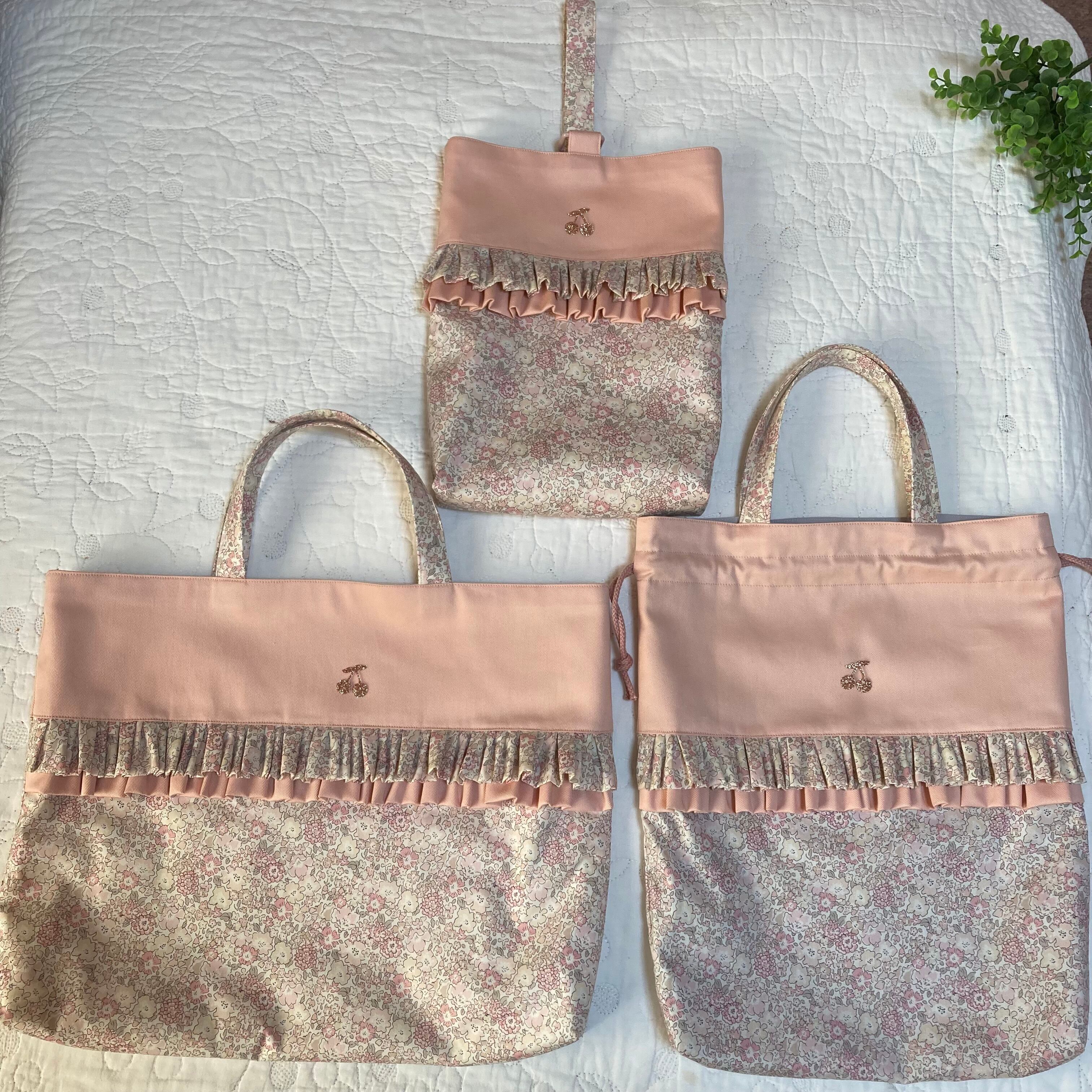 入園入学グッズ ハンドメイド 3点 ミシェル ニュアンスピンク チビチビキッチン 絵本バッグ お着替え袋 上靴袋 入園入学準備グッズ
