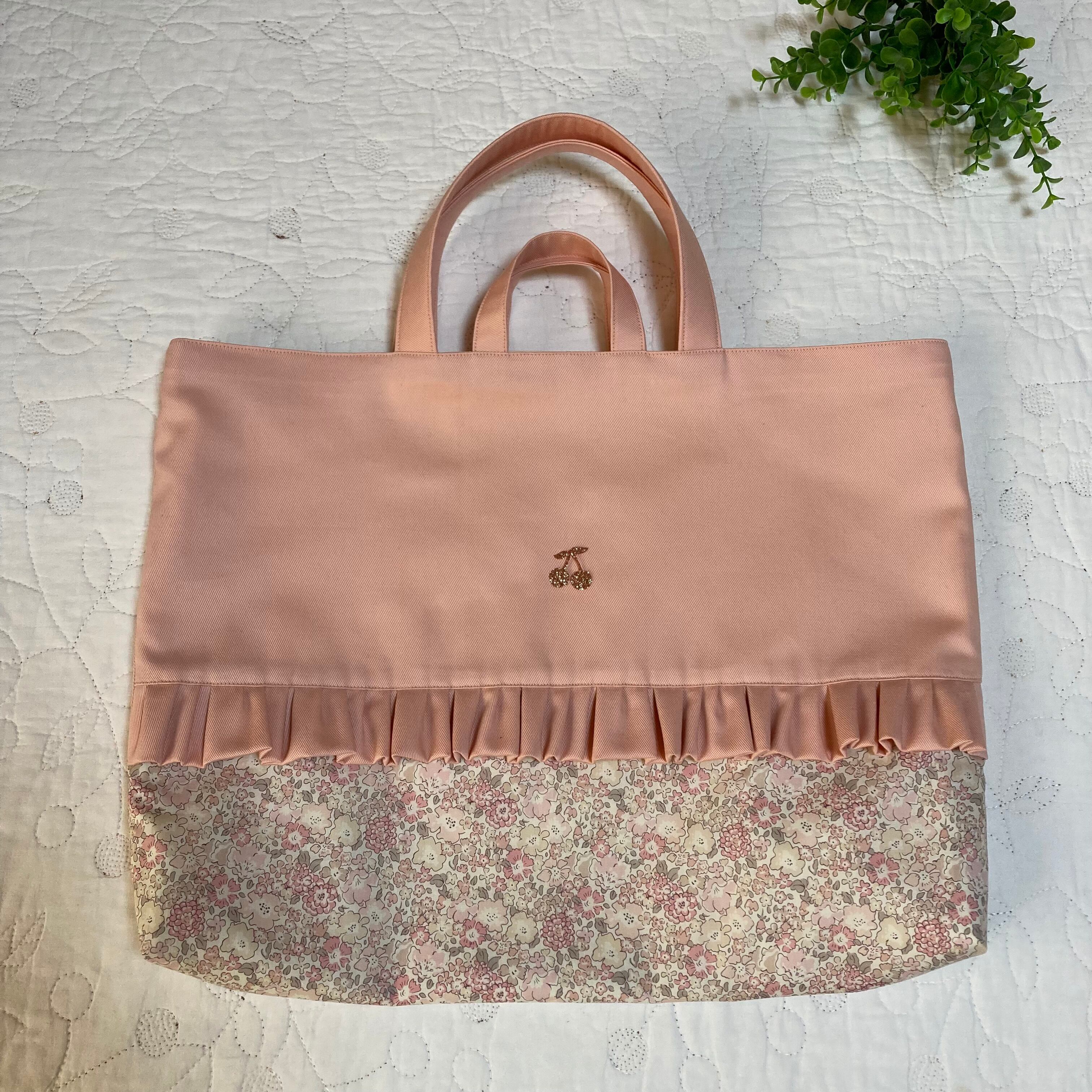 レッスンバッグ 絵本袋 通園バッグ ループ付き ハンドメイド ミシェル ニュアンスピンク