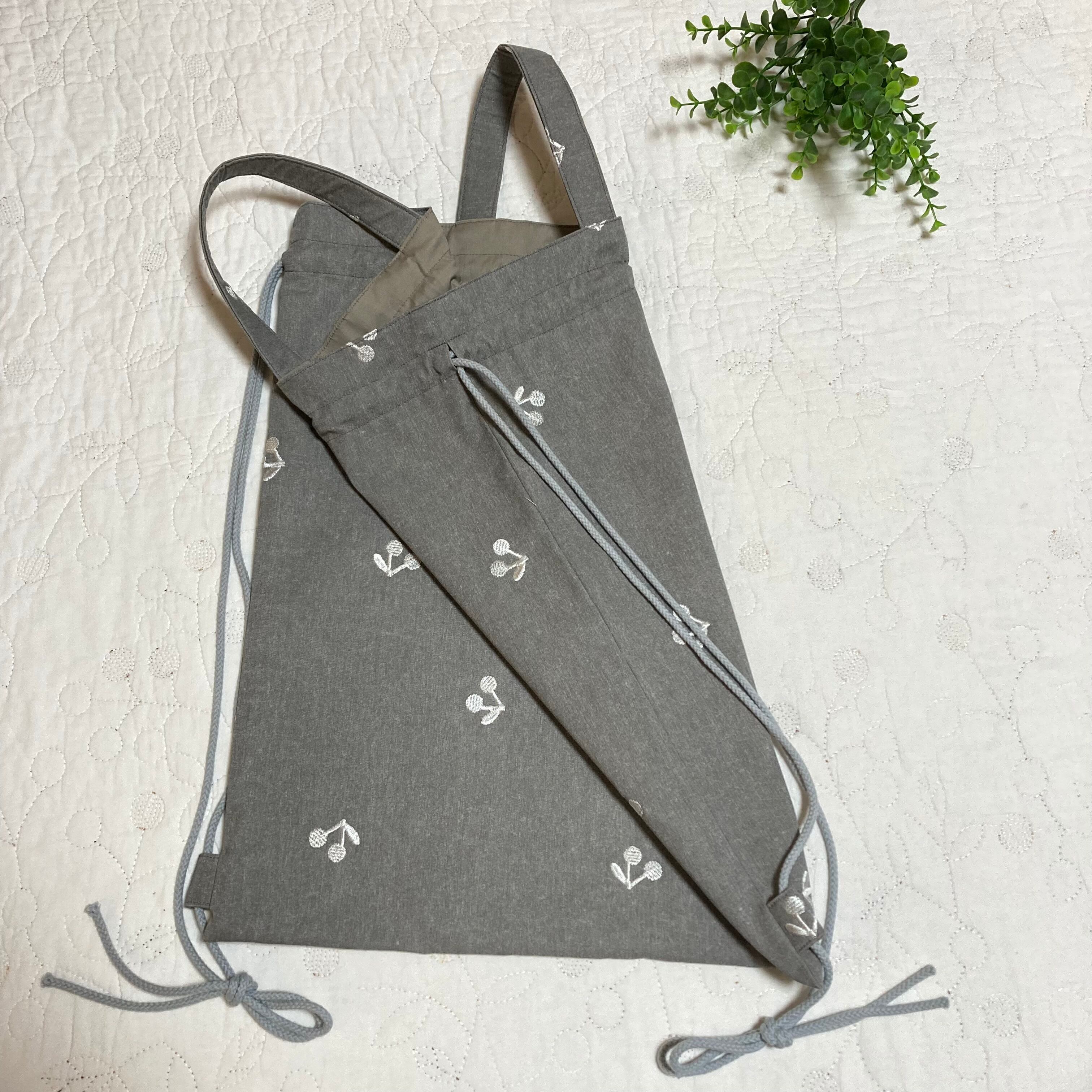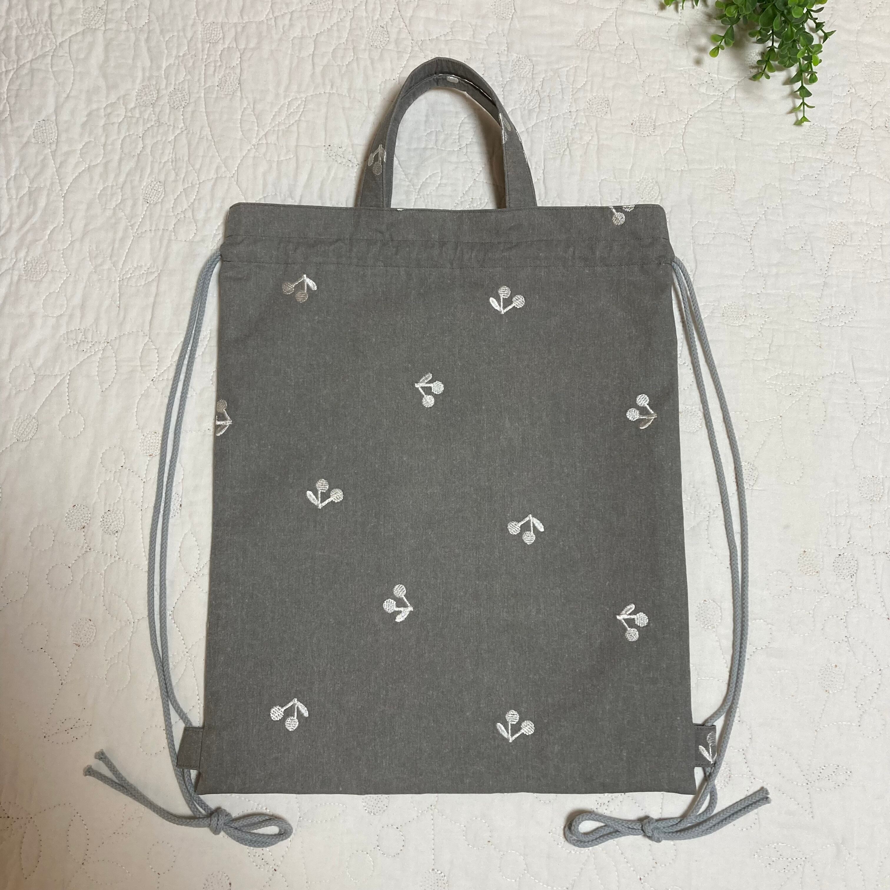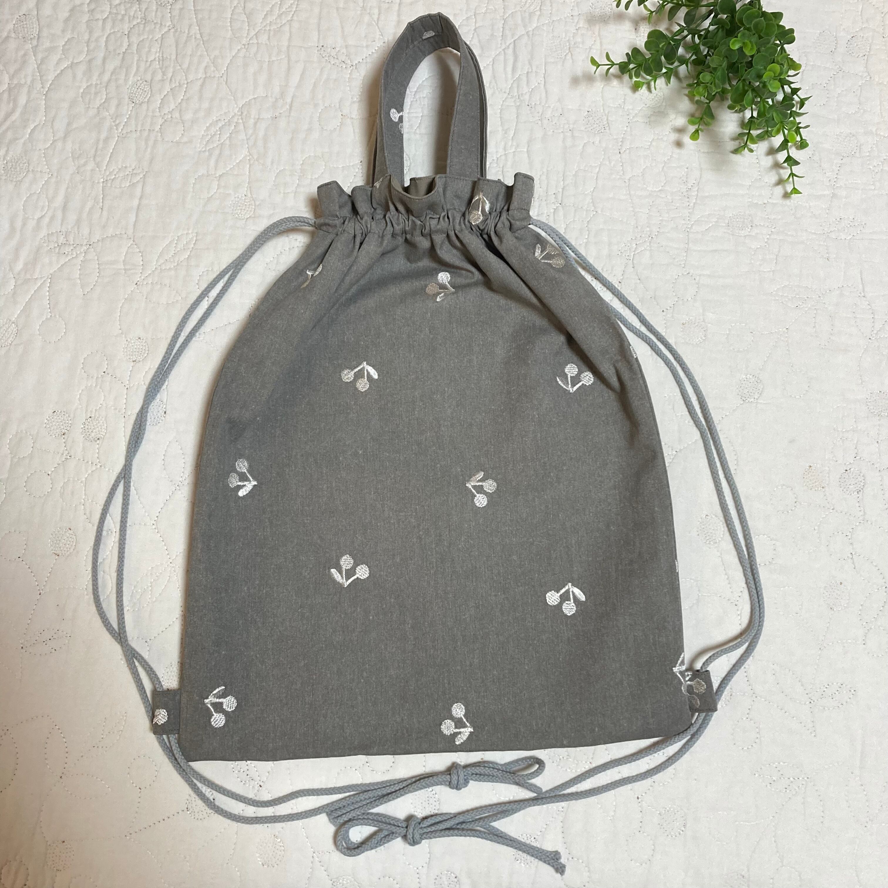 ナップサック お着替え袋 体操服入れ ハンドメイド さくらんぼ刺繍生地 入学