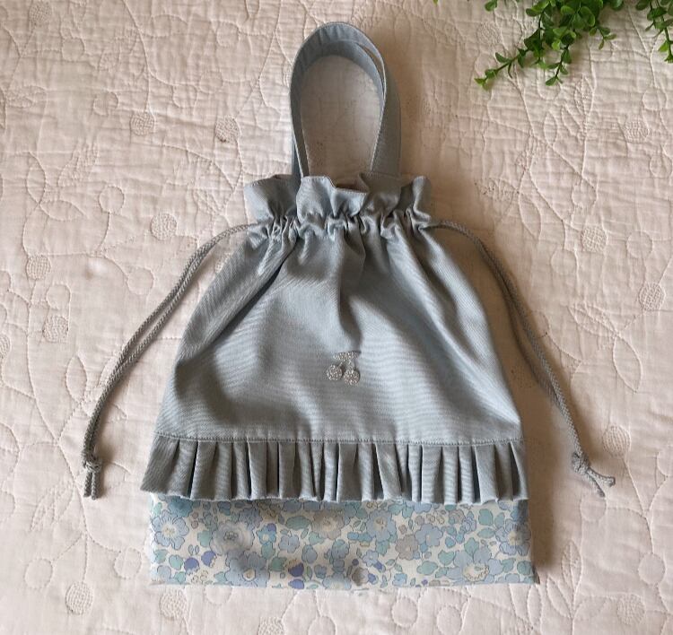 手提げ袋 上履き入れ お道具箱袋 リバティ ベッツィ サックス ハンドメイド