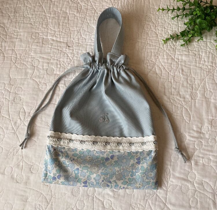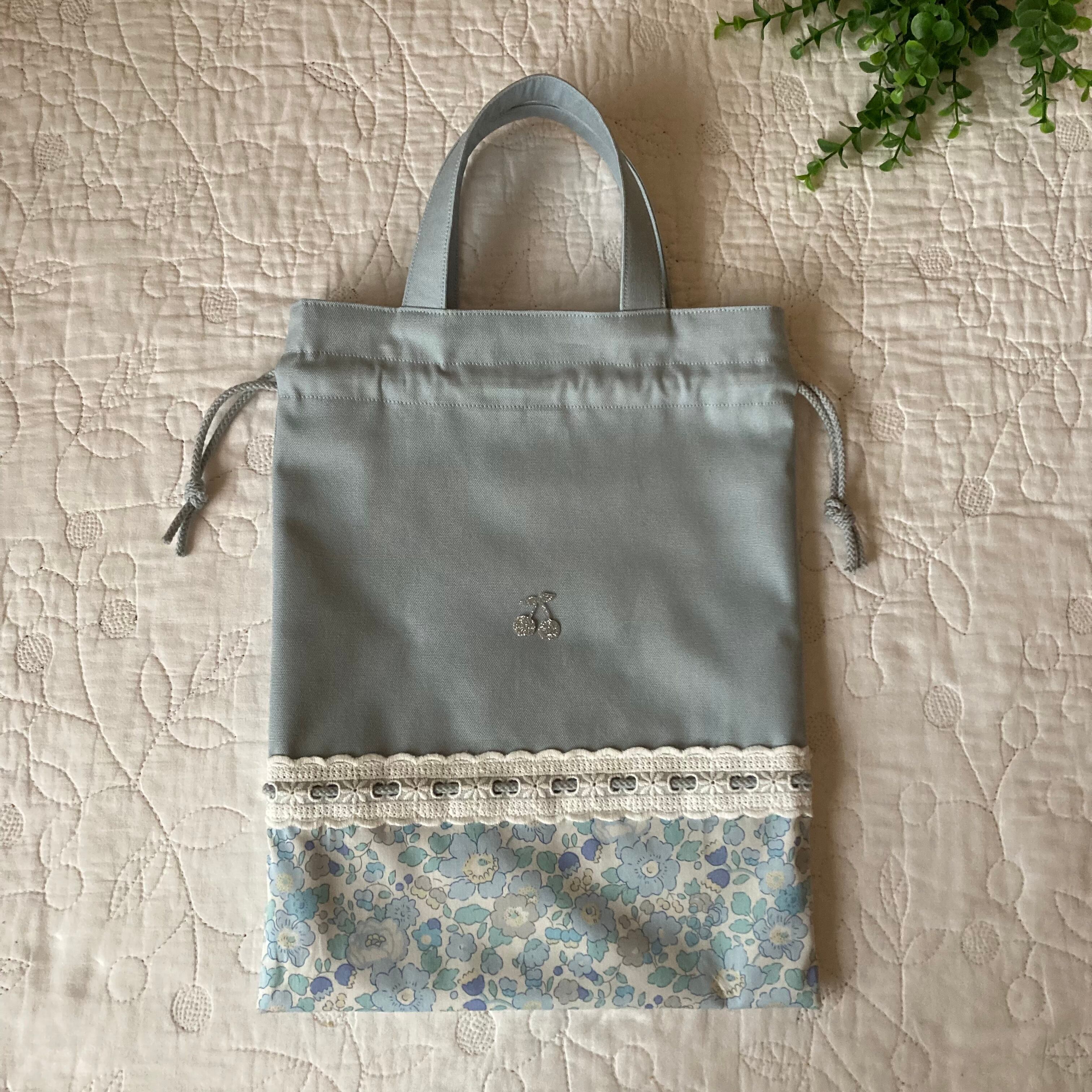手提げ袋 シューズ袋 お着替え袋 道具箱袋 リバティ ベッツィ サックス 入学入園 ハンドメイド