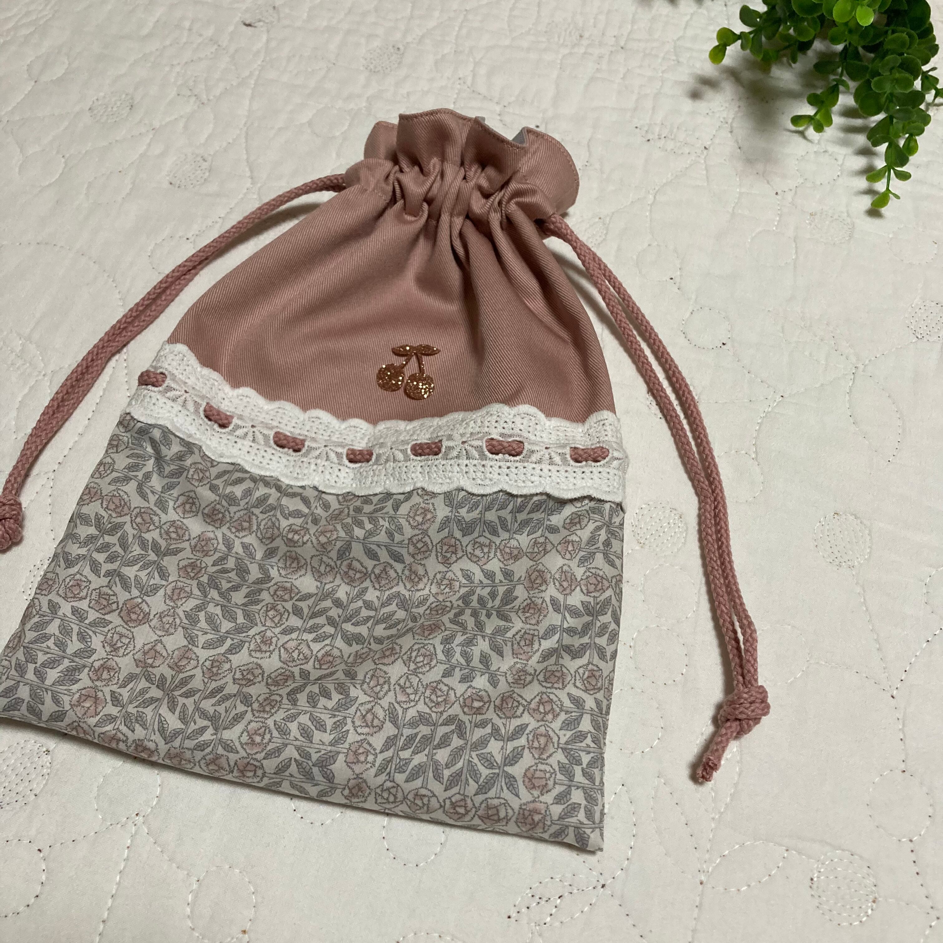 ハンドメイド巾着袋 コップ袋 給食袋 歯ブラシ袋 リバティ スリーピングローズ 入園入学