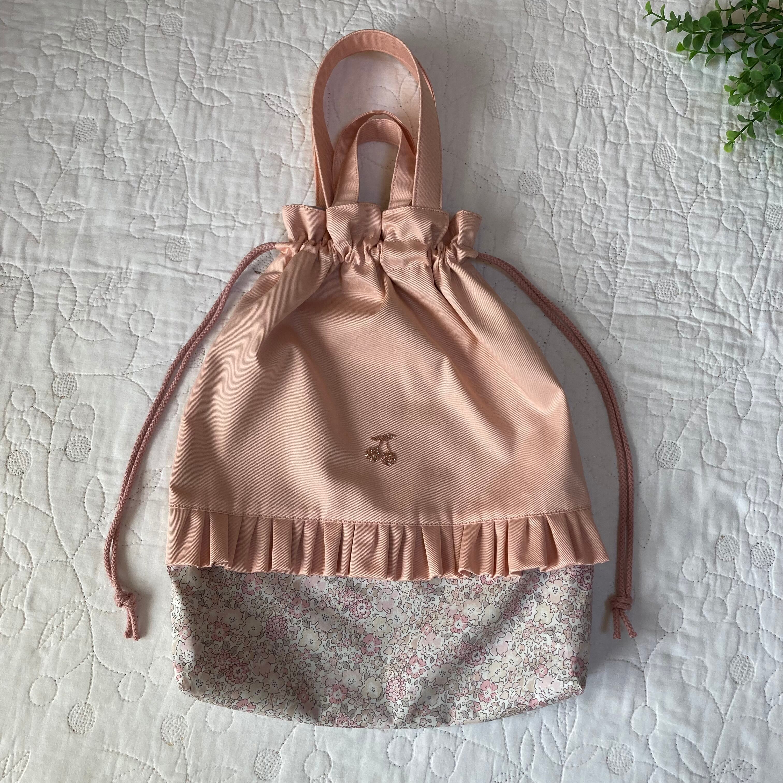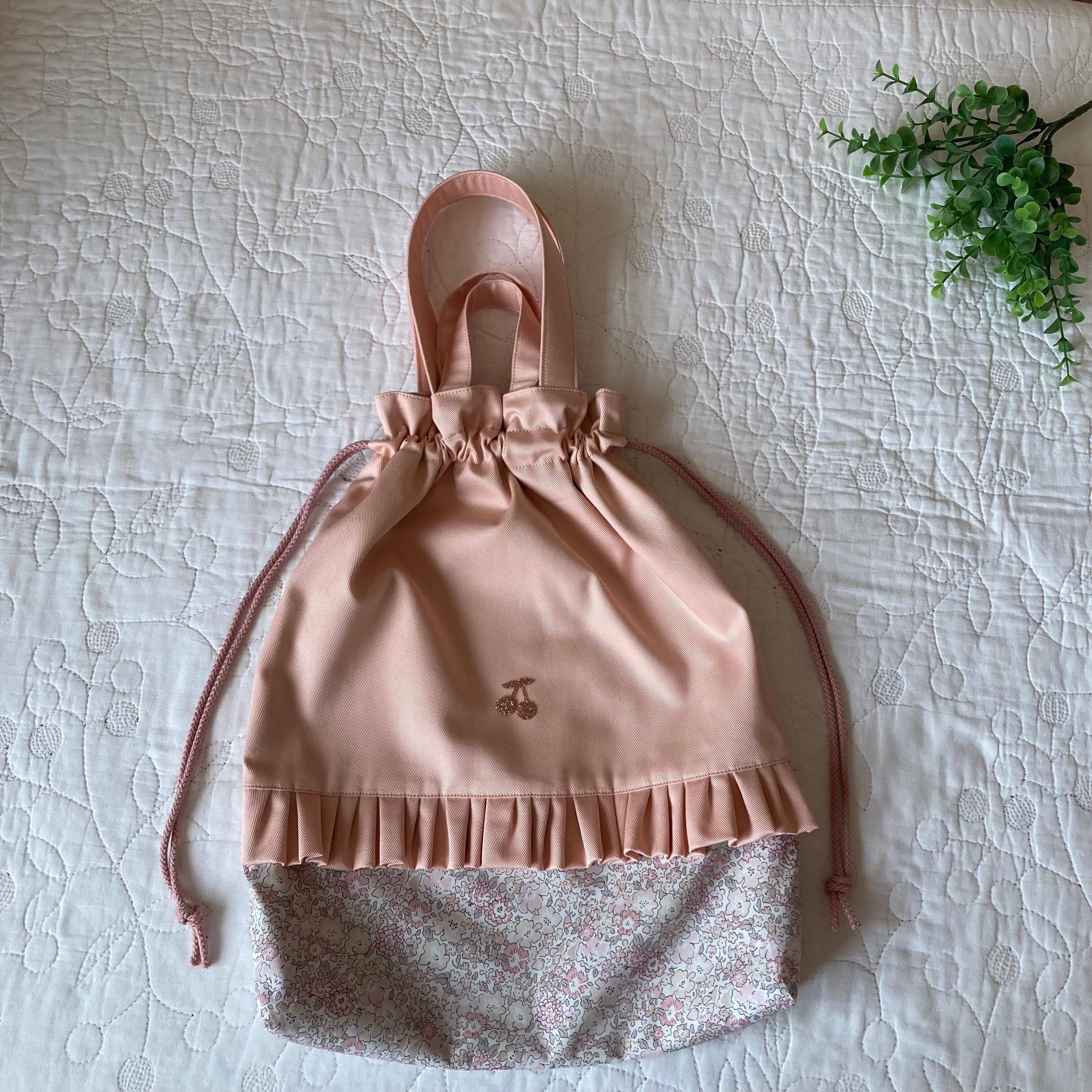 お着替え袋 体操服入れ ループ付き ミシェル ニュアンスピンク ハンドメイド 入園入学グッズ